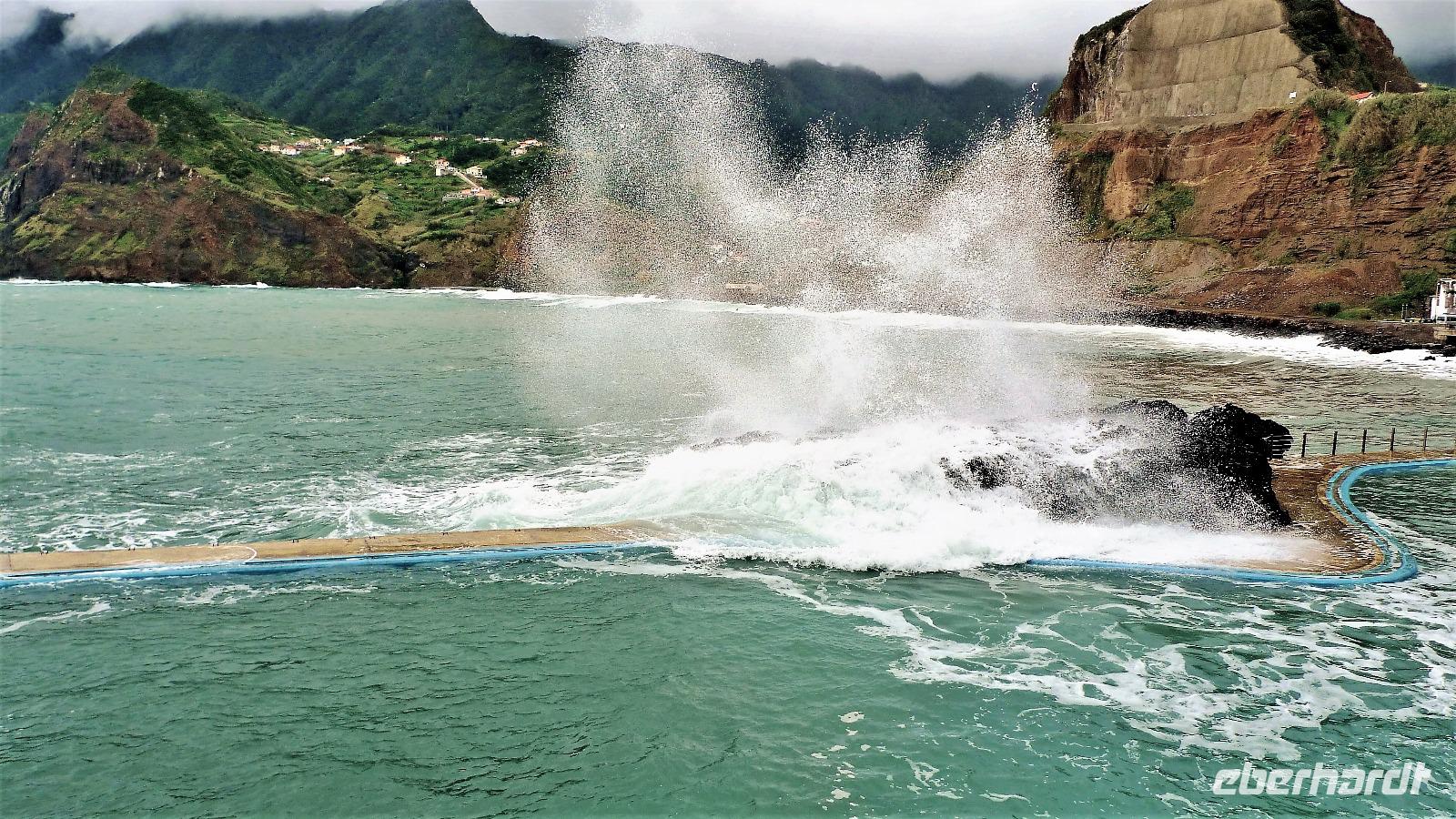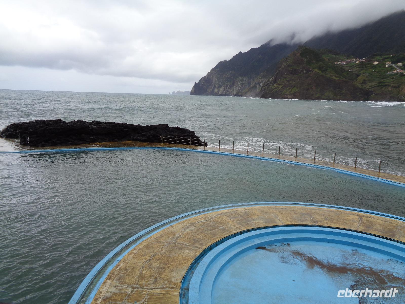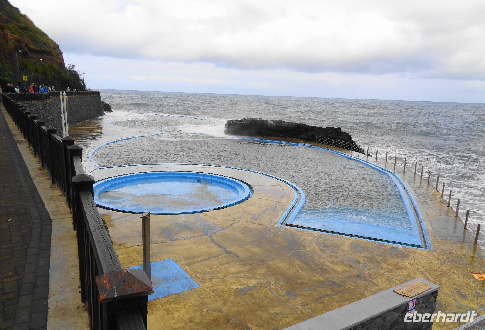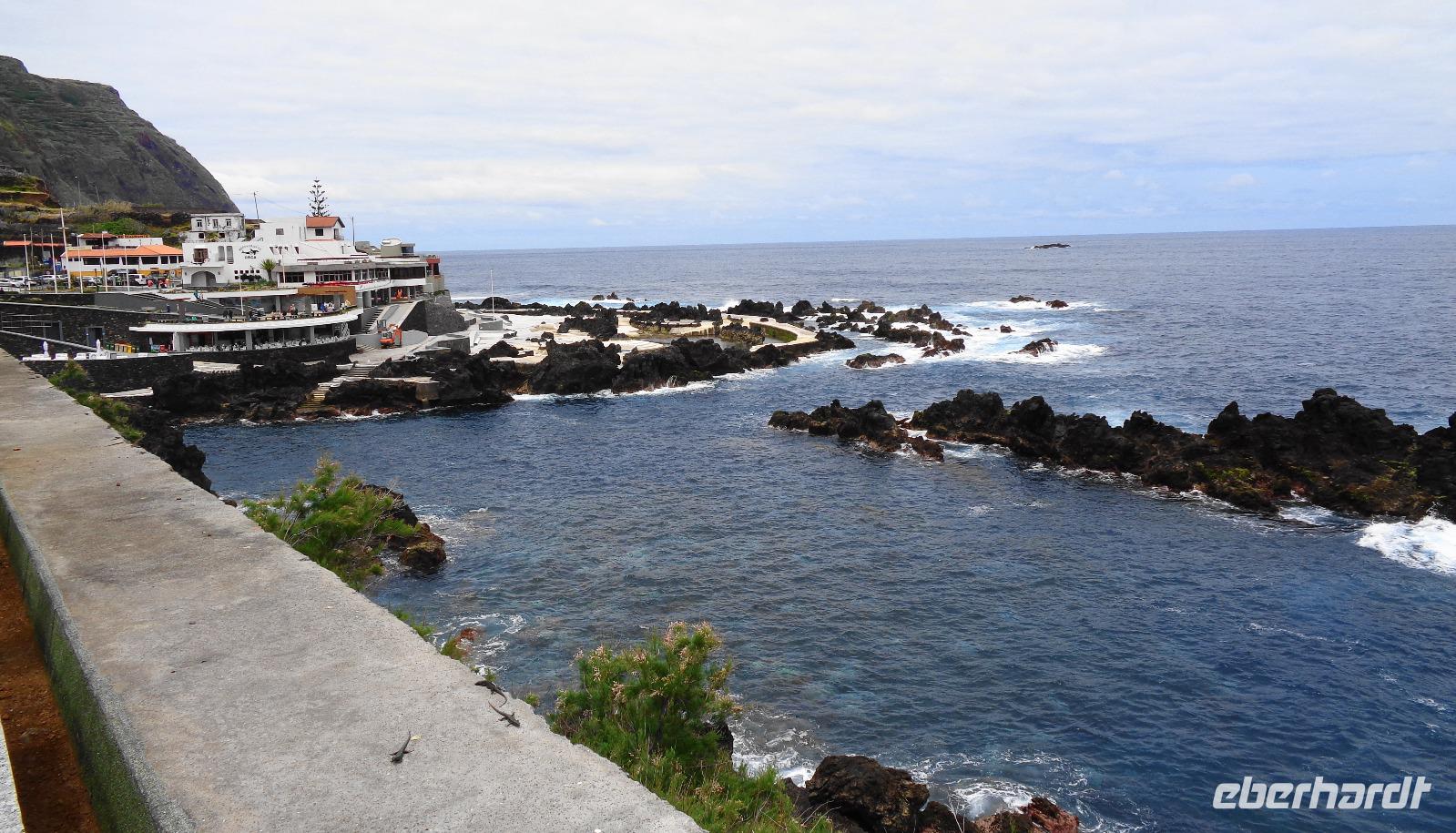 Nach Ankunft in Porto Moniz gönnten wir uns zunächst ein leckeres Mittagessen. Besonders charakteristisch für das kleine Städtchen im äußersten Nordwesten der Insel sind die natürlichen, vulkanischen Badebecken, die sich im Halbrund vor der einladenden Promenade erstrecken.