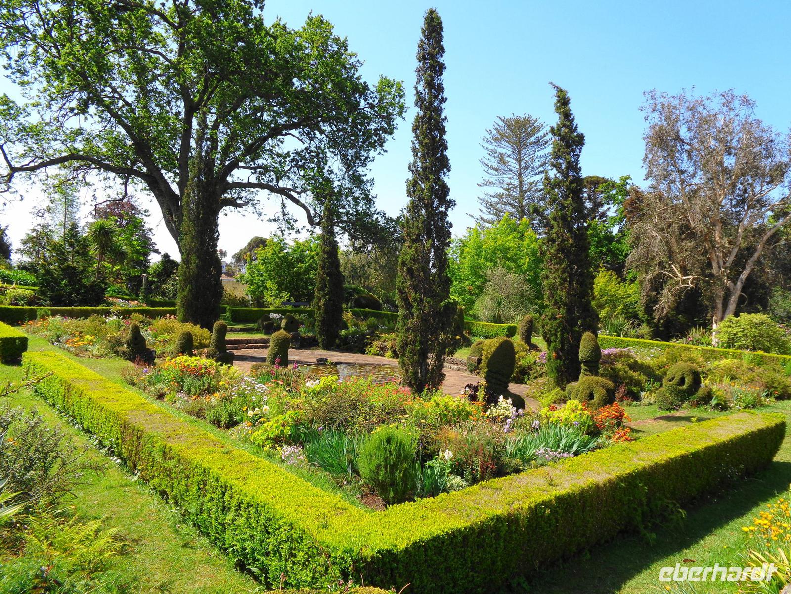 Wir lustwandelten in den im französischen und englischen Stil angelegten Bereichen, bewunderten Proteas und Kamelien, die eindrucksvolle Sukkulentensammlung und die bunte Blütenpracht im „Jardim da Senhora", dem „Garten der Dame". Die wohlverdiente Pause fand stilvoll auf der Terrasse des Teehauses statt.
