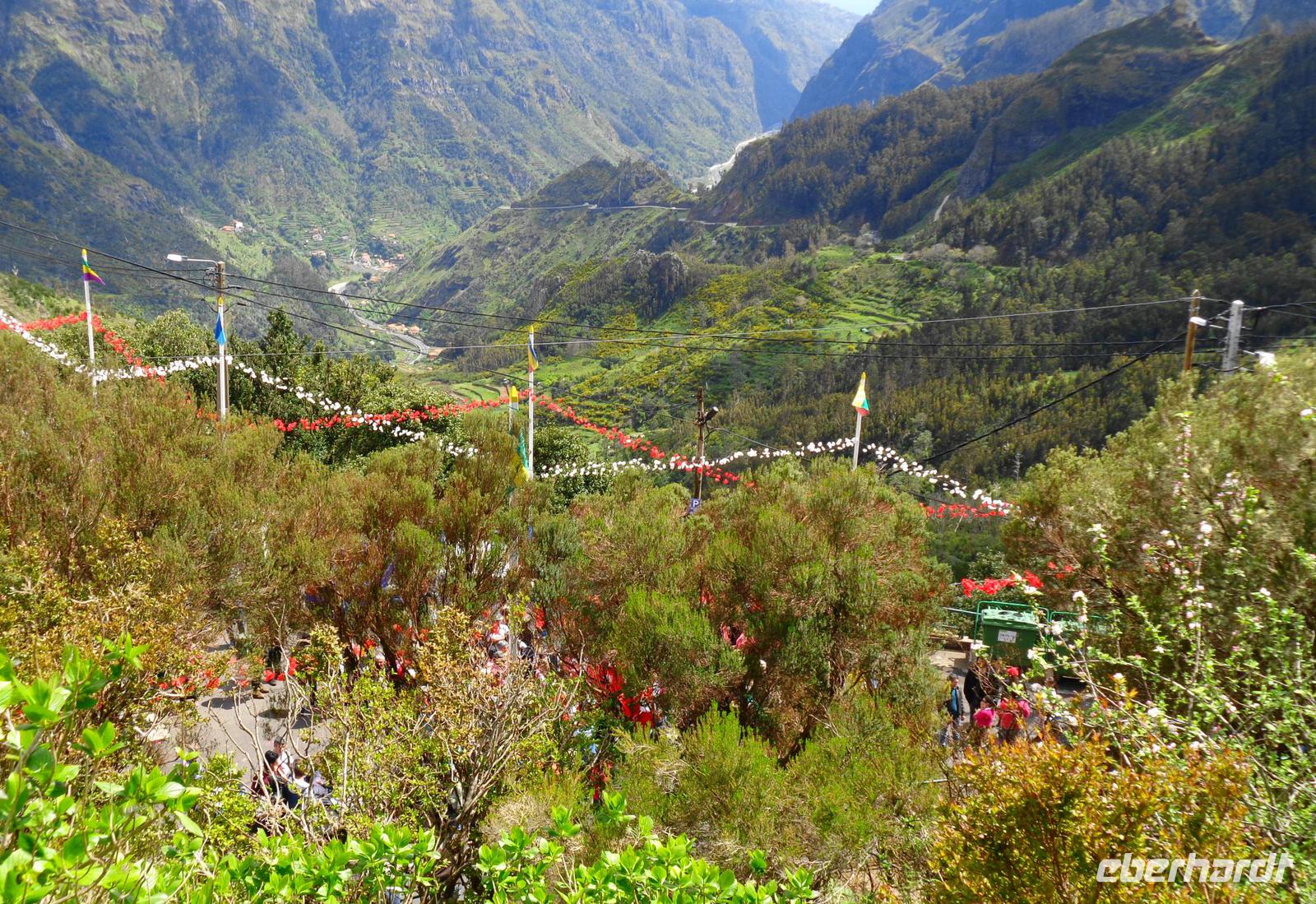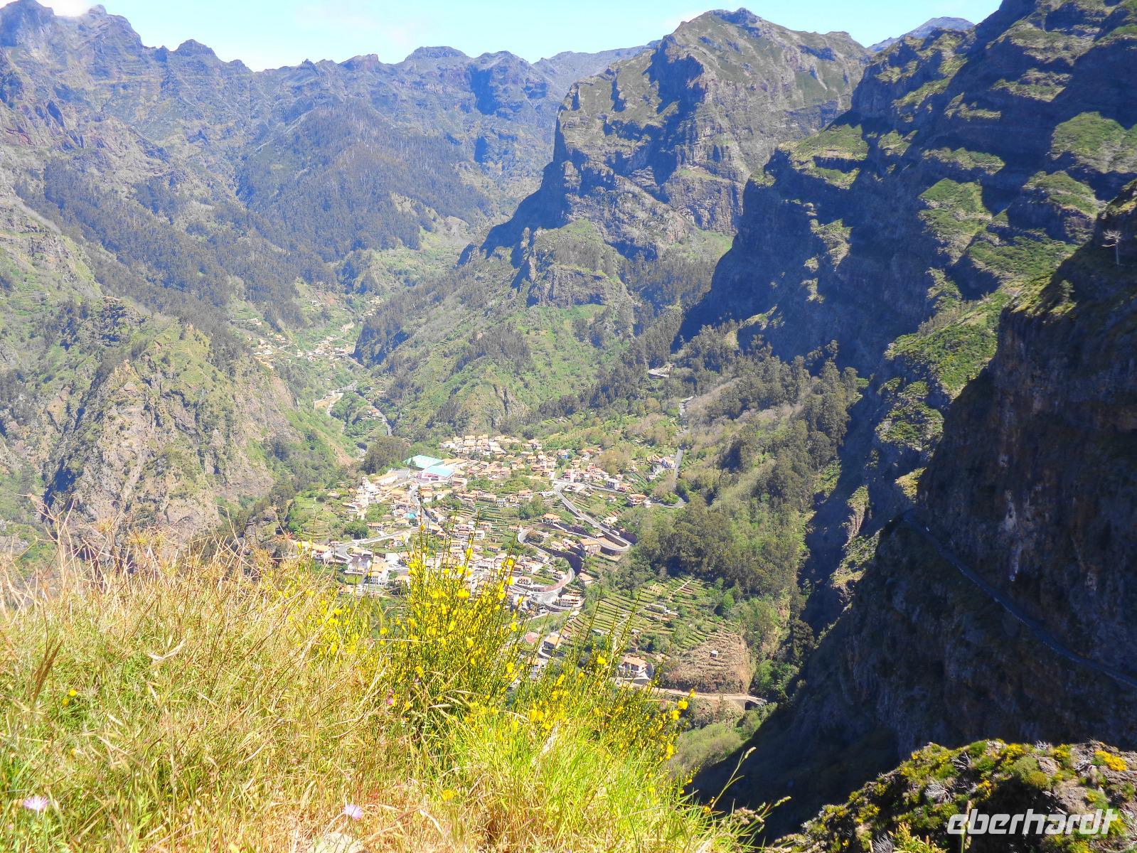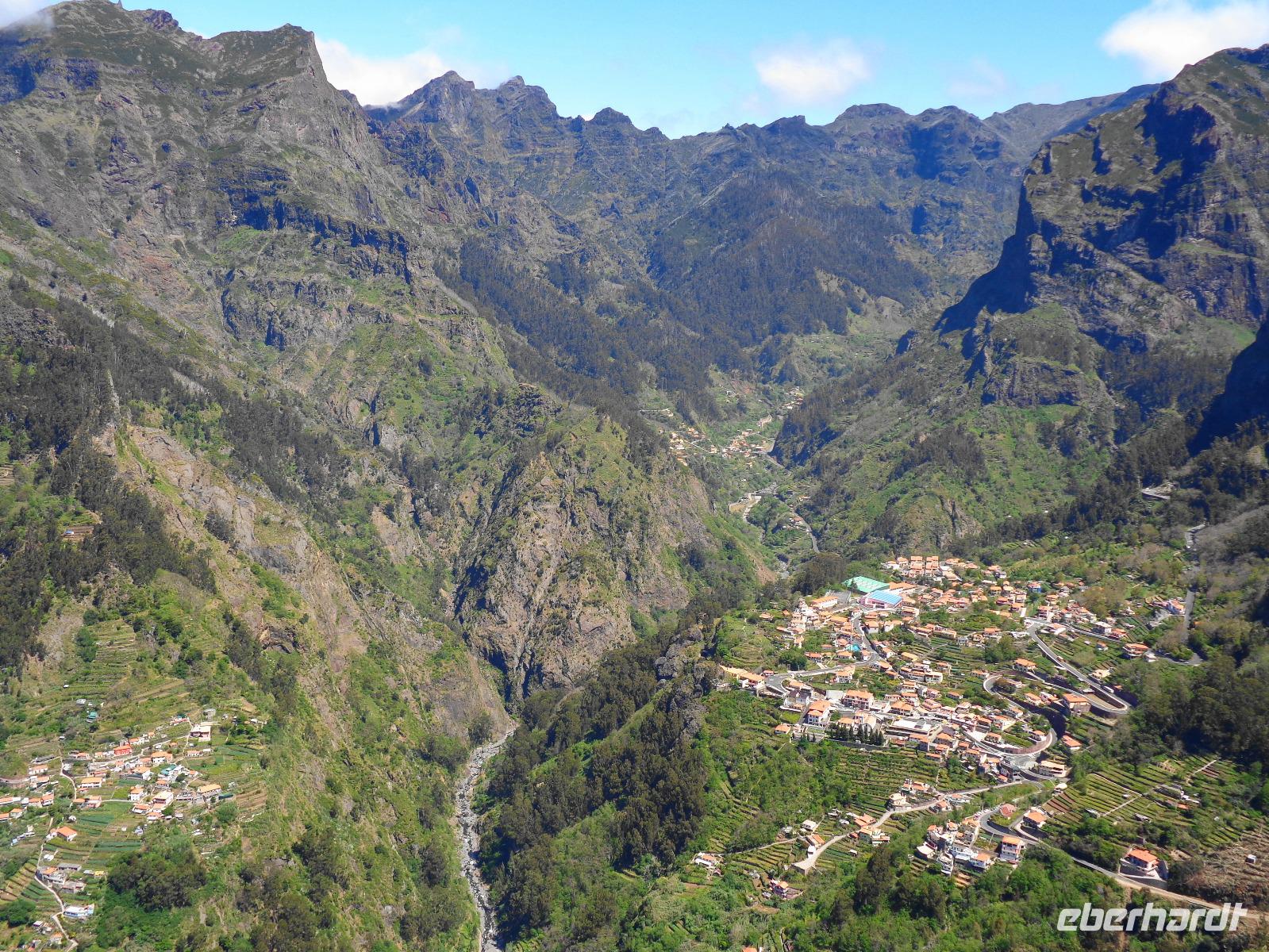 Weiter ging es zum „Curral das Freiras", dem Nonnenpferch, einem einzigartigen Landschaftserlebnis. Am Aussichtspunkt Miradouro Eira do Serrado herrschte wunderbares Wetter und so konnten wir die atemberaubende Fernsicht auf die Bergwelt Madeiras und den grünen Talkessel des „Curral" genießen. Der Name geht auf die einstigen Besitzer des Talkessels zurück, den Nonnen des Klosters Santa Clara in Funchal. Sie nutzten ihn als landwirtschaftliche Anbaufläche und Refugium gegen Piratenüberfälle und Brandschatzungen.