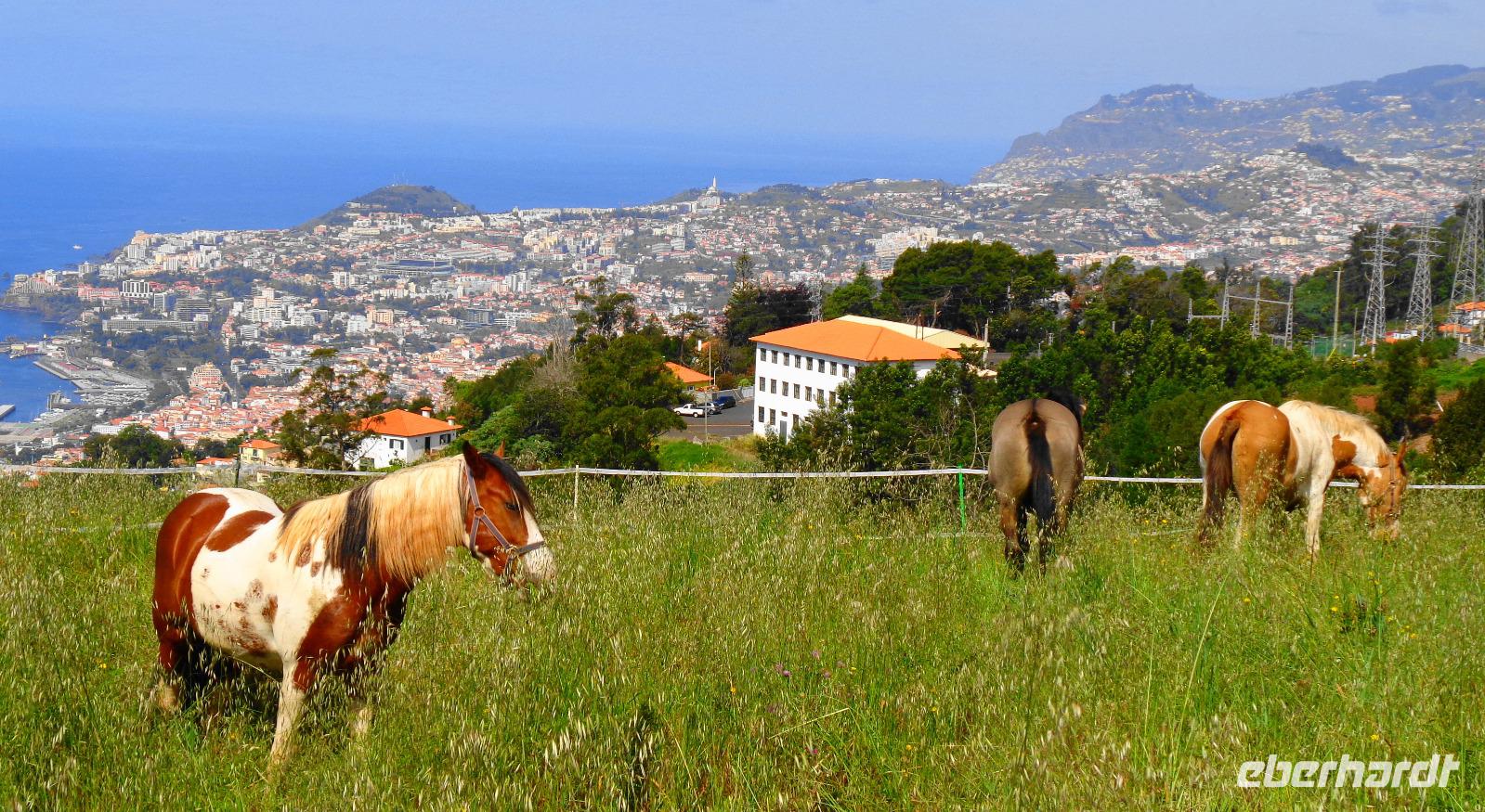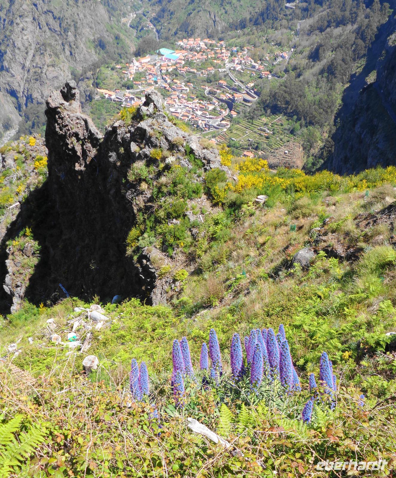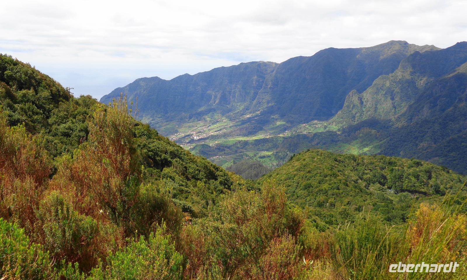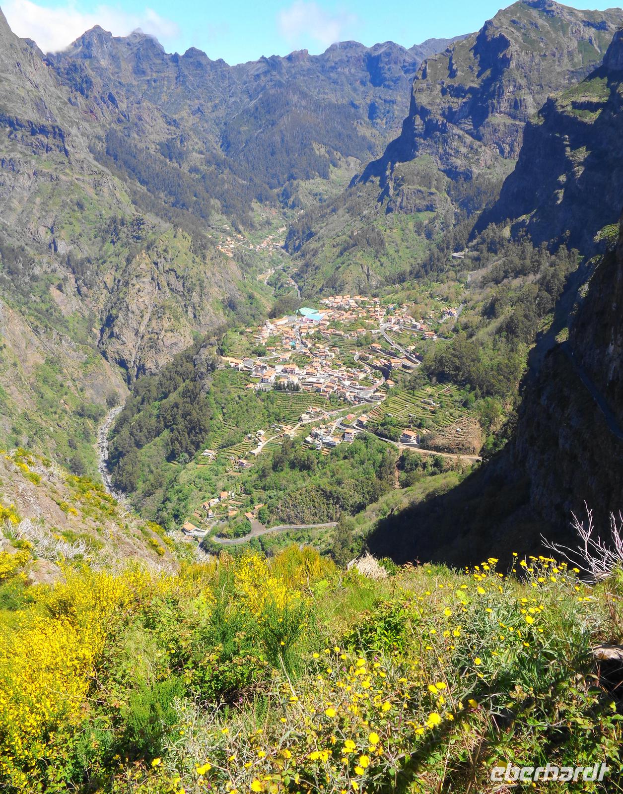 Weiter ging es zum „Curral das Freiras", dem Nonnenpferch, einem einzigartigen Landschaftserlebnis. Am Aussichtspunkt Miradouro Eira do Serrado herrschte wunderbares Wetter und so konnten wir die atemberaubende Fernsicht auf die Bergwelt Madeiras und den grünen Talkessel des „Curral" genießen. Der Name geht auf die einstigen Besitzer des Talkessels zurück, den Nonnen des Klosters Santa Clara in Funchal. Sie nutzten ihn als landwirtschaftliche Anbaufläche und Refugium gegen Piratenüberfälle und Brandschatzungen.