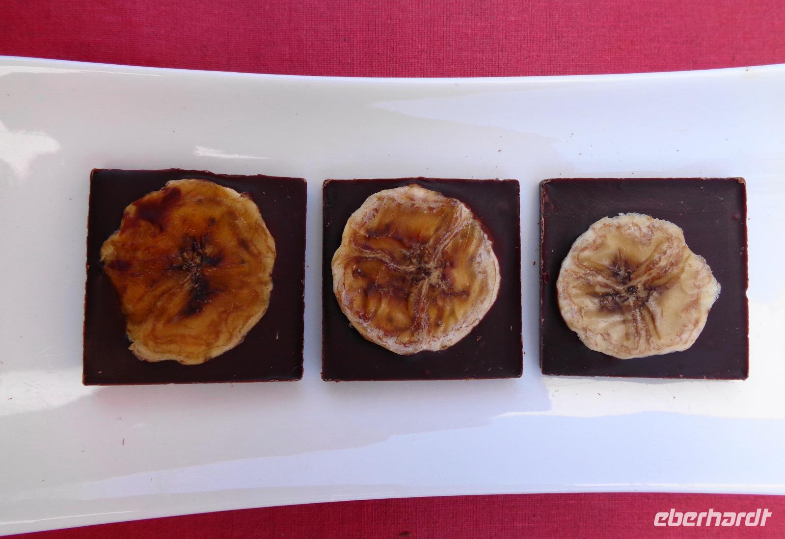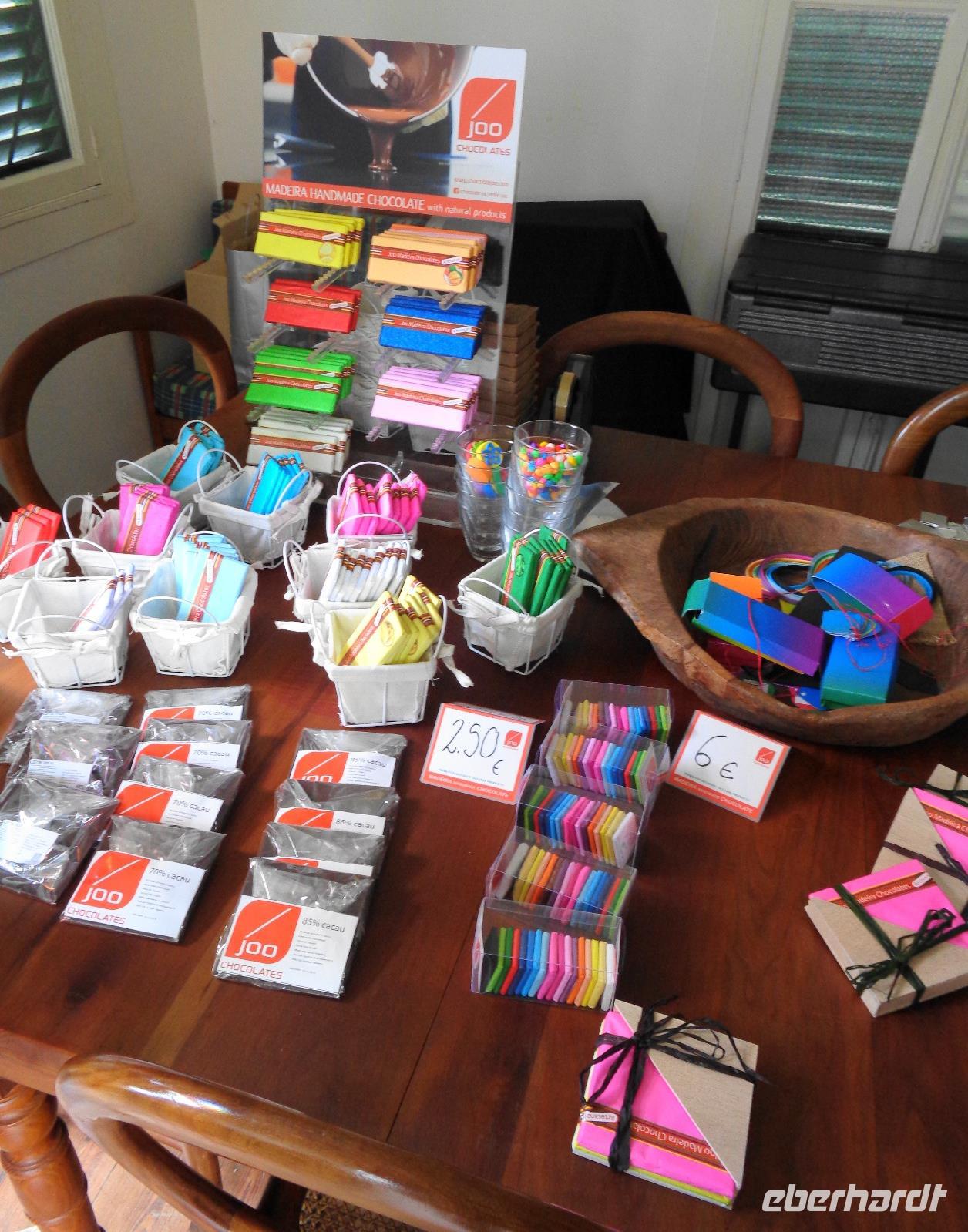 Am Nachmittag besuchten wir den kleinen Kräutergarten von Maria, wie fast immer auf Madeira, nur nach einem kurzen, aber steilen Aufstieg zu erreichen. In dem schattigen Gärtchen wurden uns verschiedene selbst hergestellte Schokoladensorten mit dazu passenden Madeira-Weinen kredenzt. Zum Abschluss gab es noch köstliche mit Schokolade überzogene frische Früchte.