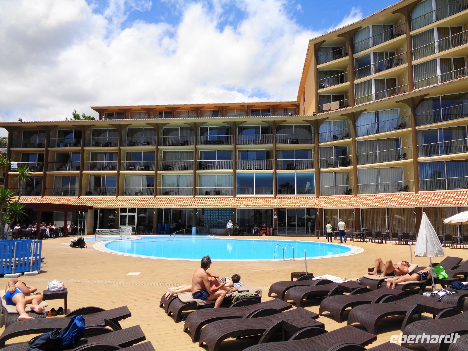 Nach unserer frühen Landung um 16.35h Ortszeit konnten alle Gäste ihr Gepäck vollständig in Empfang nehmen und schon ging es los mit unserem Bus zum 4-Sterne-Hotel Four Views Oasis in Caniço de Baixo. Das Hotel liegt direkt am Meer und in den Zimmern kann man Tag und Nacht die Brandung hören. Es verfügt auch über einen schönen Garten mit Außenpool und einer kleinen Poolbar, wo man die Tage gemütlich ausklingen lassen konnte.