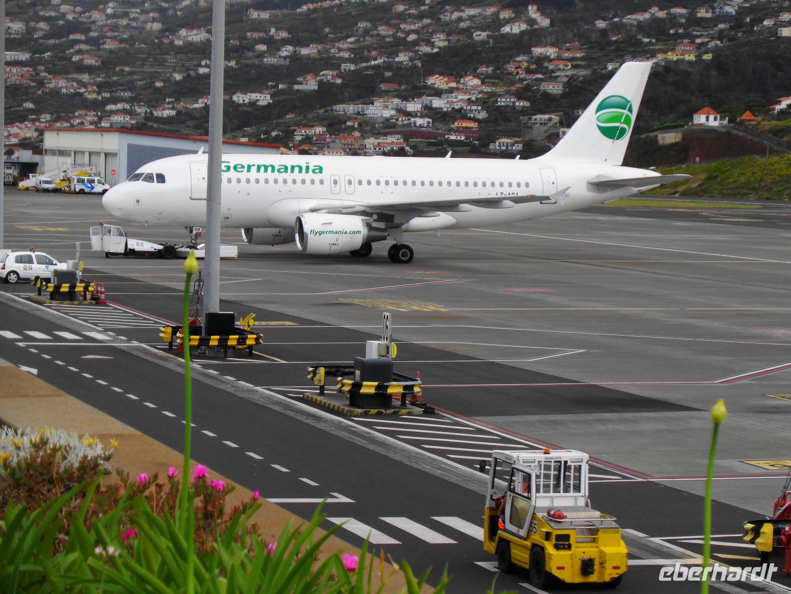Pünktlich um 12.40h hob die Boing 737 der Germania vollbesetzt ab. An Bord bekamen wir sogar ein recht gutes warmes Nudelgericht serviert. Nach ca. 5-stündigem, ruhigen Flug wurde es beim Anflug auf Madeira zwar etwas ruckelig, der Pilot brachte den Flieger aber ohne Probleme auf einer der kürzesten Landebahnen der Welt auf den Boden. Andere Maschinen an diesem Tag hatten weniger Glück und mussten nochmal durchstarten.