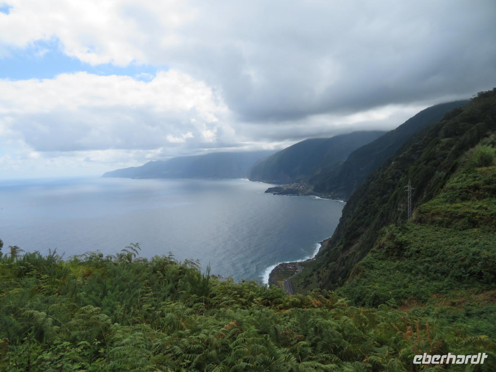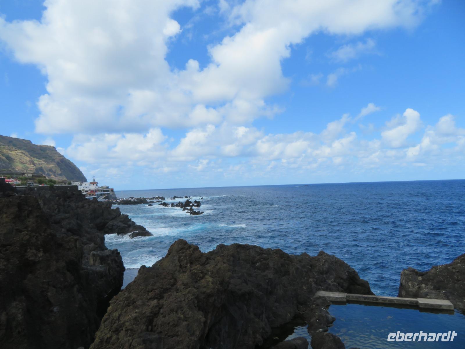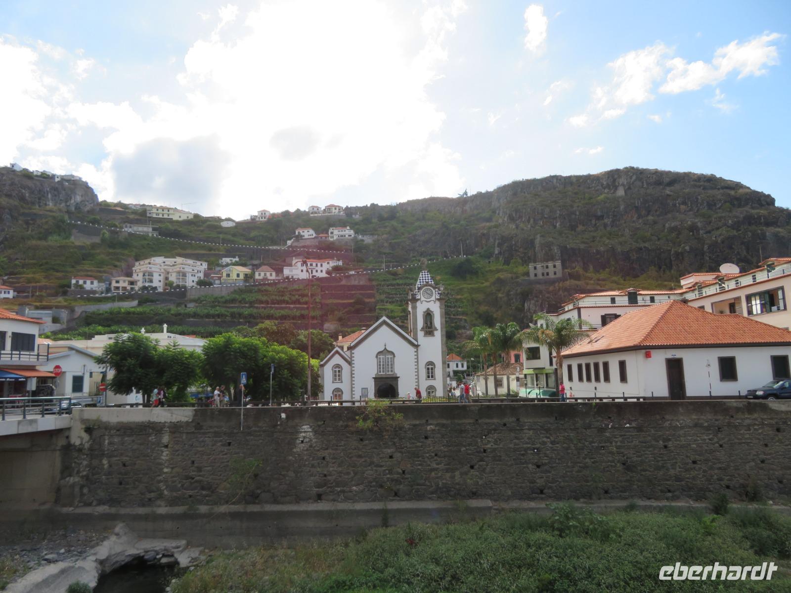 Anschließend machten wir uns auf den Weg nach Ribeira Brava, das Zentrum des Westens, wo wir einen kleinen Foto-Stopp unternahmen. Weiter fuhren wir über den Encumeada-Pass und die Hochebene Paúl da Serra nach Porto Moniz. Während der Fahrt änderte sich das Wetter wieder stark und so durchführen wir eine mystische Nebellandschaft als wir das Naturschutzgebiet auf der Hochebene passierten. Wir stiegen kurz aus, um die frische Luft einzuatmen und uns von der einmaligen Pflanzenlandschaft verzaubern zu lassen - verschiedene Lorbeerbäume, Flechten und Farne warteten auf uns. In Porto Moniz angekommen, genossen wir zunächst ein schmackhaftes Mittagessen. Viele der Gäste gönnten sich noch einmal den leckeren Degenfisch mit Banane oder eine frische Fischsuppe. Das gemütliche Fischerdorf ist insbesondere für die natürlichen Meeresschwimmbecken im Vulkangestein bekannt. Das traumhafte, sonnige Wetter ließ es zu, dass einige der Gäste in den Becken schwimmen gehen konnten. Die Gäste genossen die kleine Abkühlung und den Spaziergang entlang der Promenade. Unsere malerische Fahrt brachte uns nun zum Wasserfall "Brautschleier" für einen Fotostopp und anschließend nach Sao Vicente. Hier hatten wir genügend Zeit für einen Besuch der Kirche und einen kleinen Bummel durch den restaurierten Ortskern. Gegen 17.00 Uhr verabschiedeten wir uns von Teresa und Nuno und waren zurück am Hotel. Mit einigen Gästen besuchte ich am Abend das Restaurant Frango da Guiia in Garajau, wo wir uns leckeres Fleisch oder Fisch schmecken ließen. Die anderen Reisegäste ließen den Abend individuell ausklingen, aßen im Hotel oder spazierten noch durch den kleinen Ort Cancio.
