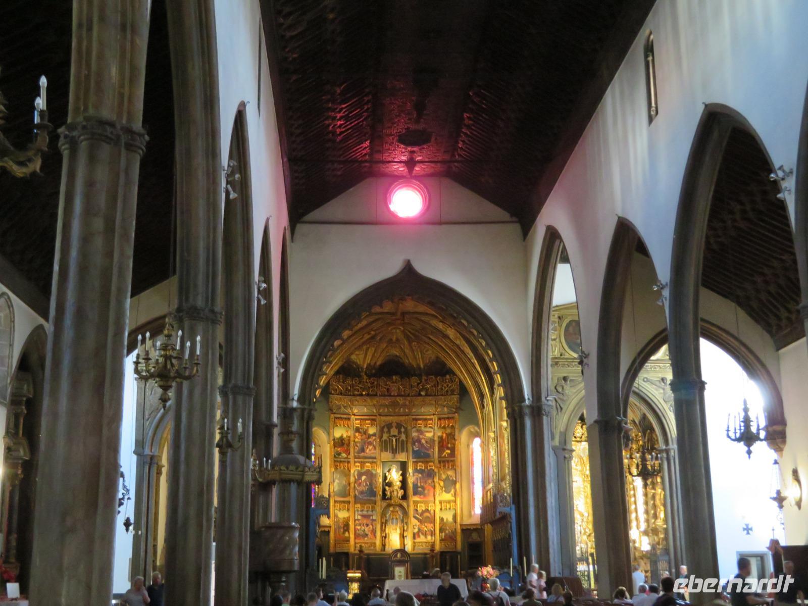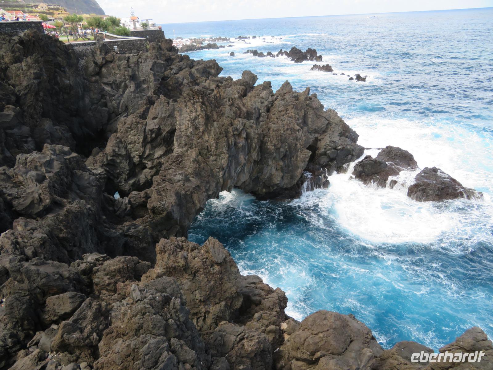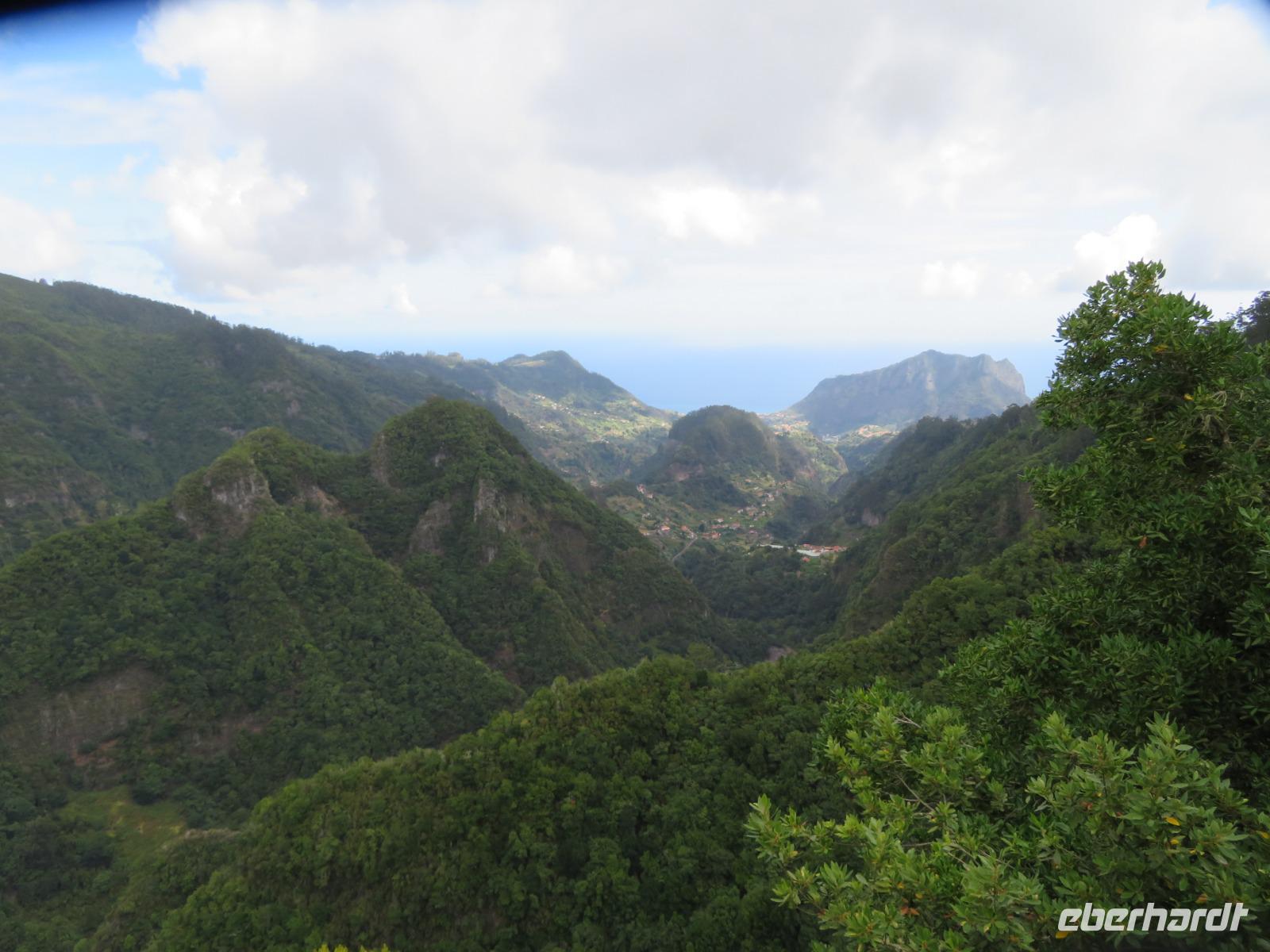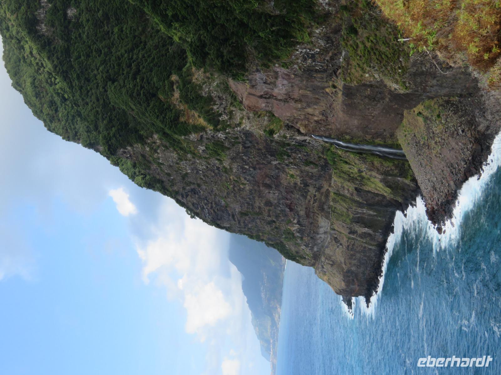 Anschließend machten wir uns auf den Weg nach Ribeira Brava, das Zentrum des Westens, wo wir einen kleinen Foto-Stopp unternahmen. Weiter fuhren wir über den Encumeada-Pass und die Hochebene Paúl da Serra nach Porto Moniz. Während der Fahrt änderte sich das Wetter wieder stark und so durchführen wir eine mystische Nebellandschaft als wir das Naturschutzgebiet auf der Hochebene passierten. Wir stiegen kurz aus, um die frische Luft einzuatmen und uns von der einmaligen Pflanzenlandschaft verzaubern zu lassen - verschiedene Lorbeerbäume, Flechten und Farne warteten auf uns. In Porto Moniz angekommen, genossen wir zunächst ein schmackhaftes Mittagessen. Viele der Gäste gönnten sich noch einmal den leckeren Degenfisch mit Banane oder eine frische Fischsuppe. Das gemütliche Fischerdorf ist insbesondere für die natürlichen Meeresschwimmbecken im Vulkangestein bekannt. Das traumhafte, sonnige Wetter ließ es zu, dass einige der Gäste in den Becken schwimmen gehen konnten. Die Gäste genossen die kleine Abkühlung und den Spaziergang entlang der Promenade. Unsere malerische Fahrt brachte uns nun zum Wasserfall "Brautschleier" für einen Fotostopp und anschließend nach Sao Vicente. Hier hatten wir genügend Zeit für einen Besuch der Kirche und einen kleinen Bummel durch den restaurierten Ortskern. Gegen 17.00 Uhr verabschiedeten wir uns von Teresa und Nuno und waren zurück am Hotel. Mit einigen Gästen besuchte ich am Abend das Restaurant Frango da Guiia in Garajau, wo wir uns leckeres Fleisch oder Fisch schmecken ließen. Die anderen Reisegäste ließen den Abend individuell ausklingen, aßen im Hotel oder spazierten noch durch den kleinen Ort Cancio.