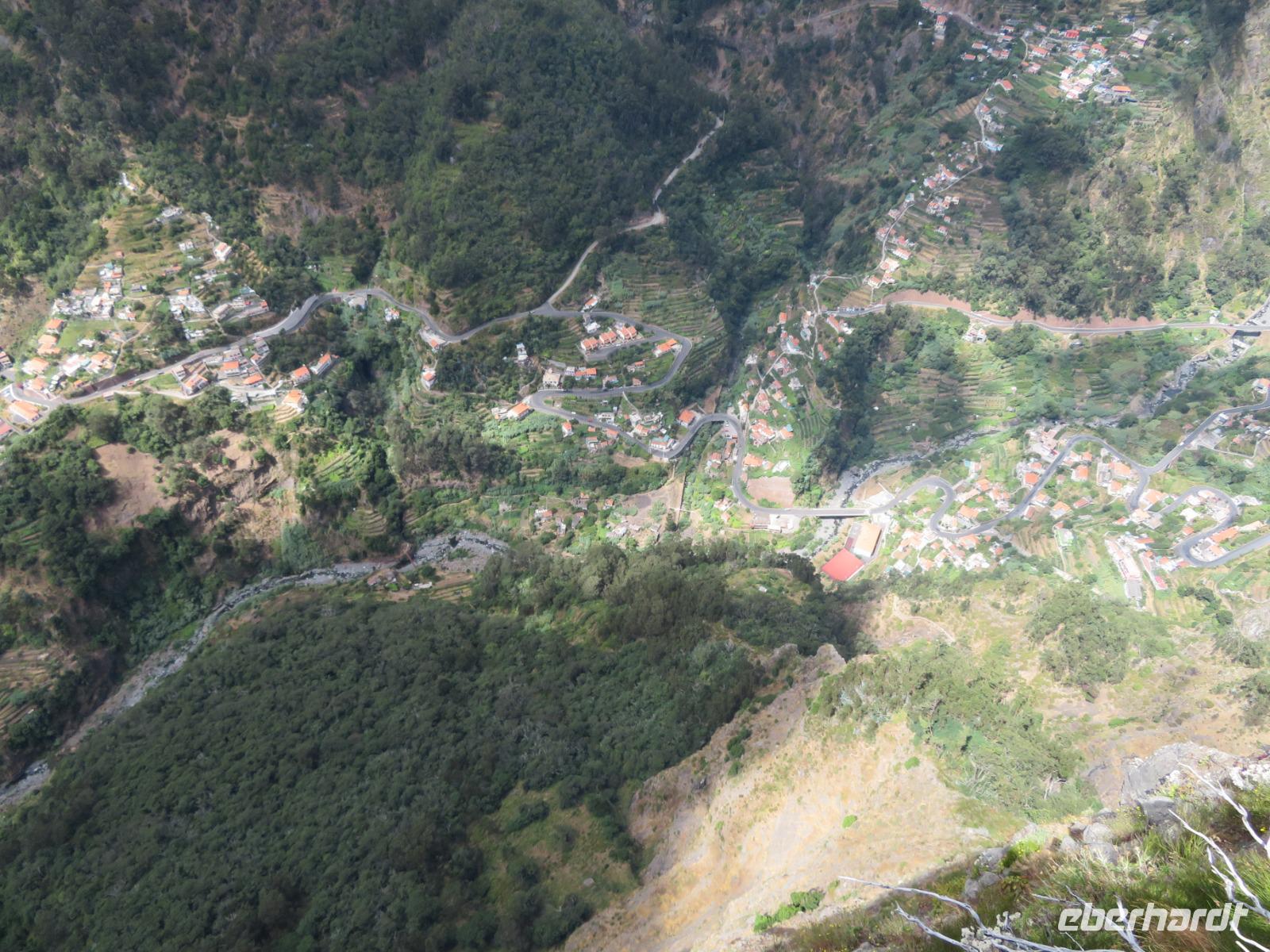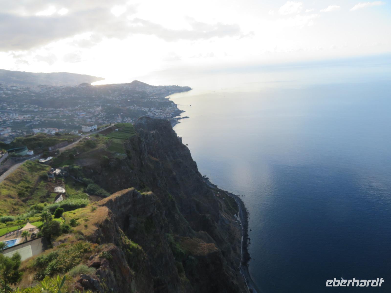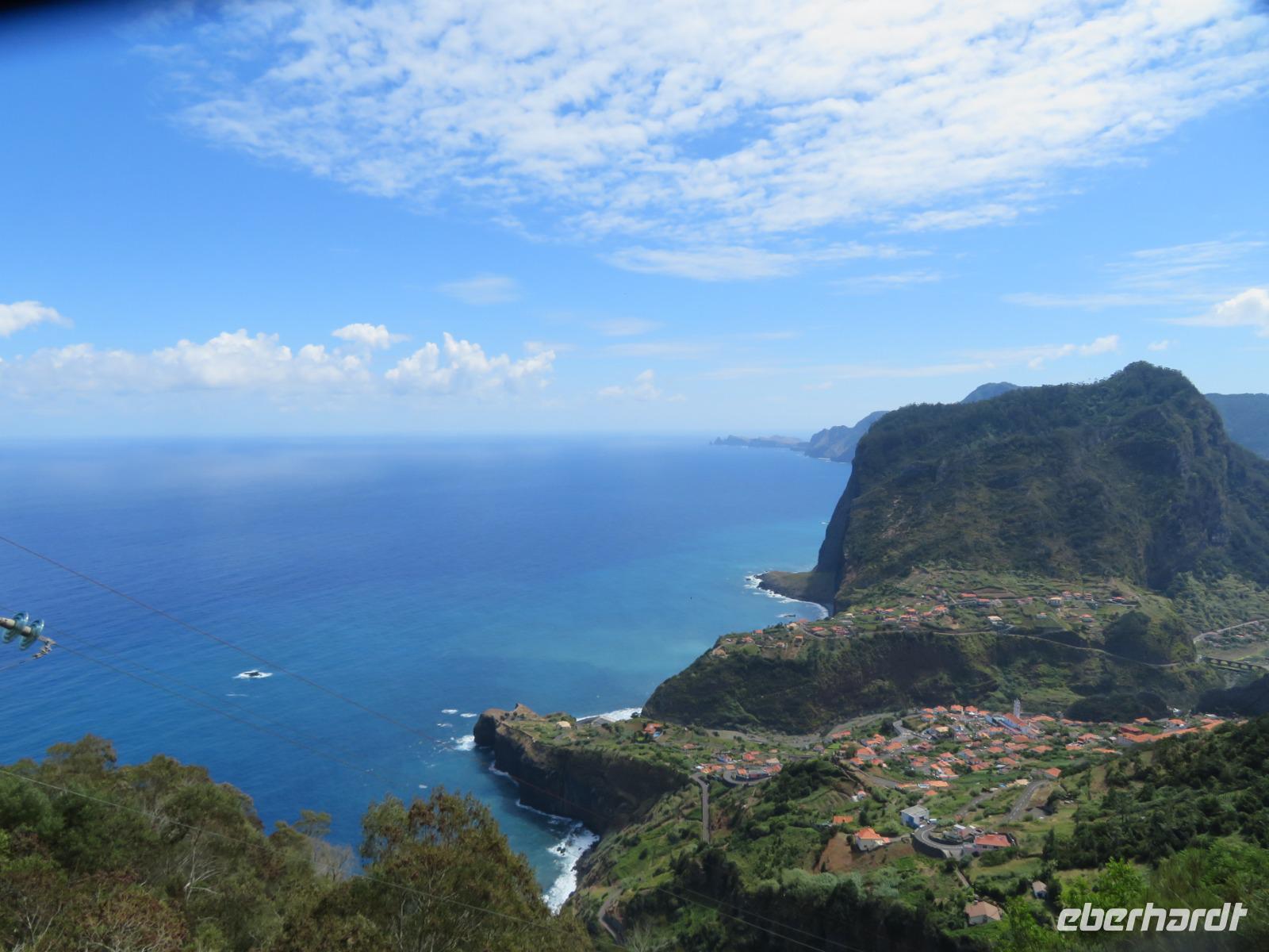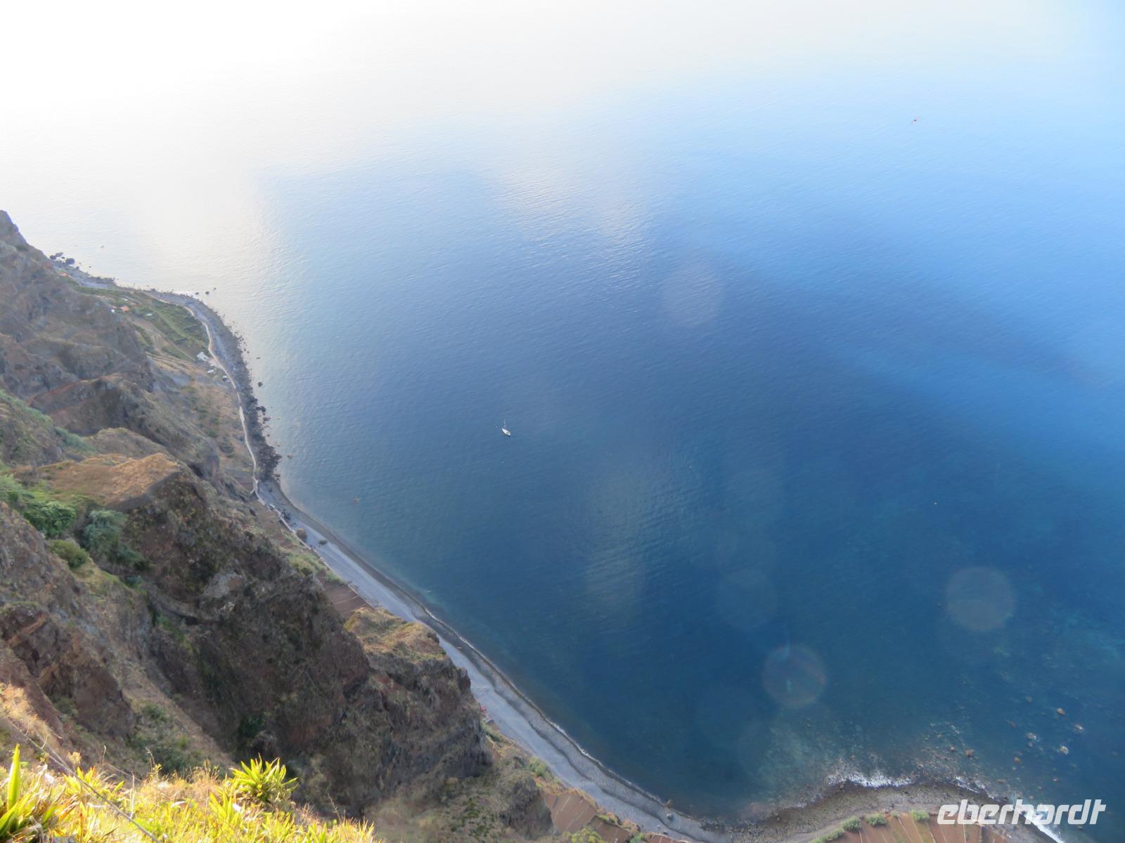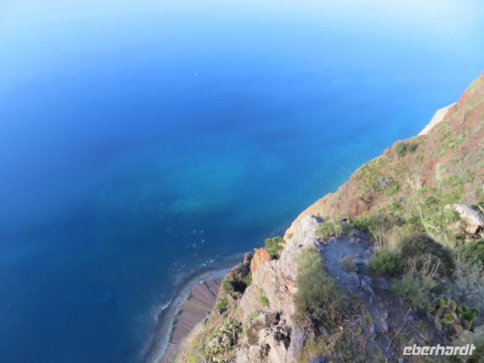 Nach einem weiteren ausgebiegen Frühstück fuhren wir mit unserer Reiseleiterin Teresa und Busfahrer Nuno in den Nordwesten der Insel. Unser erstes Ziel des heutigen Tages war die spektakuläre Aussichtsplattform mit Glasboden in einer Höhe von 560 Metern! Es handelt sich um eine der höchsten Steilklippen Europas - Cabo Girao - und wir genossen bei strahlendem Sonnenschein den Ausblick auf das offene Meer und die untenliegende Klippe.