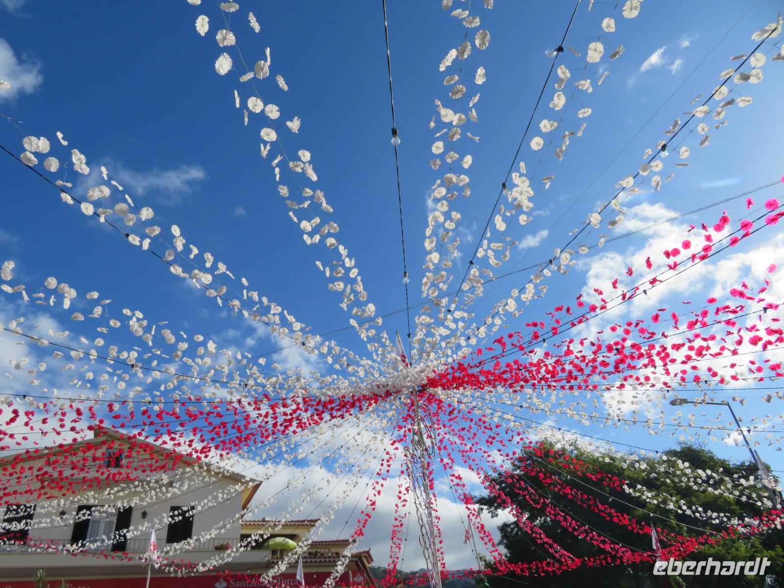 Nach einem gemütlichen Morgen fuhren wir um 09.30 Uhr nach Estreito de Camara de Lobos, um das traditionelle Weinfest zu besuchen. Bereits bei unserer Ankunft erwartete uns ein buntes Treiben, viele Besucher und verschiedene Verkaufsstände. Wir versuchten bei der Weinlese einige süße Trauben zu ergattern und lauschten den traditionellen Musikern. Anschließend warteten wir auf die Parade, welche um 11.00 Uhr stattfinden sollte. Wir setzten uns auf die große Treppe vor der Kathedrale und genossen den Sonnenschein, bis der traditionelle Umzug mit ca. 30 Minuten Verspätung startete. Es war eine ausgelassene Stimmung mit festlicher Kleidung, geschmückten Wagen und fröhlicher Musik. Nachdem wir einige Eindrücke des Weinfestes sammeln konnten, fuhren wir für unser gemeinsames Mittagessen weiter zum Nonnental. Das Restaurant, in dem wir verschiedene Suppen oder Salate serviert bekamen, bot uns einen traumhaften Blick auf das Nonnental. Gestärkt machten wir uns auf den Weg zum Aussichtspunkt Miradouro Eira do Serrado. Glücklicherweise herrschte herrliches Wetter und wir konnten die spektakuläre Sicht auf das grünen Tal und die Berge genießen. Der Name des Tals geht auf die einstigen Bewohner zurück, den Nonnen des Klosters Santa Clara in Funchal. Im Anschluss fuhren wir nach Monte und besuchten zunächst die imposante Wallfahrtskirche Nossa Senhora do Monte. Nachdem wir die hübsche Barockkirche besuchten, machten wir uns auf den Weg zu den berühmten Korbschlitten. Viele der Gäste wagten eine Fahrt und ließen sich mit diesen legendären Korbschlitten ca. zwei Kilometer zu Tale gleiten. Was heute eine beliebte Touristenattraktion ist, war früher das einzige Transportmittel für die Bewohner. Es war ein tolles Erlebnis und eine spannende Fahrt gemeinsam mit den Carreiros, die zu zweit den Schlitten führen und mit ihren speziellen Schuhen bremsen bzw. steuern. Am Ende der Strecke holten uns Teresa und Nuno mit den restlichen Gästen ab und wir fuhren gemeinsam zum Kräutergarten. Leider war Maria, die Betreiberin des Kräutergartens nicht anzutreffen und so beschlossen wir kurzfristig bereits heute den Botantischen Garten zu besuchen. Wir spazierten bei traumhaften Wetter durch den 35.000 Quadratmeter großen Garten und bestaunten die mehr als 2.000 exotischen Pflanzenarten. Teresa führte uns durch die Anlage und wir waren beeindruckt, dass sie uns jede einzelne Pflanze benennen konnte. Im Garten genossen wir noch ein Glas Wein oder eine Tasse Kaffee und fuhren anschließend zurück nac Canico.