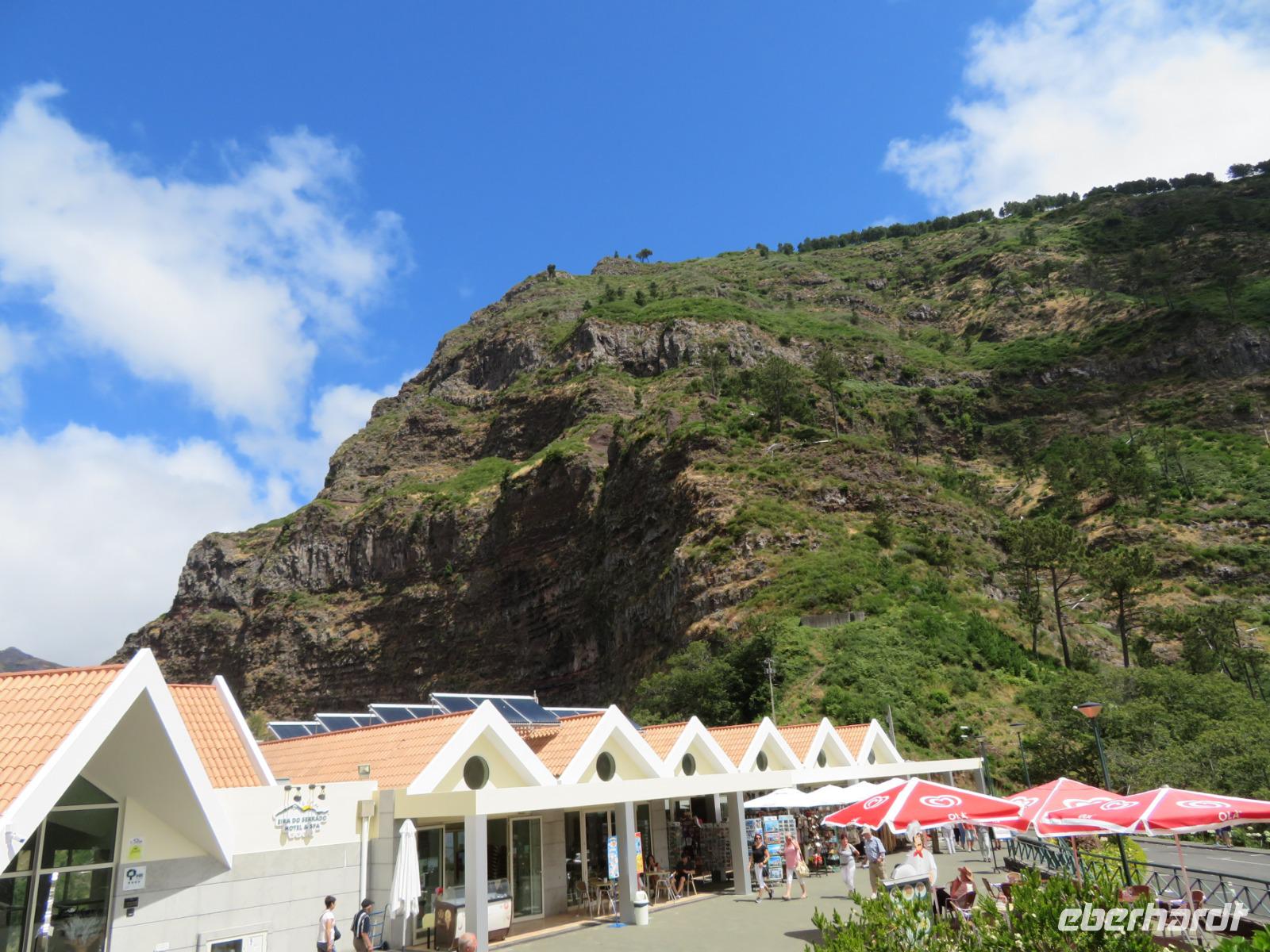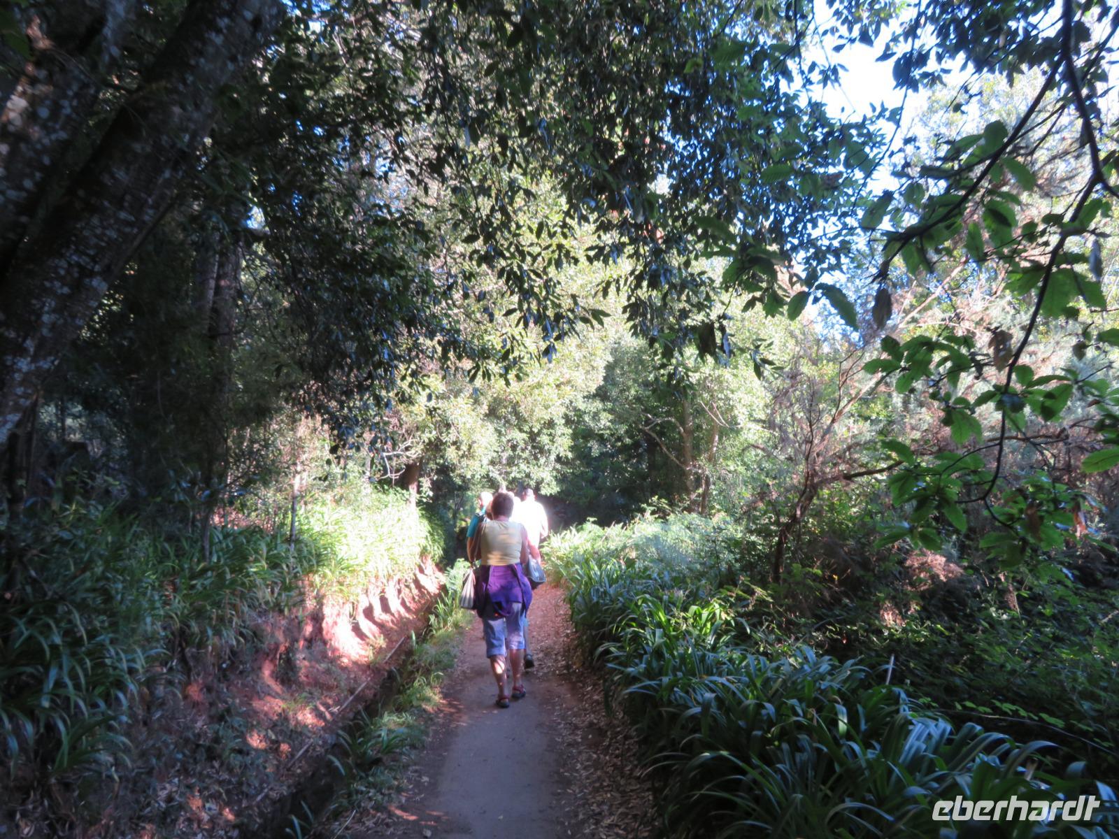 Nach ca. fünf Kilometern machten wir eine kleine Rest in einem Café. Unser Busfahrer Nuno erwartete uns dort, falls jemand die restliche Wanderung nicht fortführen wollte. Doch alle Gäste wollten die Wanderung zu Ende führen und die Natur noch ein bisschen genießen. Einige ließen ihre Rucksäcke und Jacken im Bus und so machten wir uns mit leichtem Gepäck wieder auf den Weg. Wir spazierten zwei weitere Kilometer entlang der Levada, machten einige Fotostopps und erfuhren noch mehr über die örtliche Pflanzenwelt.