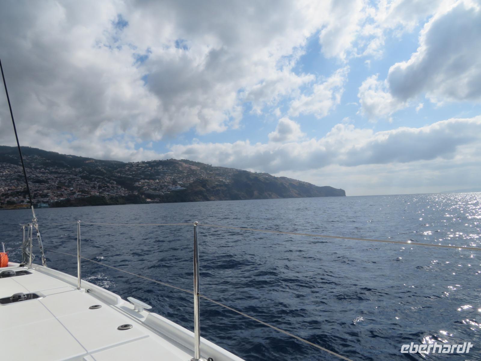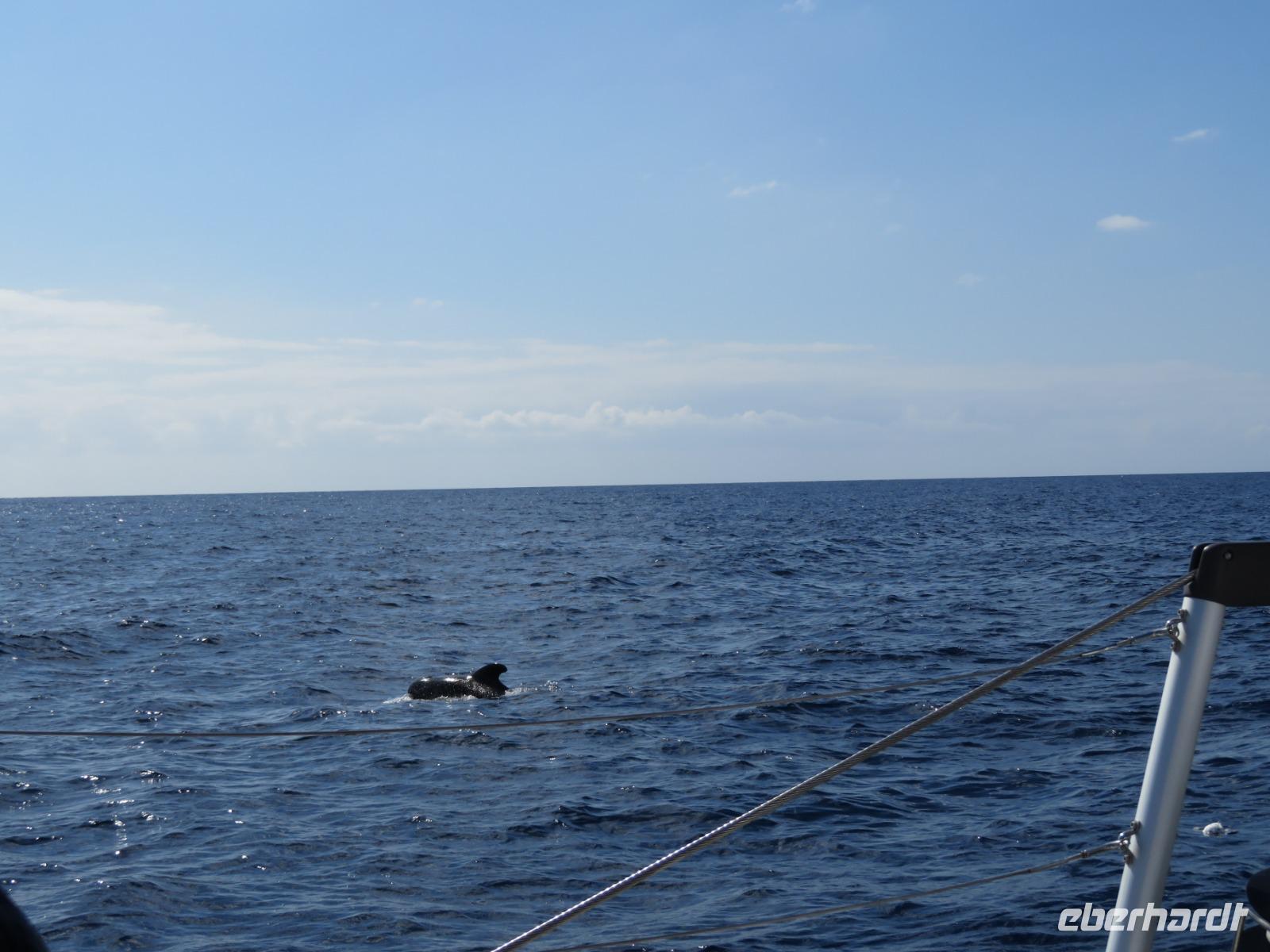 Der heutigen Tag stand den Gästen zur freien Verfügung und so konnte jeder den Tag ganz individuell gestalten. Teresa schlug jedoch die Fahrt mit einem Katamaran vor und so entschlossen sich 15 der Gäste zu einer 3-stündigen Bootsfahrt. Wir trafen uns am Morgen an der Bushaltestelle, welche sich direkt neben dem Hotel befindet und fuhren mit einem Linienbus nach Funchal. Nach einer aufregenden Fahrt mit dem örtlichen Bus, stiegen wir an der Endstation - direkt an der Seilbahn - aus. Wir spazierten noch gemütlich durch die Altstadt, bevor wir gegen 11.00 Uhr auf unseren Katamaran stiegen und auf das offene Meer fuhren. Der Kapitän erklärte uns, dass wir versuchen werden Wale und Delphine zu sehen, dies jedoch staatlich genau geregelt ist, um die Tiere und ihre natürliche Umgebung zu schützen. So dürfen sich immer nur zwei Boote gleichzeitig bei den Tieren befinden und nicht länger als zehn Minuten dort verweilen. Wir waren gespannt, ob wir einige Meereslebewesen sehen werden und so machten wir es uns auf dem Boot gemütlich. Schon nach kurze Zeit erblickten wir die ersten Tiere - es handelte sich um sogenannte Grindwale. Immer wieder kamen mehrere Wale zum Vorschein und wir konnten die Tiere nur wenige Meter von unserem Boot entfernt beobachten. Wir fuhren noch ein wenig weiter und schon konnten wir eine Gruppe Delphine bestaunen. Der Große Tümmler - bekannt aus der Serie Flipper - wird bis zu vier Meter land und wiegt bis zu 650 Kilogramm. Wir fuhren weiter an die Steilküste für eine kleine Badepause und so sprangen einige der Gäste in das kühle Nass. Der Atlantik hatte ca. 23 °C und die Gäste genossen die Erfrischung im kristallklaren Wasser. Entlang der Küste ging es zurück nach Funchal, wo wir gegen 14.00 Uhr wieder ankamen. Es war eine tolle Fahrt und alle waren froh daran teilgenommen zu haben! Die Gäste entschieden, ob sie noch individuell durch Funchal bummeln wollten oder gemeinsam mit dem Bus zurück zum Hotel fuhren. Den restlichen Tag verbrachten die meisten Gäste ganz in Ruhe am Pool unserer Hotelanlage.