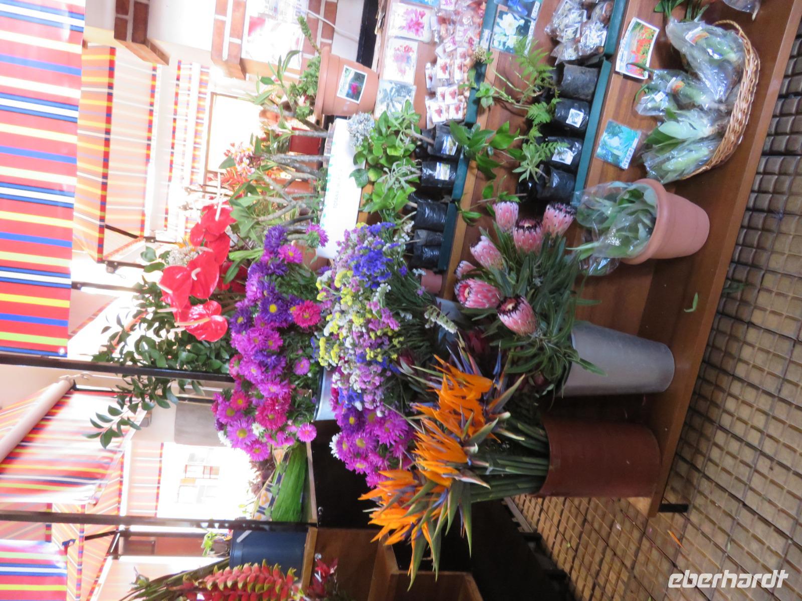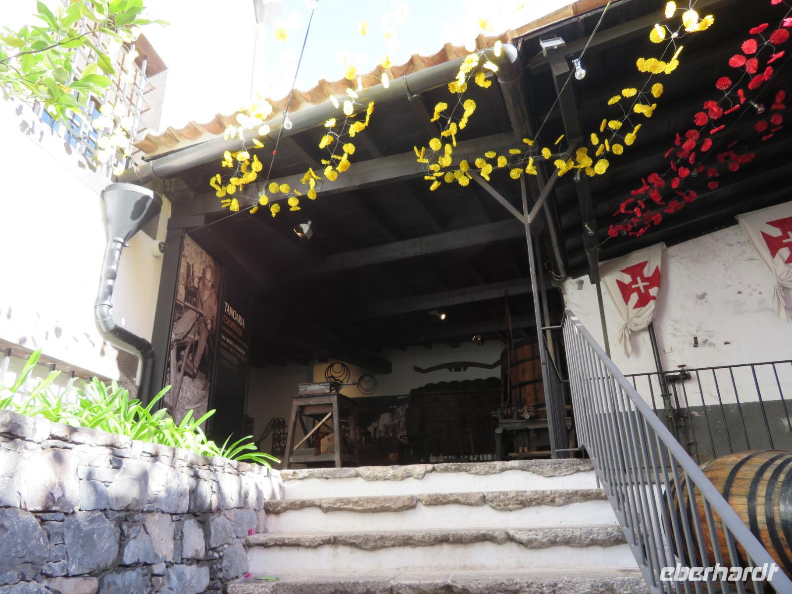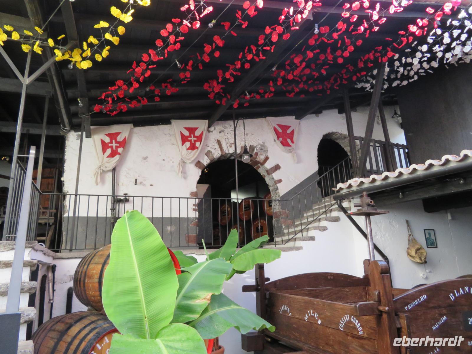 Am Morgen unternahmen wir eine orientierende Stadtrundfahrt durch Funchal vorbei am berühmten Reids Hotel, der Sissi-Statue und dem Stadtgarten. Von dort spazierten wir zum Blandys Weingut, wo wir von Teresa viel Wissenswertes über den Weinanbau auf Madeira und die Herstellung des Madeira-Weins erfahren haben. Zum Abschluss konnten wir noch zwei Sorten des traditionellen Madeira-Weins (trocken, halbtrocken oder süß) verkosten. Im Gegensatz zu anderen Weinsorten, wird der Madeira-Wein nicht kühl, sondern warm gelagert. Die Wärme soll den Geschmack des Weins positiv beeinflussen. Anschließend spazierten wir zur Kathedrale von Funchal sowie zur Markthalle. In der berühmten Markthalle ließen wir das bunte Treiben auf uns wirken und bummelten durch die verschiedenen Stände. Wir bestaunten den schwarzen Degenfisch, die exotischen Früchte und bunten Blumen. Nachdem das eine oder andere Souvenir erstanden wurde, machten wir uns auf den Weg zum Kräutergarten, um den Besuch bei Maria nachzuholen. Sie empfing uns in ihrem gemütlichen Garten und servierte uns selbstgemachten Schokoladenkuchen mit Fenchel und Maracuja. Zudem genossen wir noch ein Mango-Bananen-Eis mit flüssiger Schokolade und frischen Früchten aus ihren Garten. Zum Abschluss gab es noch einen lauwarmen Tee mit frischen Kräutern - eine leckere und leichte Erfrischung!