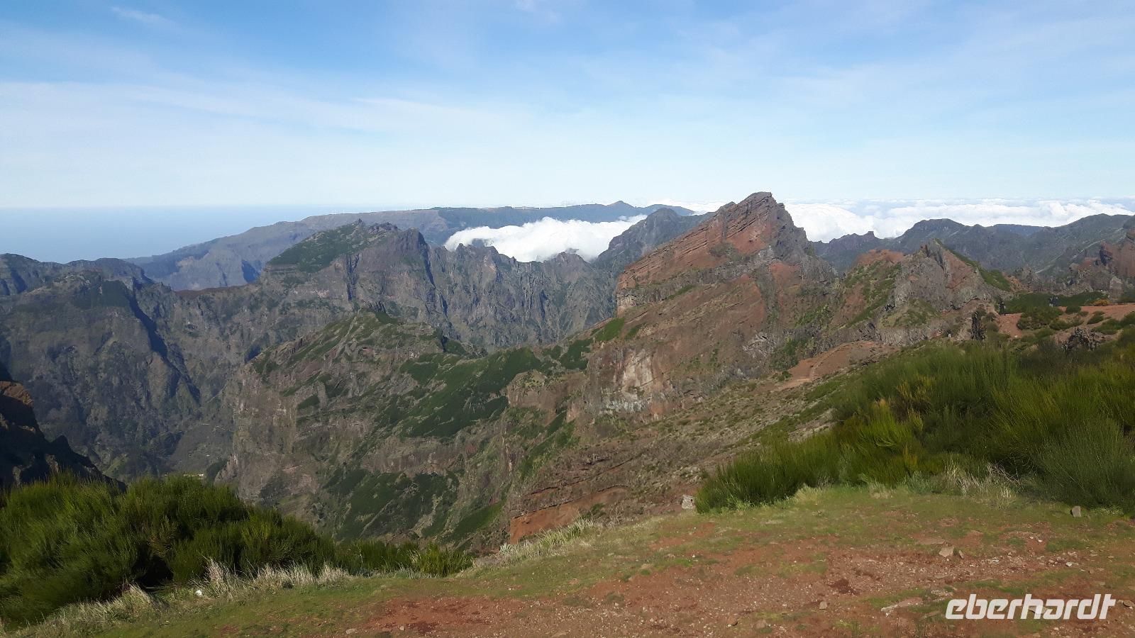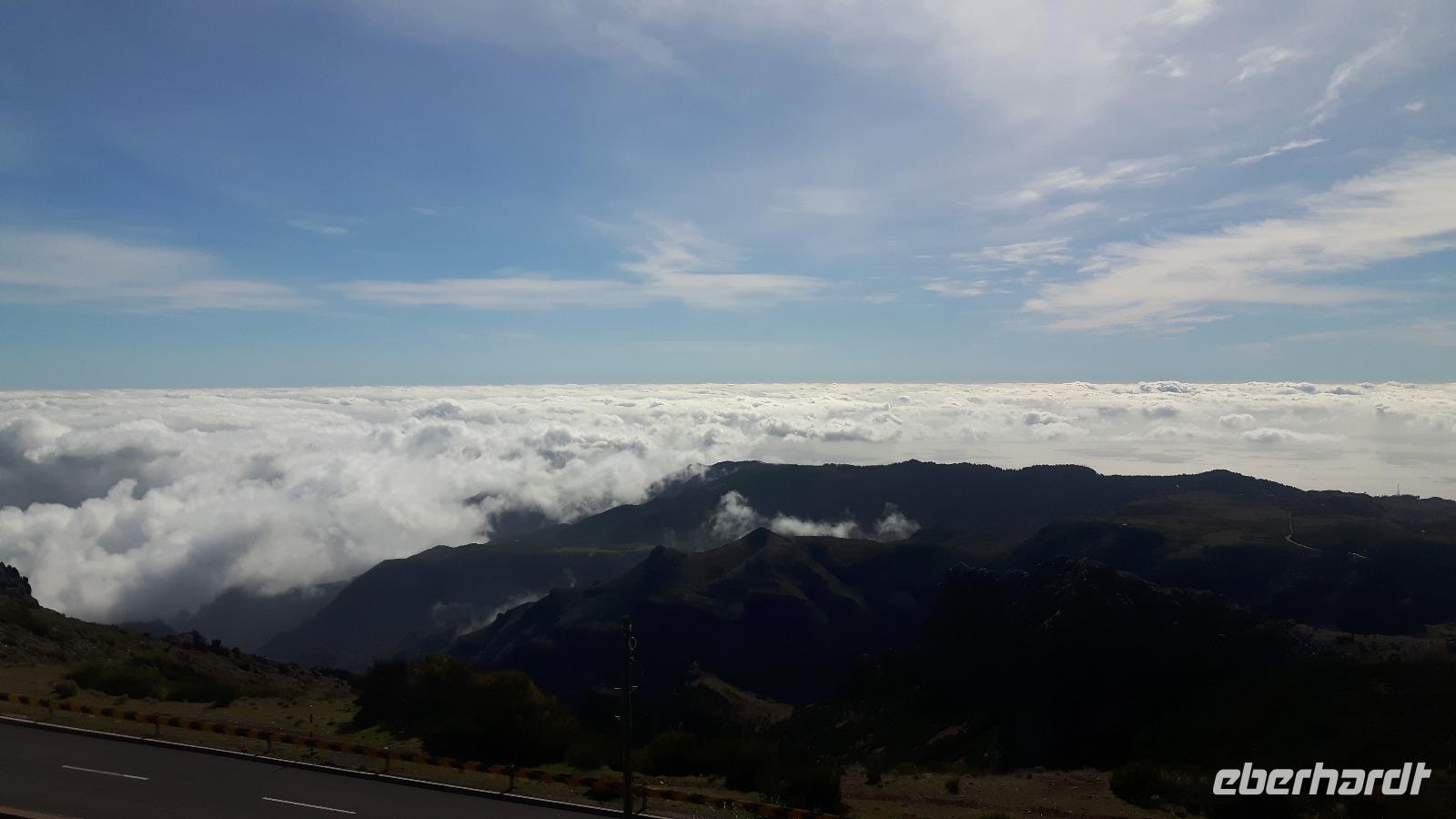 Ausgeschlafen und gut gestärkt vom reichhaltigen Frühstücksbuffet starteten wir unseren ersten Ausflugstag, der uns den östlichen Teil der Insel näherbringen sollte. Zunächst erreichten wir das kleine Städtchen Camacha, welches insbesondere für seine Korbflechterei bekannt ist. Wir hatten sogar die Möglichkeit, den Handwerkern bei der Arbeit zuzuschauen und wer wollte, konnte hier Korbwaren aller Art erwerben. Von nun an ging es dann immer weiter bergaufwärts, denn der reichlich 1.800 Meter hohe Pico Arieiro war unser nächstes Ziel. Die Fahrt war gigantisch, denn wir fuhren über den Wolken und hatten teilweise das Gefühl, in einem Flugzeug zu sitzen. Oben angekommen, eröffnete sich uns ein einzigartiges Panorama und trotz des unangenehm kalten Windes nutzten wir die Gelegenheit, um wunderschöne Fotos zu machen. Mit dem Bus erreichten wir später Ribeiro Frio, wo wir einen gemütlichen Spaziergang durch einen Lorbeerwald unternahmen und teilweise tolle Aussichten genießen konnten. Der Bus brachte uns gegen Mittag weiter an die Nordküste, nach Santana. In einem Restaurant genossen wir die ausgezeichneten kulinarische Köstlichkeiten Madeiras und bewunderten später die traditionellen strohgedeckten Häuser der Insel. Rundherum verzauberten uns Blumen aller Art und in den verschiedensten Farben! Der Nachmittag hielt noch einen weiteren Höhepunkt für uns bereit, denn vom Aussichtspunkt Pico Facho hatten wir nicht nur einen überwältigenden Blick auf den Ort Machico, sondern auch auf die einzige Start- und Landebahn des hiesigen Flughafens, die immerhin eingebettet zwischen dem Meer und einer Bergkette liegt. Mit einem einzigartigen Bauprojekt hat man diese mittlerweile verlängert und so ragt die auf Stelzen getragene künstlich verlängerte Bahn mitten ins Meer hinein - sehr beeindruckend! Wir übten uns hier auch in Geduld, denn wir warteten immerhin so lange bis sowohl ein Flugzeug landete, als auch startete... Das gemeinsame Abendessen nahmen wir heute im Nobelrestaurant "Atlantis" Canico de Baixo ein, wo wir den berühmten Degenfisch serviert bekamen, der immerhin eine der absoluten Fisch-Spezialitäten Madeiras darstellt.