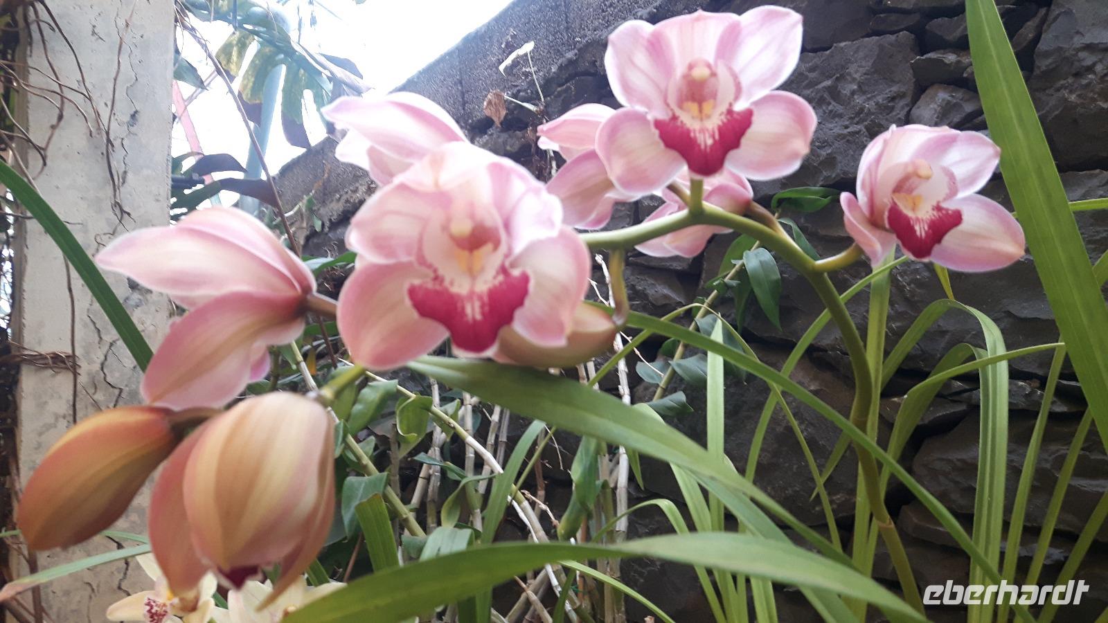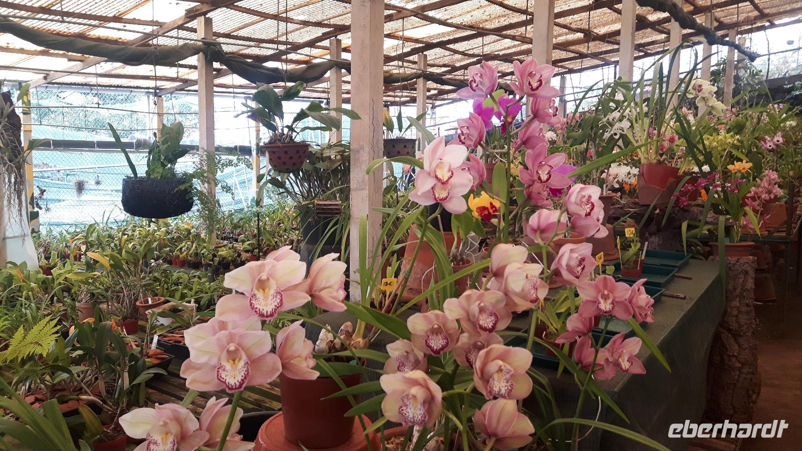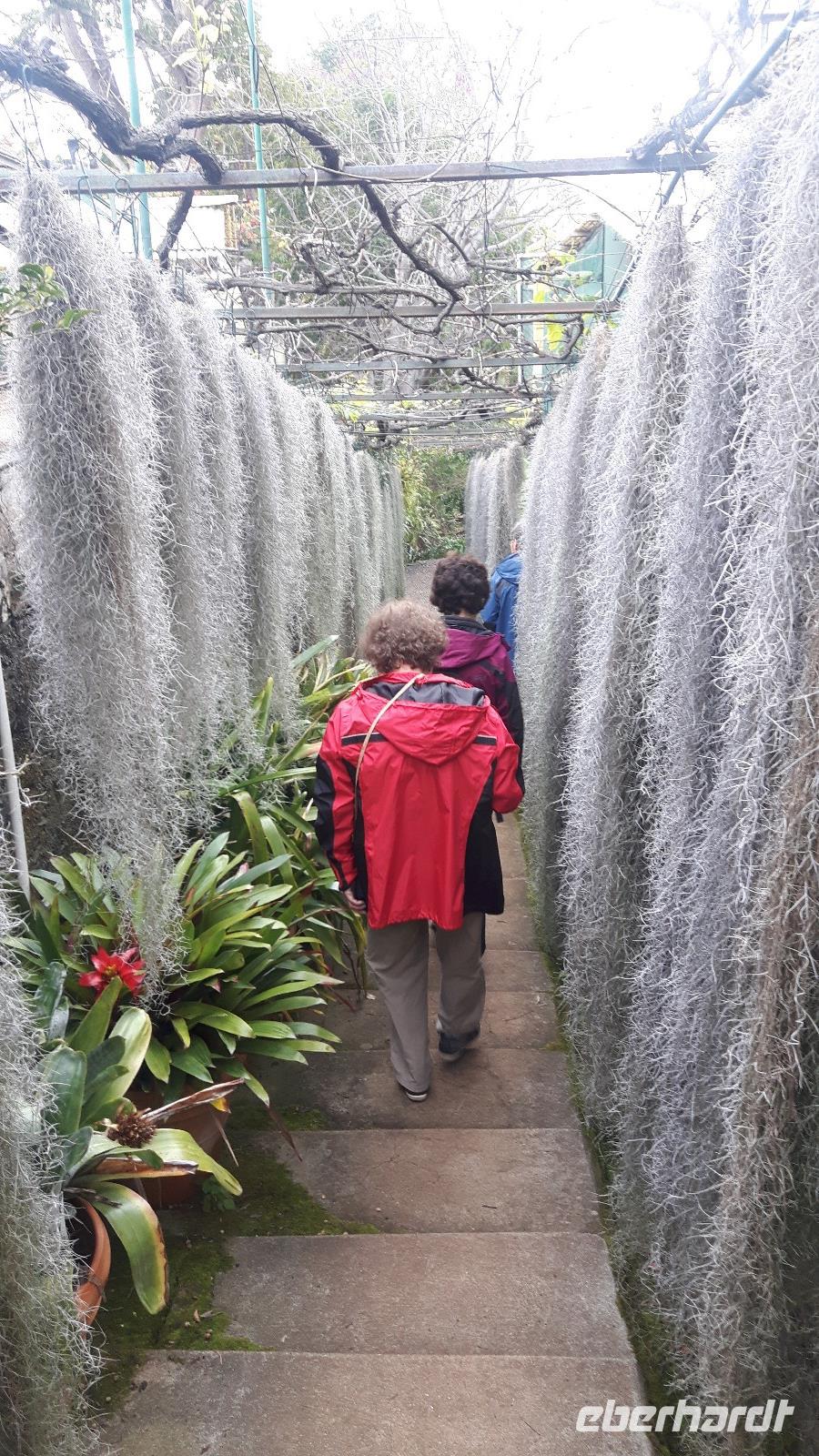 Alle Gäste nahmen am heutigen fakultativen Ausflug teil, denn dieser versprach wiederum so einiges und vertiefte unser Wissen über die umfangreiche Botanik der Insel. Zunächst steuerten wir die Palheiro Gärten oberhalb von Funchal, besser bekannt auch unter dem Namen "Blandy´s Garden", an. Dieser Garten ist nicht nur einer der schönsten, sondern auch einer der ältesten Parks von Madeira und seine Ursprünge reichen immerhin bis Anfang des 19. Jahrhunderts zurück. Später wurde das Landgut vom britischen Weinhändler John Blandy gekauft und nach ihm ist diese Anlage bis heute benannt. Uns erwarteten Gewächse aller Arten und Gattungen. Es blühten die Kamelien, Akazien, Kaprosen, Strelitzien und die traumhaften Protea-Pflanzen. Paula kannte fast alle Pflanzen namentlich, aber merken konnten wir uns leider nicht einmal die Hälfte davon! Völlig fasziniert ging es weiter in die nur wenige Kilometer entfernte Orchideenwelt "Quinta da Boa Vista", die heutzutage generationsübergreifend vom Engländer Patrick geführt wird. Er öffnete uns auf seine charmante Art buchstäblich die Augen für die Faszination, die von diesen Pflanzen ausgeht. Wir bewunderten nicht nur die Schönheit der Orchideen, sondern bekamen auch einen Einblick in die kaum zu erahnenden Arbeitsstunden und die Leidenschaft, die nötig sind, um eine solche Züchtung zu verwirklichen. Das heutige Tagesprogramm wurde mit dem Besuch eines privaten Gartens gekrönt, wo uns eine interessante Schokoladenprobe erwartete. Wir probierten einige ungewöhnliche Schokoladen-Variationen in Abstimmung mit diversen alkoholischen Getränken wie Madeira-Wein, Rum und Kirsch-Likör. Echt lecker, denn die Schokoladen-Kreationen waren unter anderem mit diversen Gewürzen aus dem eigenen Kräutergarten bzw. Früchten wie Zimt, Pfeffer, Ingwer, Banane und vielen anderen Zutaten verfeinert. Doch damit nicht genug, es folgte ein Schokoladen-Fondue mit Obst und Kuchen - ein Mittagessen der etwas anderen Art, aber wirklich köstlich!