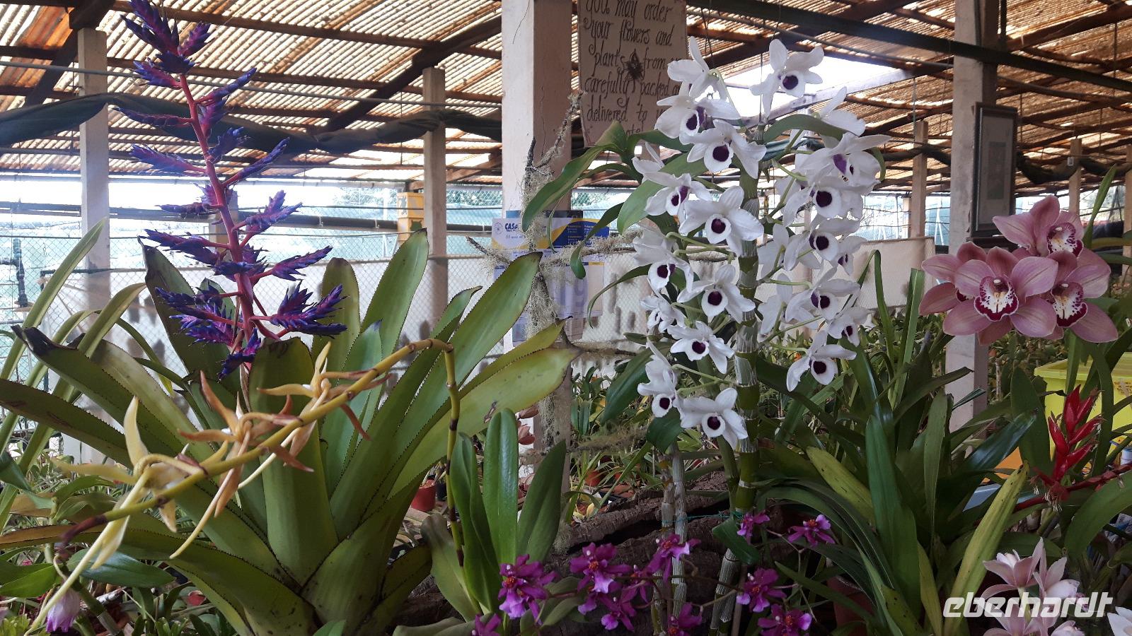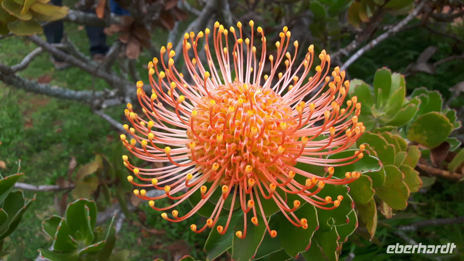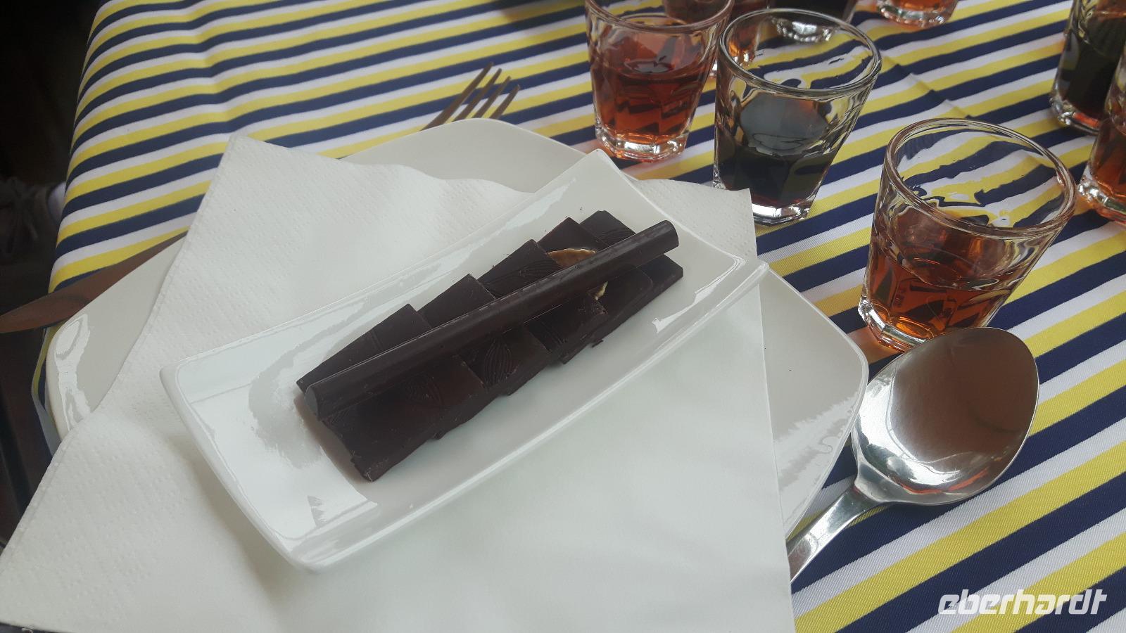 Alle Gäste nahmen am heutigen fakultativen Ausflug teil, denn dieser versprach wiederum so einiges und vertiefte unser Wissen über die umfangreiche Botanik der Insel. Zunächst steuerten wir die Palheiro Gärten oberhalb von Funchal, besser bekannt auch unter dem Namen "Blandy´s Garden", an. Dieser Garten ist nicht nur einer der schönsten, sondern auch einer der ältesten Parks von Madeira und seine Ursprünge reichen immerhin bis Anfang des 19. Jahrhunderts zurück. Später wurde das Landgut vom britischen Weinhändler John Blandy gekauft und nach ihm ist diese Anlage bis heute benannt. Uns erwarteten Gewächse aller Arten und Gattungen. Es blühten die Kamelien, Akazien, Kaprosen, Strelitzien und die traumhaften Protea-Pflanzen. Paula kannte fast alle Pflanzen namentlich, aber merken konnten wir uns leider nicht einmal die Hälfte davon! Völlig fasziniert ging es weiter in die nur wenige Kilometer entfernte Orchideenwelt "Quinta da Boa Vista", die heutzutage generationsübergreifend vom Engländer Patrick geführt wird. Er öffnete uns auf seine charmante Art buchstäblich die Augen für die Faszination, die von diesen Pflanzen ausgeht. Wir bewunderten nicht nur die Schönheit der Orchideen, sondern bekamen auch einen Einblick in die kaum zu erahnenden Arbeitsstunden und die Leidenschaft, die nötig sind, um eine solche Züchtung zu verwirklichen. Das heutige Tagesprogramm wurde mit dem Besuch eines privaten Gartens gekrönt, wo uns eine interessante Schokoladenprobe erwartete. Wir probierten einige ungewöhnliche Schokoladen-Variationen in Abstimmung mit diversen alkoholischen Getränken wie Madeira-Wein, Rum und Kirsch-Likör. Echt lecker, denn die Schokoladen-Kreationen waren unter anderem mit diversen Gewürzen aus dem eigenen Kräutergarten bzw. Früchten wie Zimt, Pfeffer, Ingwer, Banane und vielen anderen Zutaten verfeinert. Doch damit nicht genug, es folgte ein Schokoladen-Fondue mit Obst und Kuchen - ein Mittagessen der etwas anderen Art, aber wirklich köstlich!