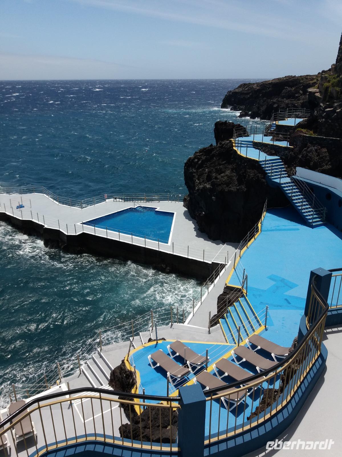 Die natürlichen Pools (Piscinas Naturais do Cachalote),sind umgeben von großen und kleinen Lavasteinen im Meer. Sie werden von der Flut mit kristallklarem Wasser gefüllt und laden zum Baden ein. Porto Moniz ist ein sehr beliebter Badeort.