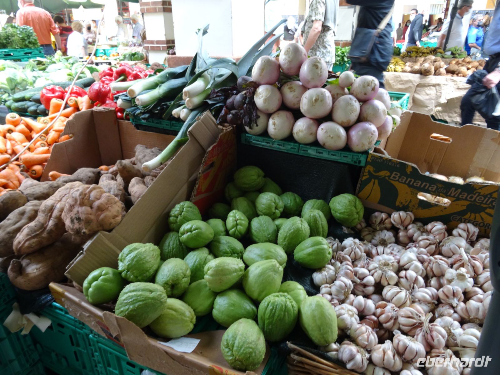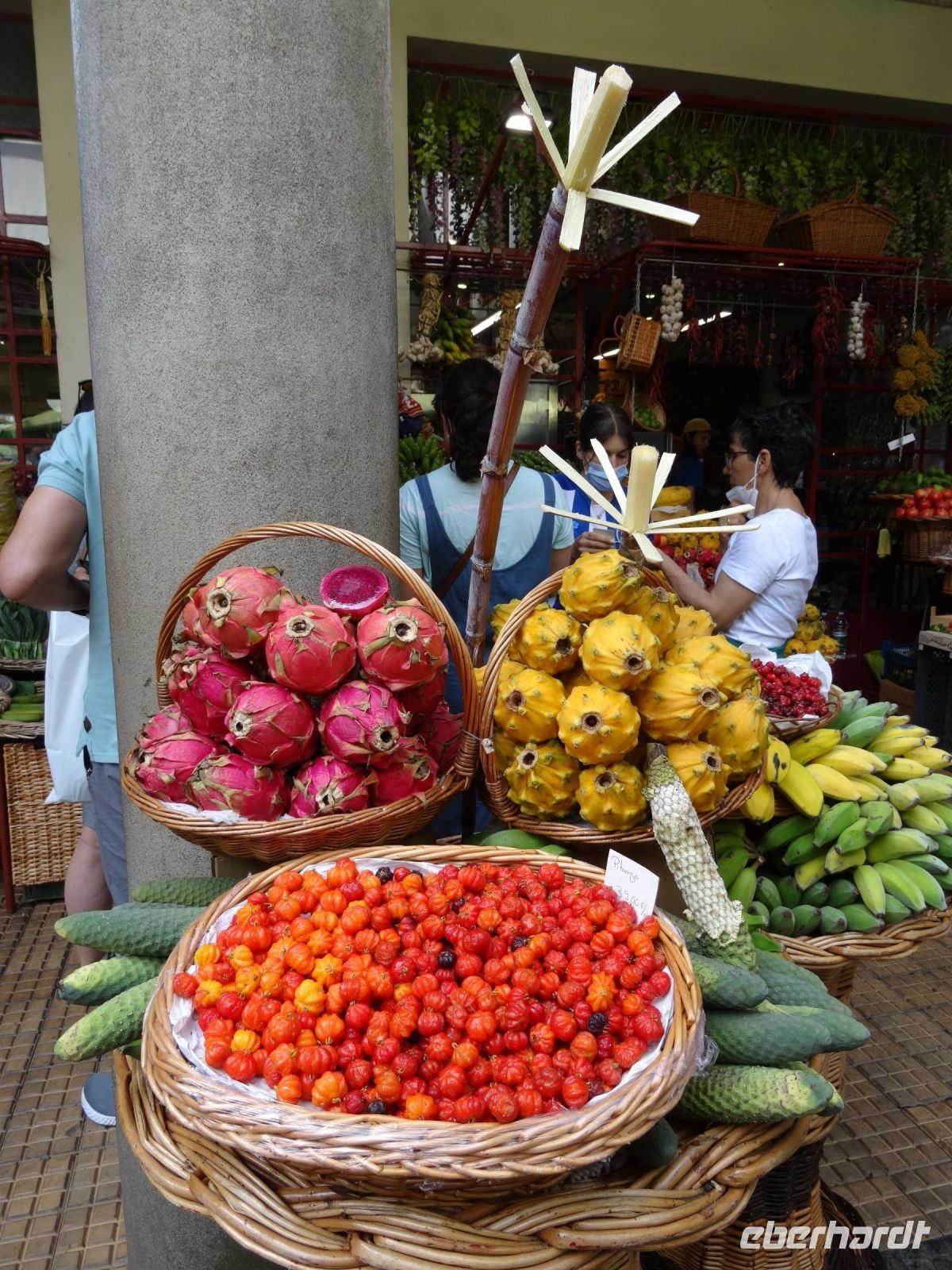 Anschließend fuhren wir in die Hauptstadt der Insel - Funchal. Der erste Besuch galt der Markthalle, denn wir wollten endlich den bekannten schwarzen Degenfisch in Natur sehen. Ehrlich gesagt: Er schmeckt viel, viel besser als er aussieht. An den Ständen in der Markthalle konnten wir von den vielen Früchten wie Papaya, Maracuja, süßen Bananen oder Anona kosten und ließen uns ein wenig von dem Trubel gefangen nehmen.