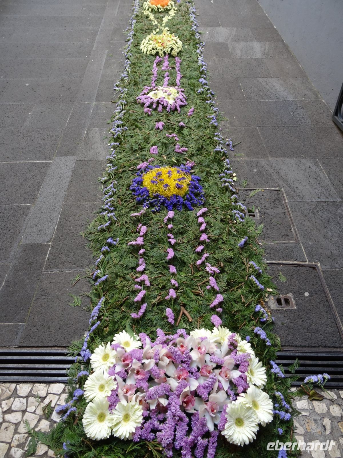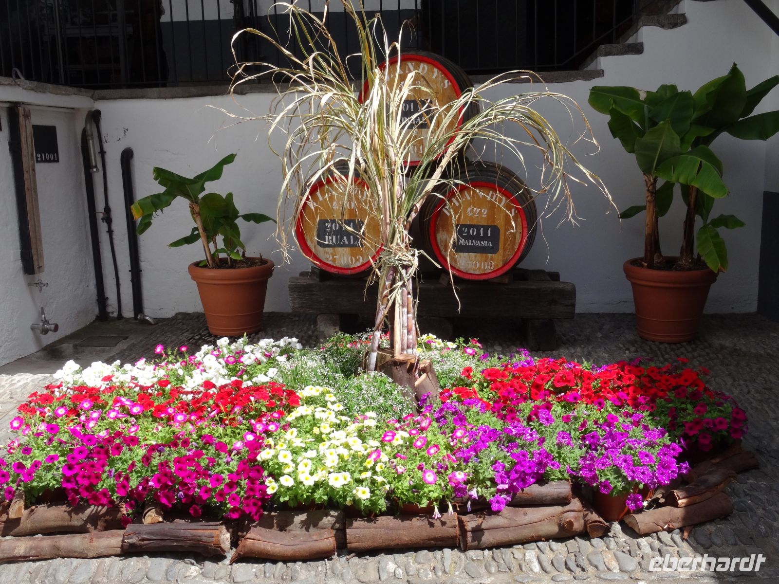 Danach liefen wir zu dem Weinkeller des bekannten Madeira Weines " Blandy's". Auf dem Weg dahin spürten und erlebten wir die Atmosphäre Richtung Höhepunkt des gegenwärtigen Blumenfestes. Er war gesäumt von farbenfrohen Blumenteppichen, Blumenausstellungen sowie Blumenständen oder anders gesagt - alles stand im Zeichen der Blumen.