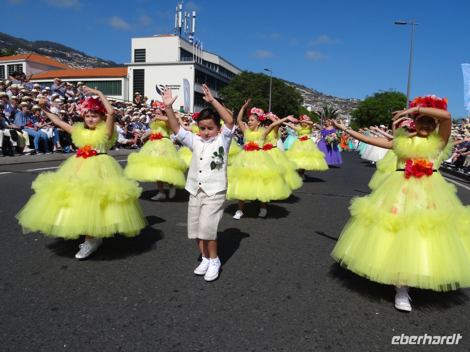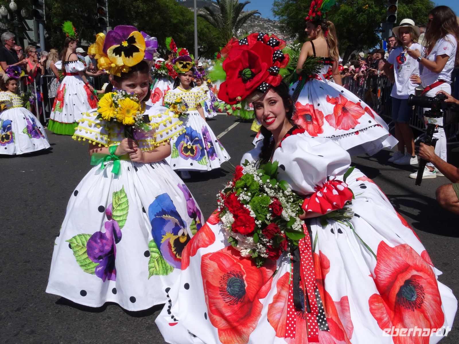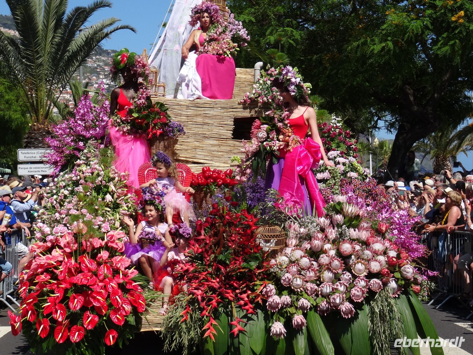Von Kindern bis Senioren mit zahlreichen, vielfältigen , prächtigen Blumenarten geschmückt liefen zu den Klängen fröhlicher musikalischer Themen mit Choreografen entlang der Magistrale von Funchal. Über zwei Stunden wurden wir verzaubert. Das Klicken der Kameras und Handys wollte kein Ende nehmen und unsere Sinne liefen Amok.