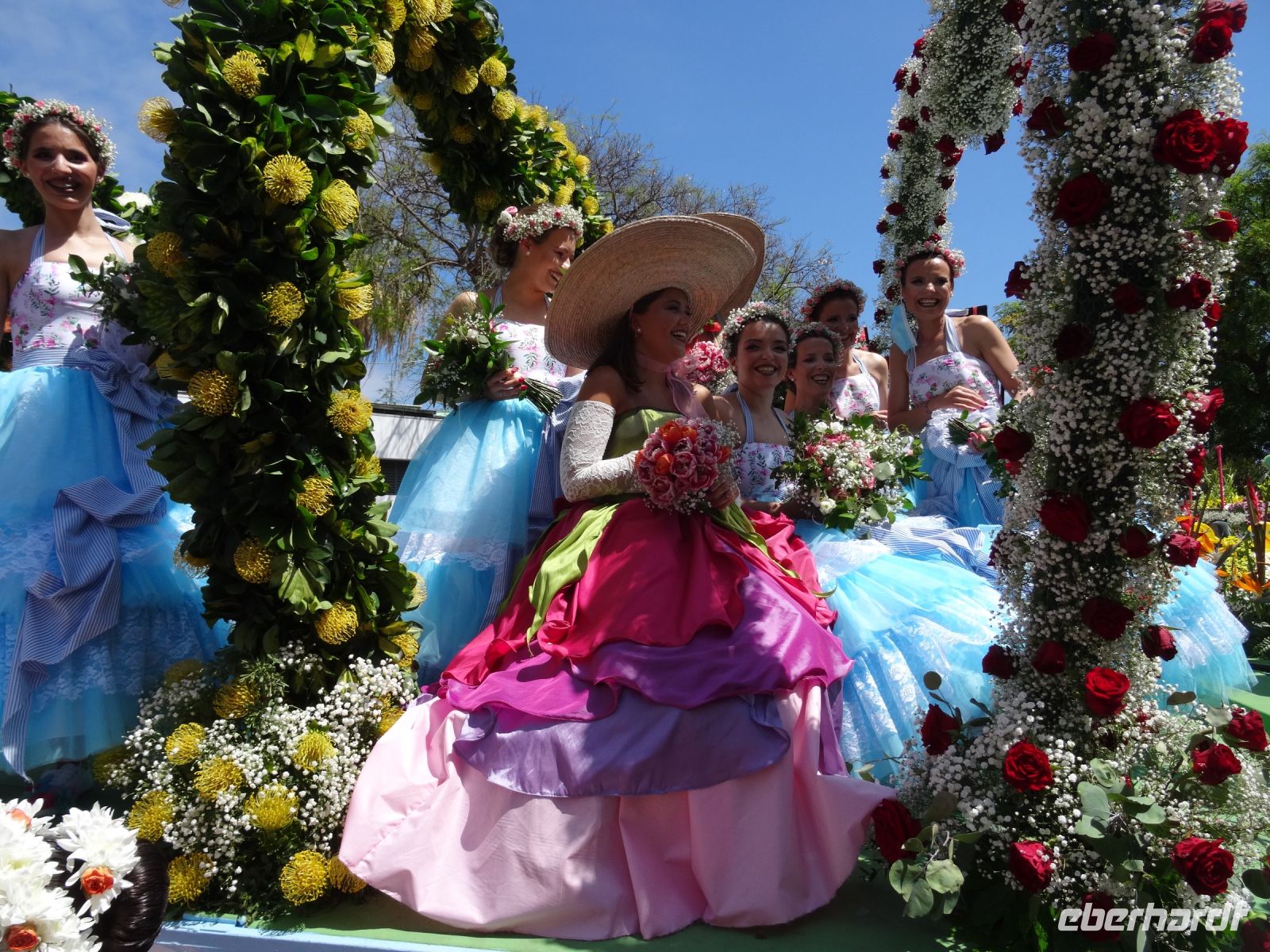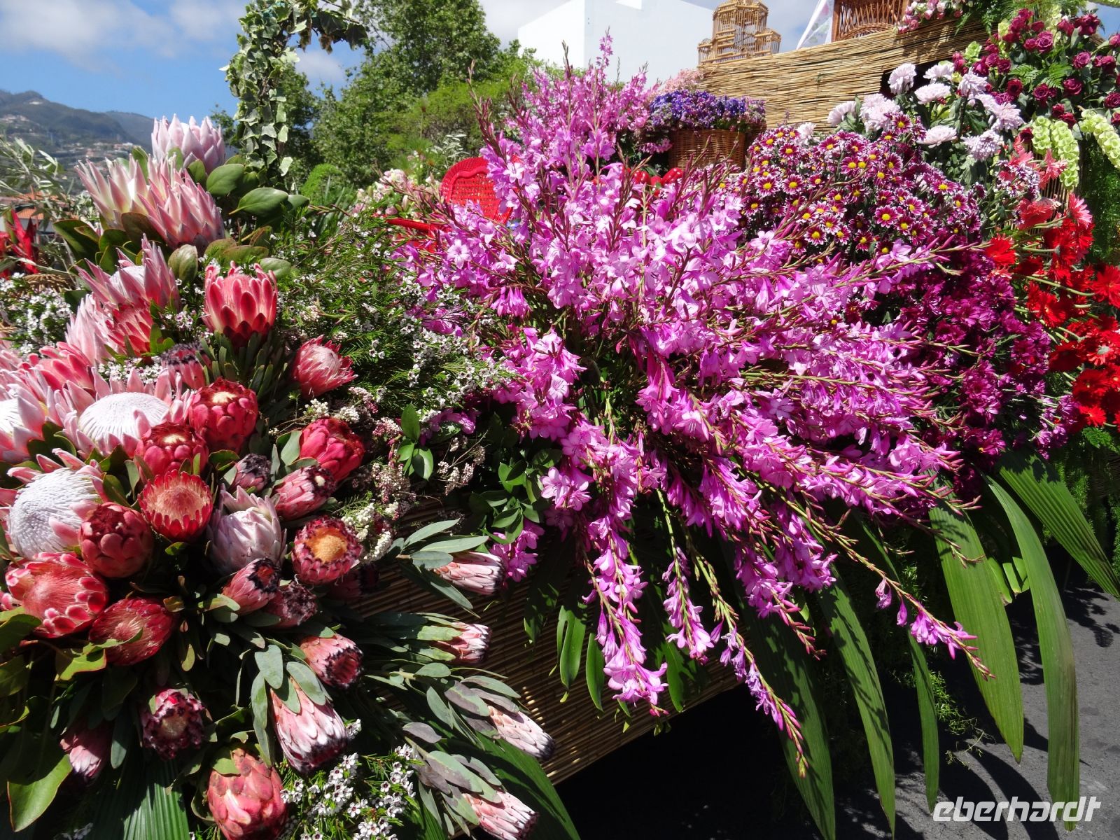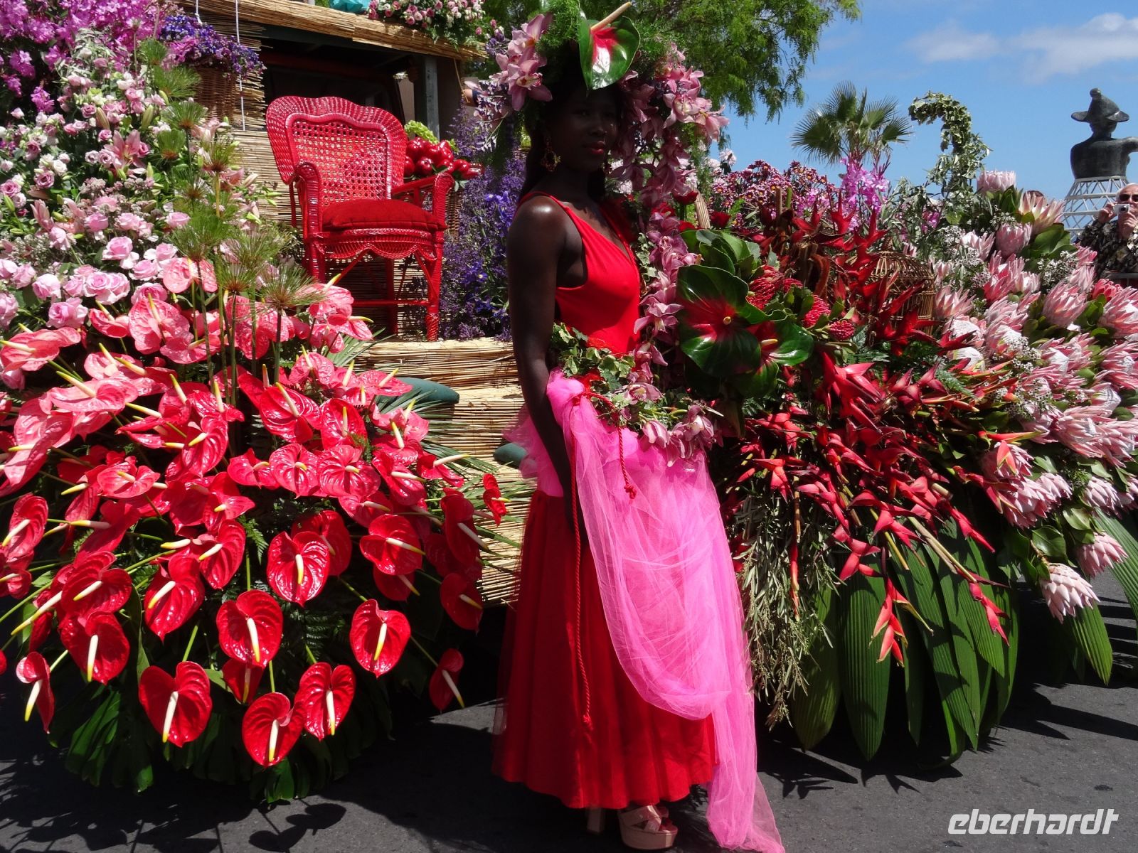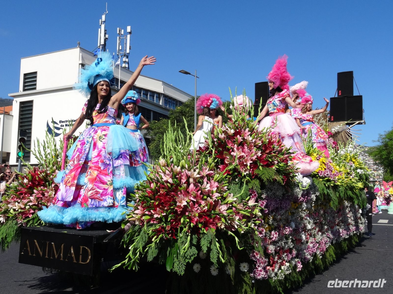 Von Kindern bis Senioren mit zahlreichen, vielfältigen , prächtigen Blumenarten geschmückt liefen zu den Klängen fröhlicher musikalischer Themen mit Choreografen entlang der Magistrale von Funchal. Über zwei Stunden wurden wir verzaubert. Das Klicken der Kameras und Handys wollte kein Ende nehmen und unsere Sinne liefen Amok.