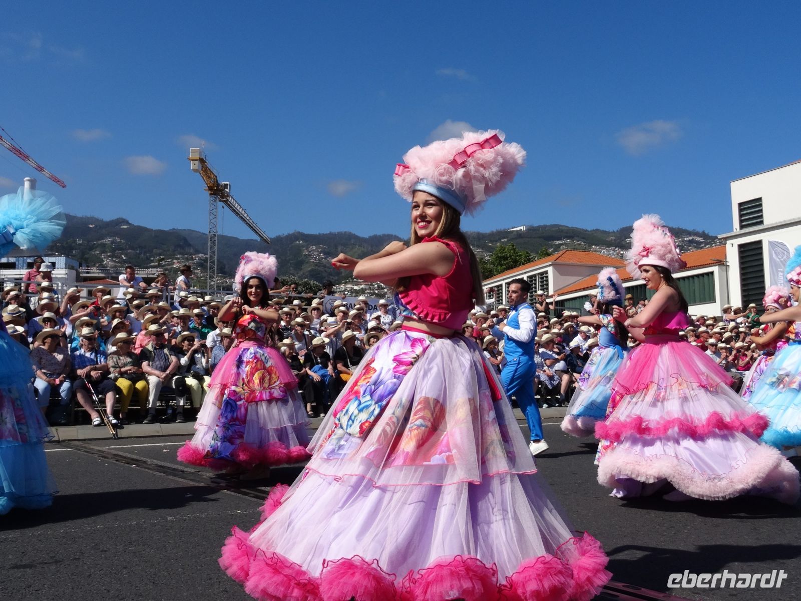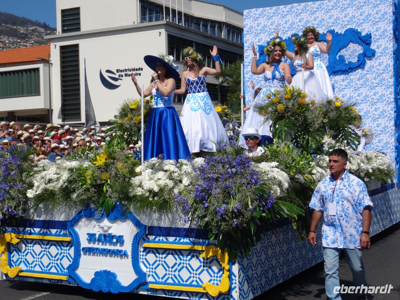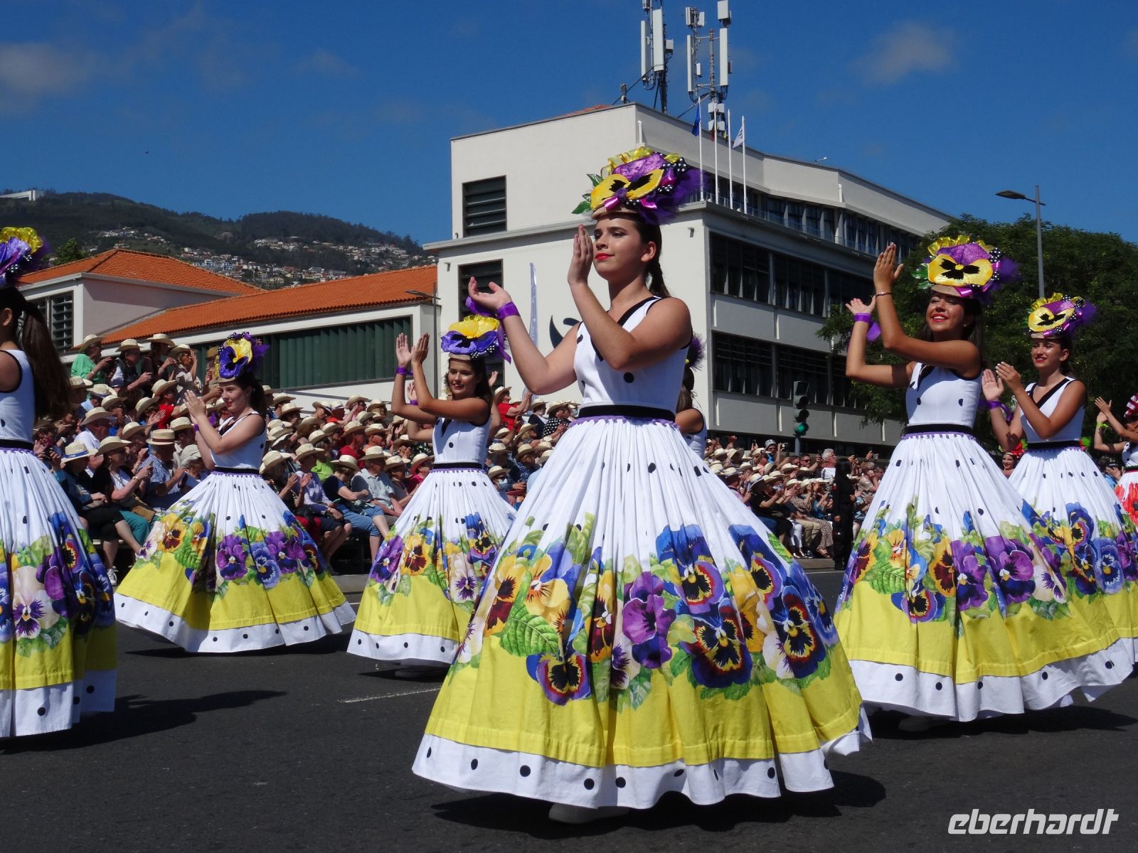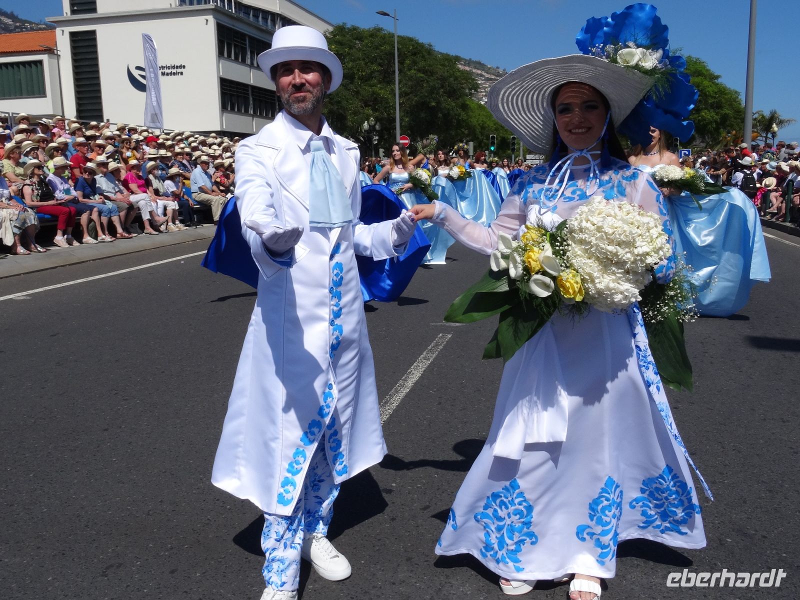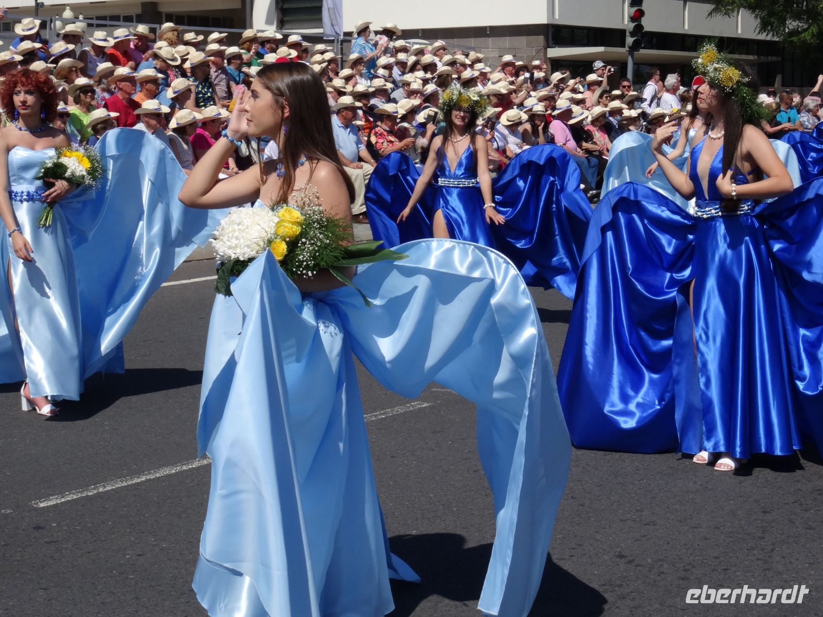 Dort erhielt jeder eine Flasche Wasser und den für Madeira typischen Strohhut. Angesichts der Menschenmassen links und rechts der Straße waren wir froh, nicht die gesamte Dauer des Festumzuges stehen zu müssen.