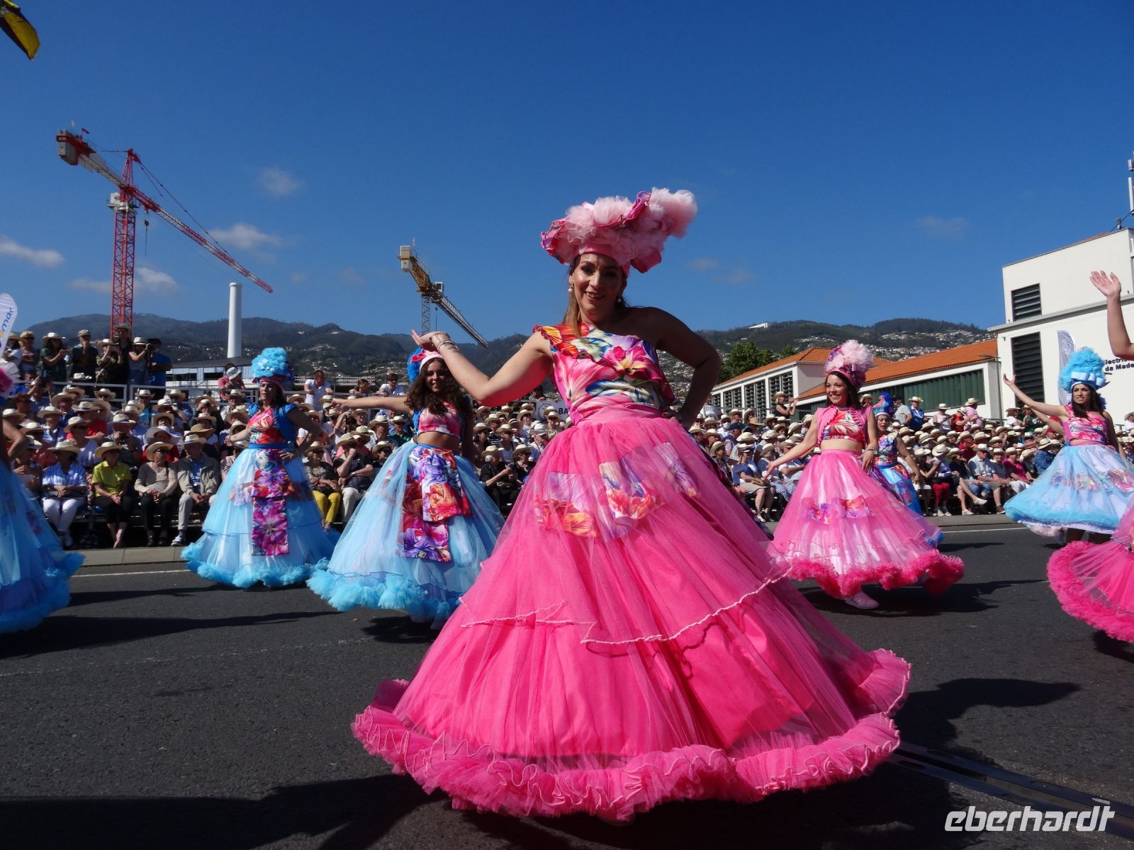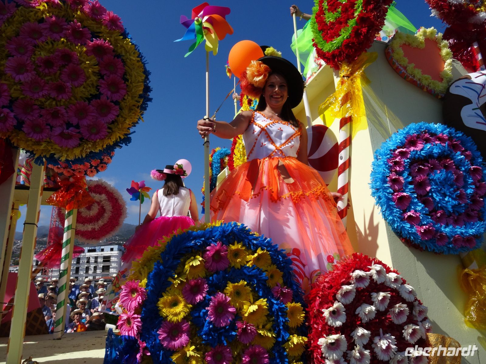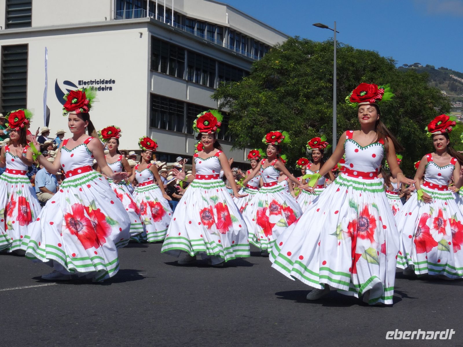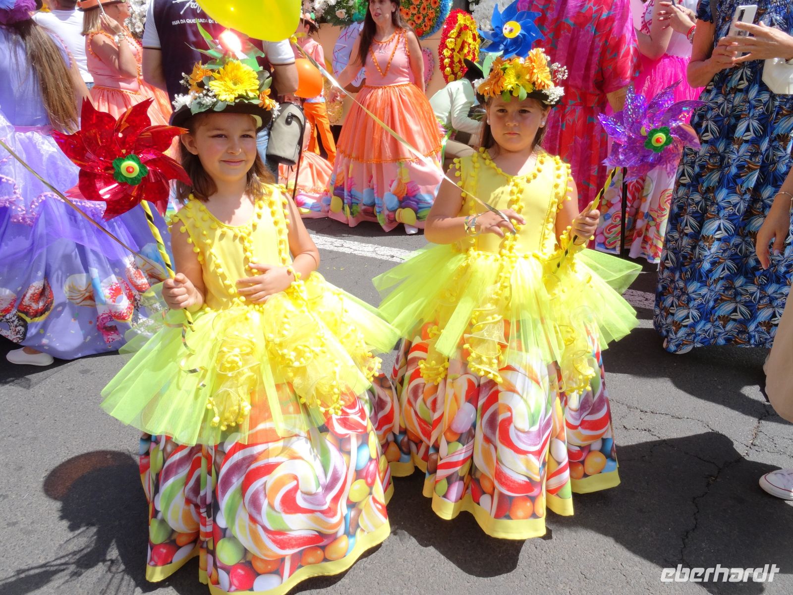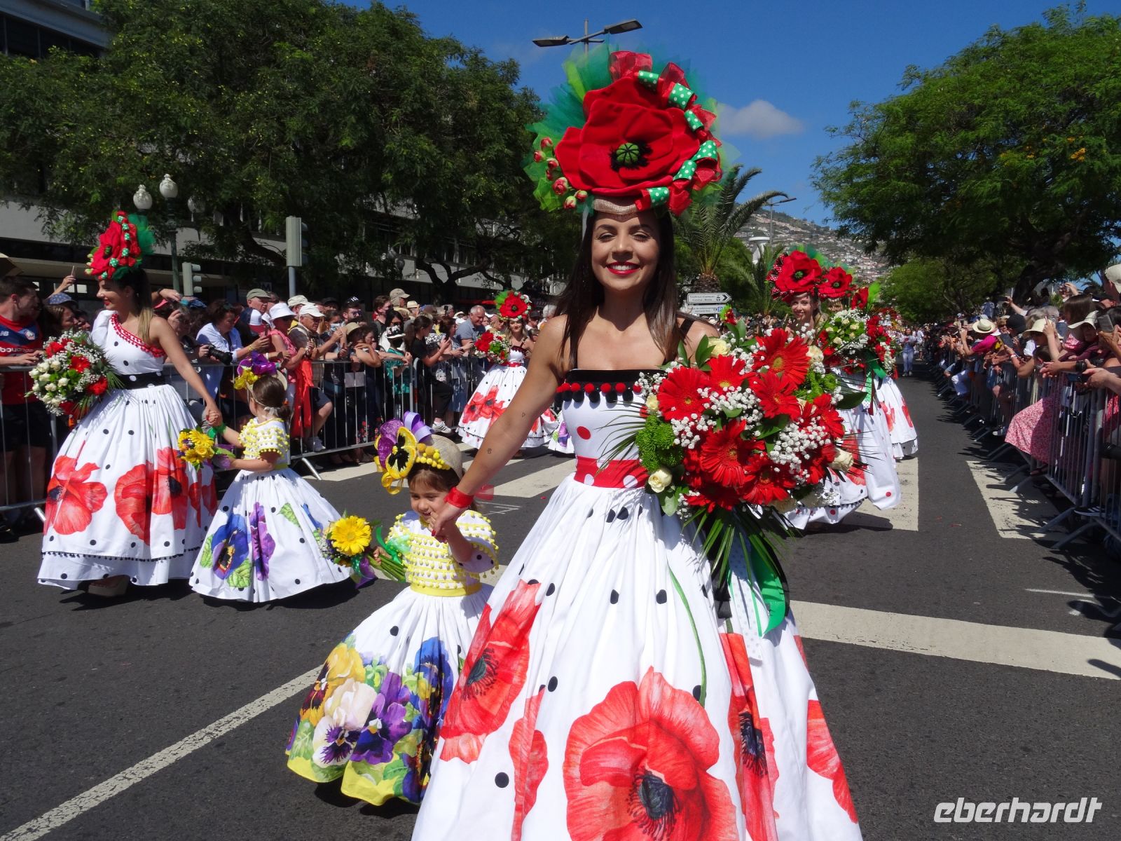 Dort erhielt jeder eine Flasche Wasser und den für Madeira typischen Strohhut. Angesichts der Menschenmassen links und rechts der Straße waren wir froh, nicht die gesamte Dauer des Festumzuges stehen zu müssen.