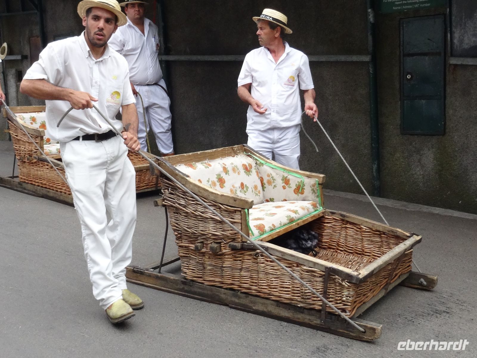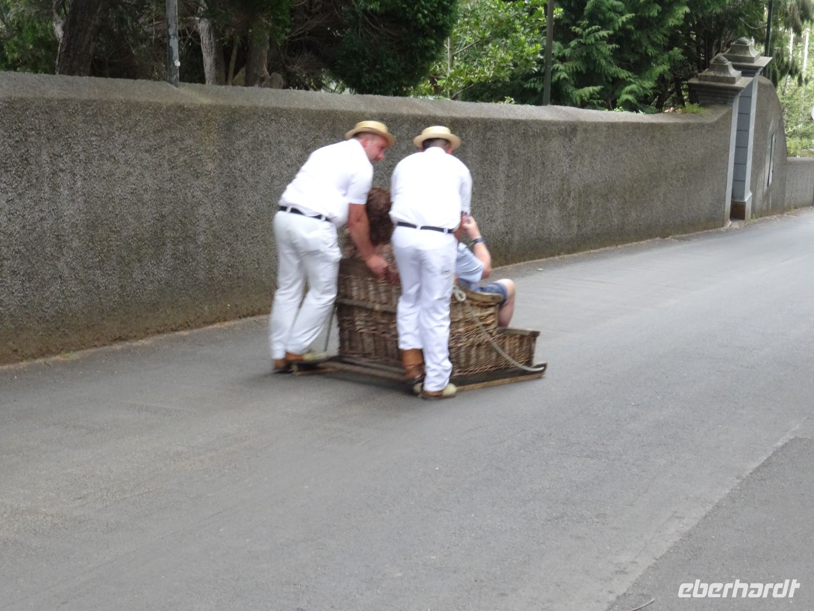 In unmittelbarer Nähe der Kirche befindet sich dann der Start für die über zwei Kilometer lange Schlittenfahrt von Monte nach Funchal. Diese heutige Touristenattraktion war früher ein normales Transportmittel für die Bewohner. Ohne Bremsen und nur von den kräftigen Korbschlitten- führen gelenkt wagten 17 mutige Reisegäste diese rasante Abfahrt . Sie wurden dafür mit unheimlich viel Spaß belohnt.