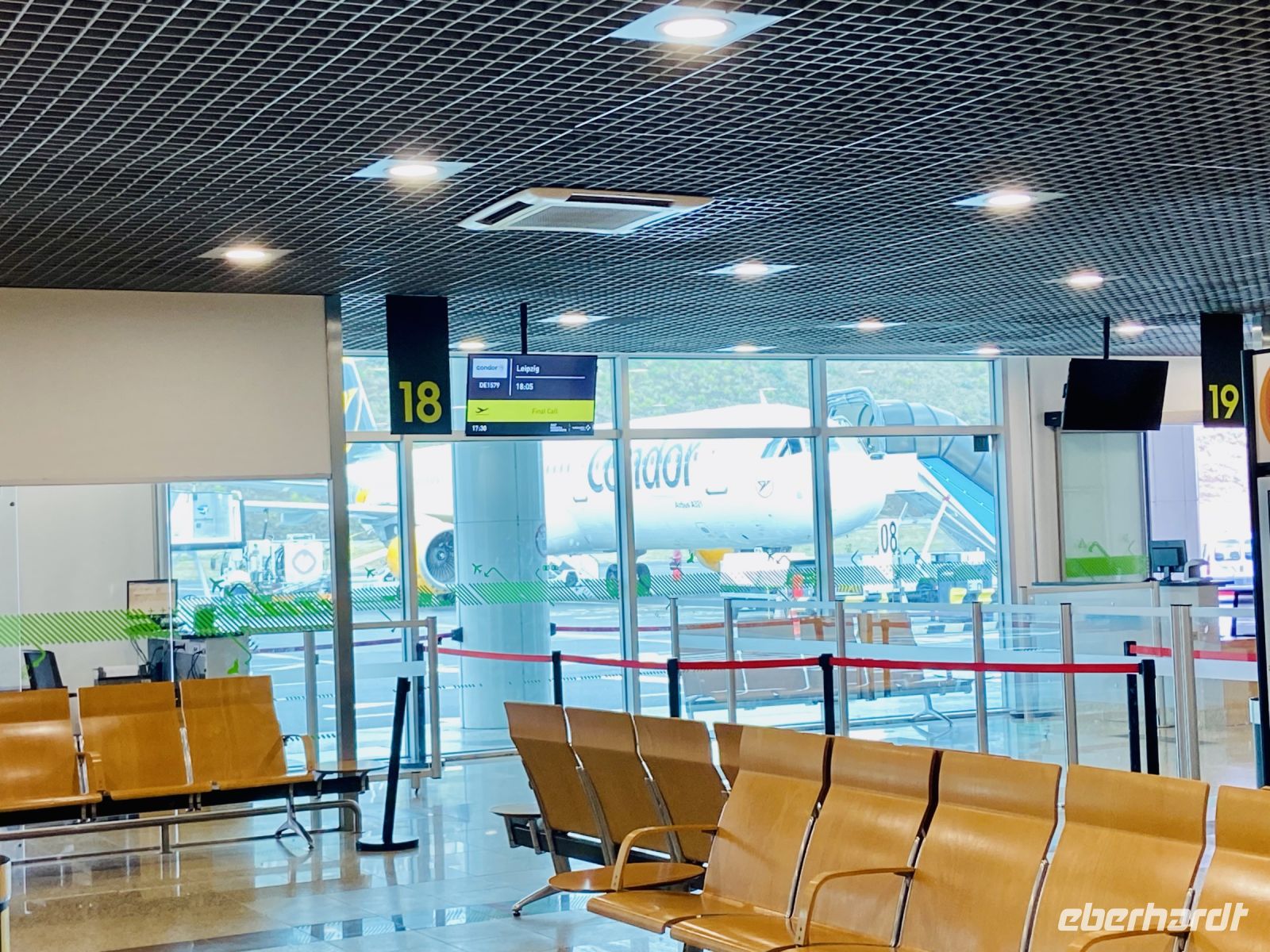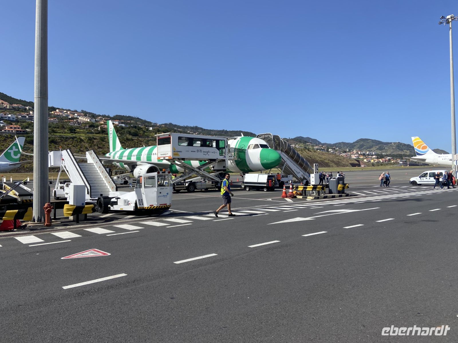 Um 14.30 Uhr ist es soweit, Angela und Paula kommen mit dem Bus und bringen uns zum Flughafen. Auf dem Wege dorthin hängen ein paar dunkle Wolken am Himmel - die ersten in dieser ganzen Woche. Drei Regentropfen fallen auf die Windschutzscheibe und Paula sagt:“Madeira weint, weil ihr nach Hause fahrt.“