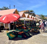 Die ursprünglich geplante Wanderung wäre in Anbetracht der hochsommerlichen Temperaturen, die zur Zeit herrschen, nicht schattig genug gewesen, So planen wir kurzfristig um auf einen andere Strecke von ca. 5 km in der Gegend von Camacha, entlang der Levada da Serra do Faial. Der schmale Weg läßt sich gut bewältigen, es gibt keine anstrengenden Steigungen. Herrlich ist der Blick auf die Natur und die Landschaft, von unserer Reiseleiterin lernen wir interessante Fakten über die Agarwirtschaft der Insel und den Anbau von Nutzpflanzen. Wie hart die Arbeit der Kleinbauern sein muss, die die steil abfallenden Grundstücke beackern, kann sich jeder vorstellen, der Zuhause einen Garten hat. So erstreckt sich eine Fülle unterschiedlicher Obst- und Gemüsesorten, der fruchtbare Boden verspricht reiche Ernte. In der Mitte der Strecke erfreuten wir uns an der wohlverdienten Pause in einem kleinen Café, danach geht es noch ca. 40 Minuten weiter, bis unser Bus uns erwartet und wohlbehalten zurück zum Hotel bringt.