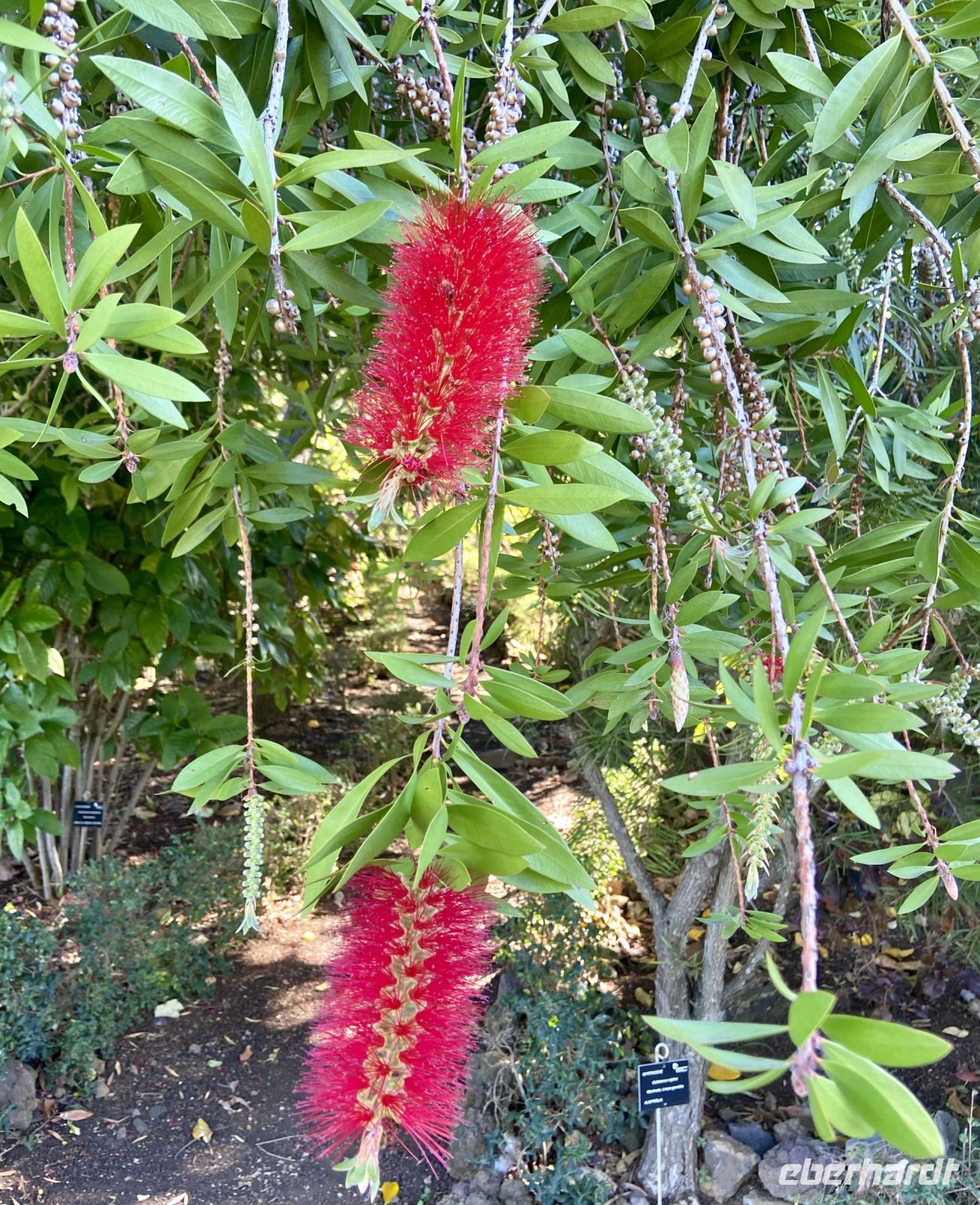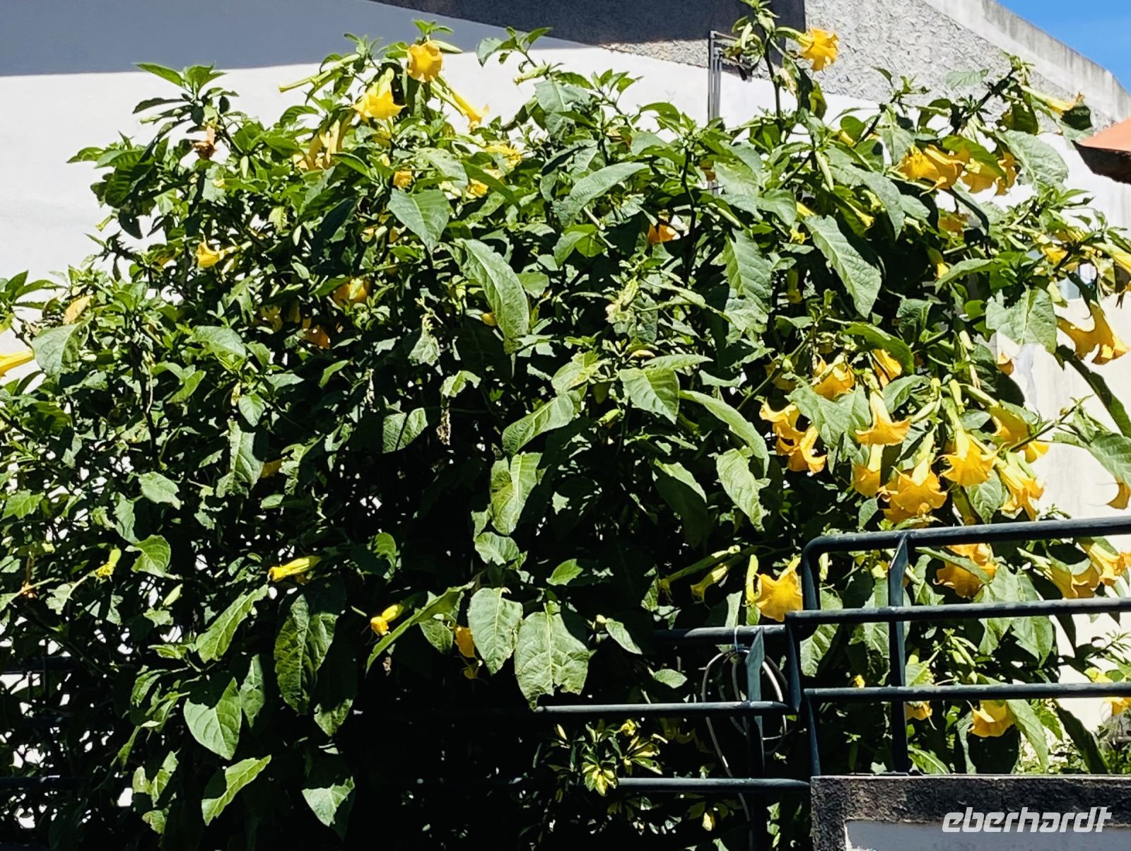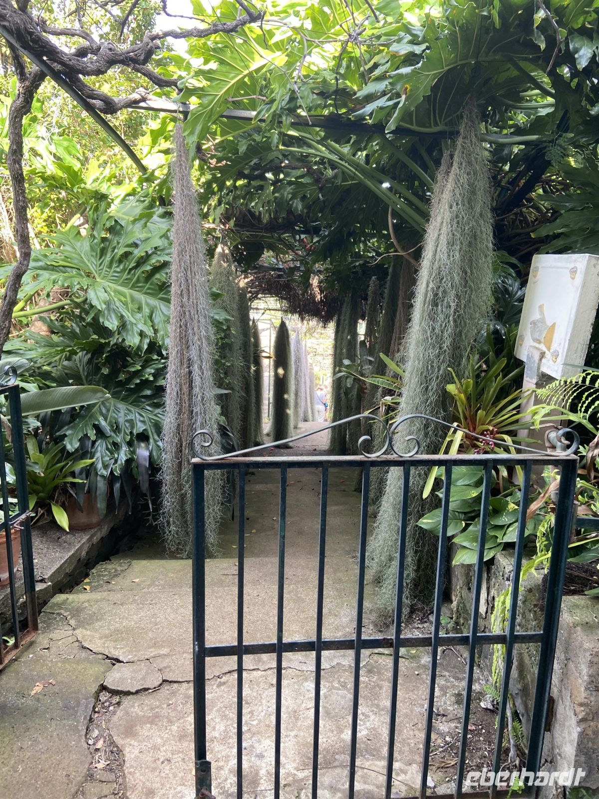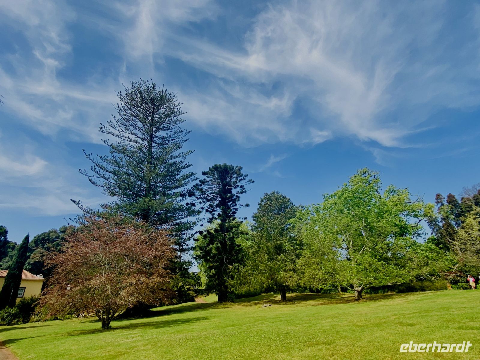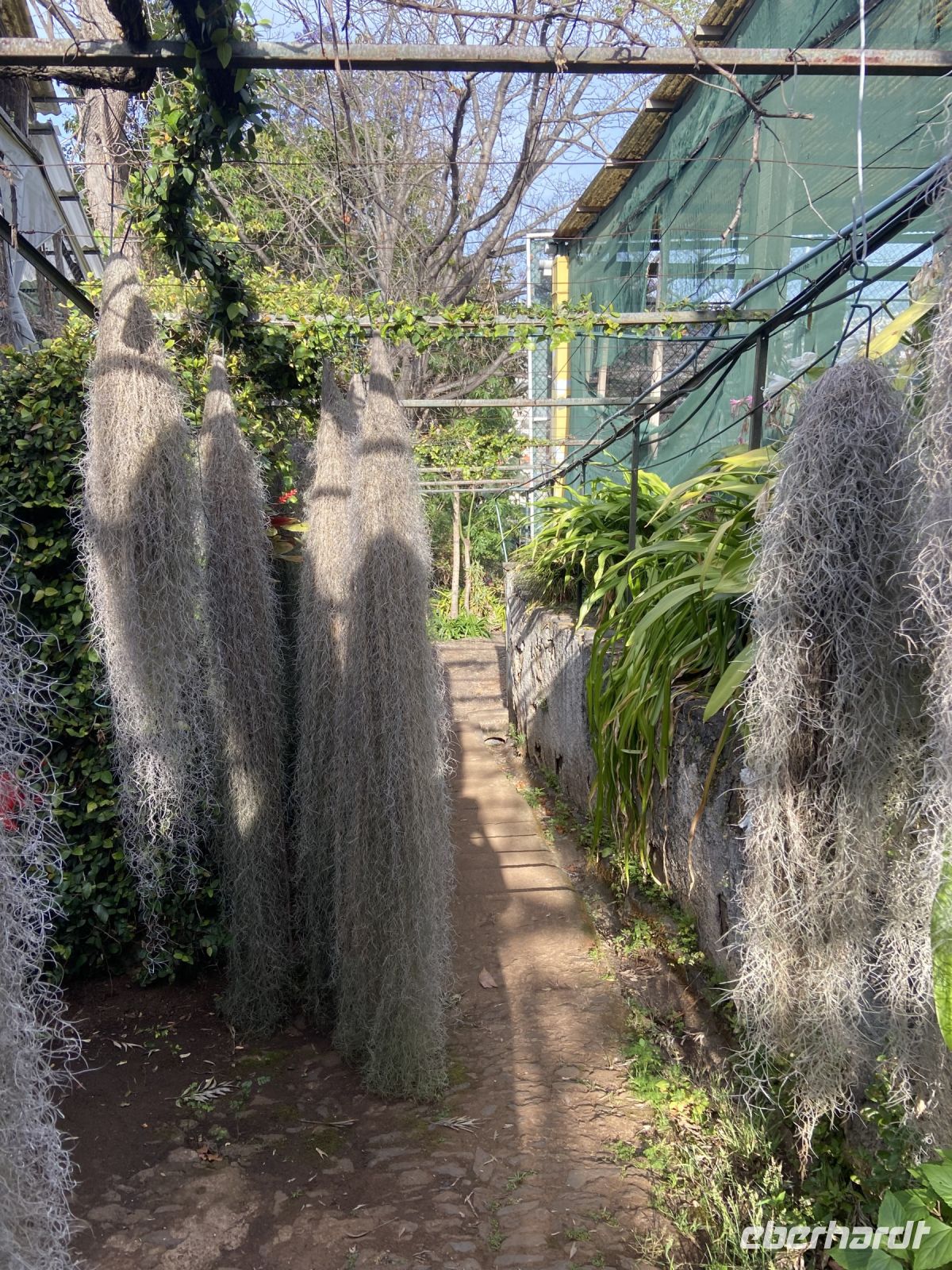 Da es zur Zeit hier auf Madeira sehr warm ist, weil wir ganz überraschend und unerwartet jetzt im April herrlichstes Hochsommerwetter haben, beginnen wir unseren heutigen Ausflug gleich mit dem Besuch des Botanischen Gartens oberhalb von Funchal. Es herrscht eine frische kühle Morgenstimmung, der Park ist noch fast frei von Besuchern und so können wir uns in Ruhe an der Pflanzenvielfalt, die sich uns hier bietet, erfreuen. 1960 gründete die Hoteliersfamilie Reid auf ihren Ländereien dieses kleine Paradies; fast 40.000 qm Pflanzenfülle im Überfluß machen uns sprachlos, hinzu kommt der spektakuläre Blick auf Funchal mit seinem Hafen, das sich unter uns entlang der Bucht erstreckt.