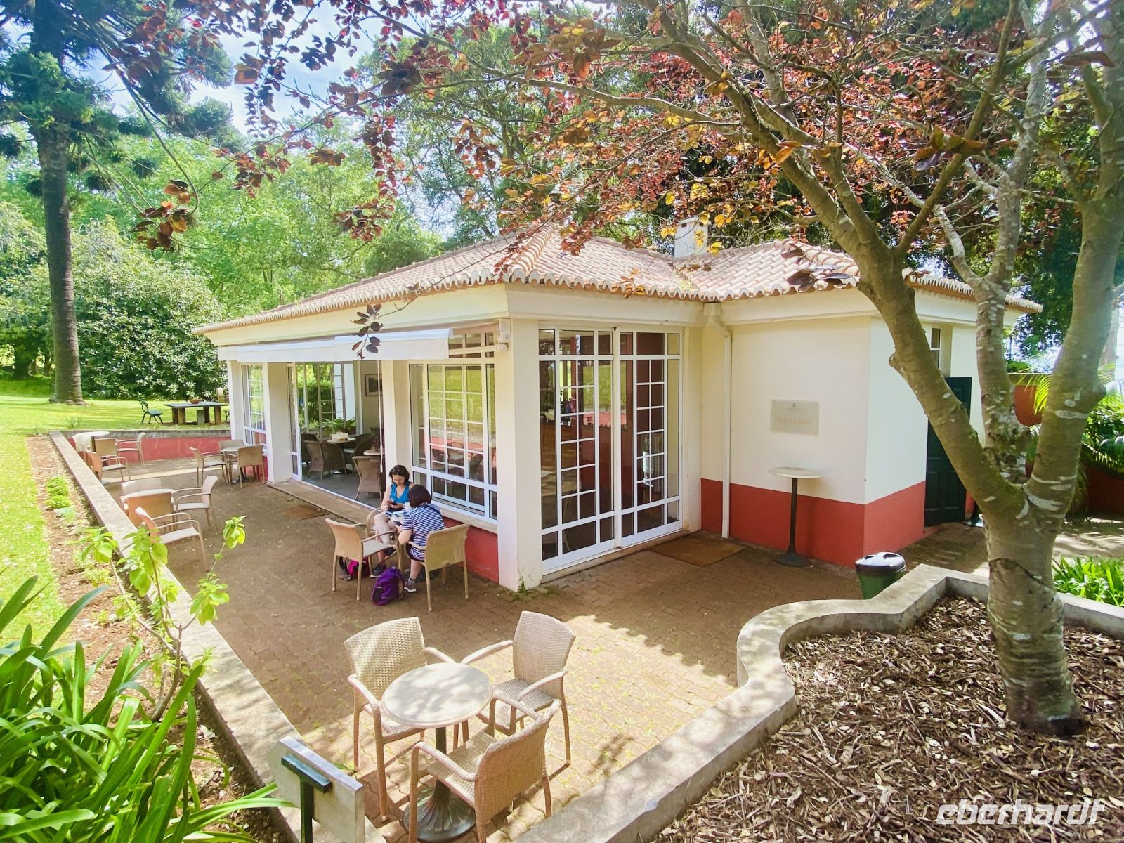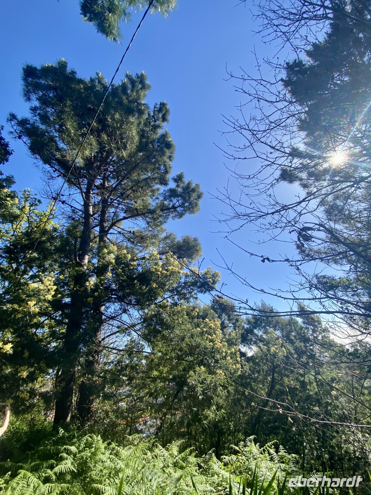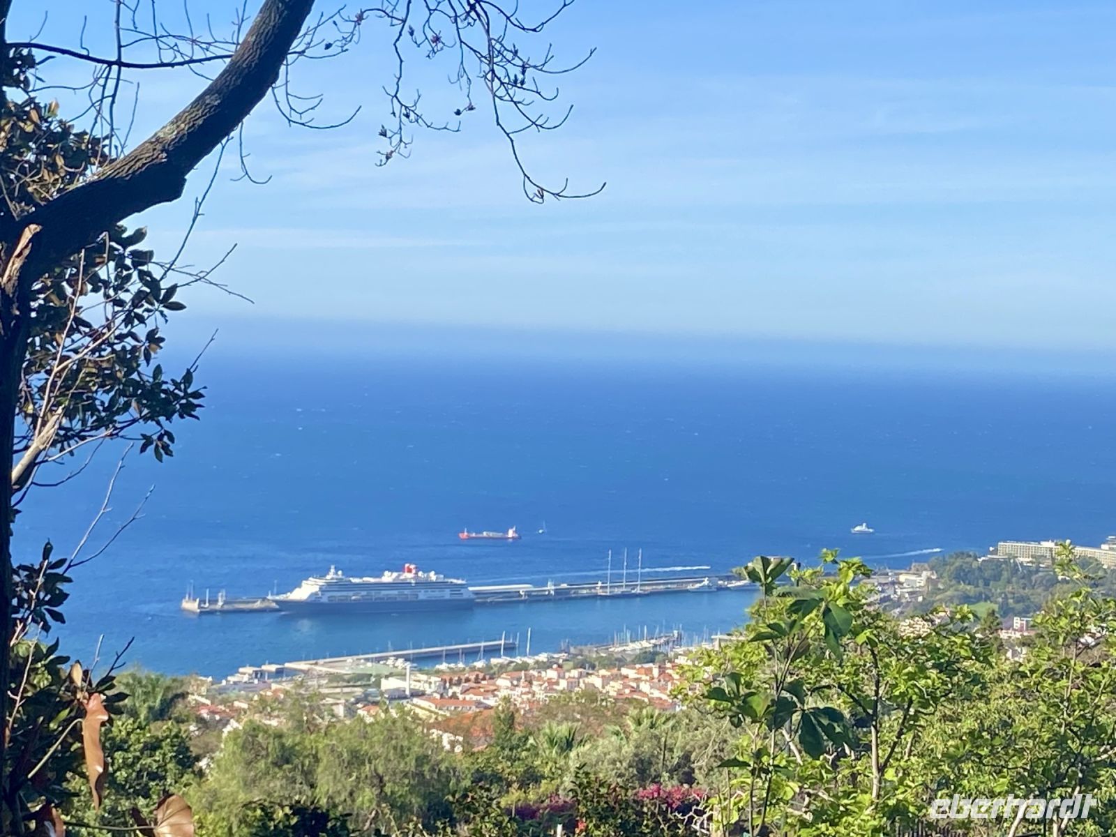 Wir halten kurz am Aussichtspunkt "Pico dos Barcelos", in dessen Nähe wir unser gestriges Abendessen hatten. Nun können wir den Blick aus einer Höhe von 355 Metern noch einmal bei Tageslicht genießen.