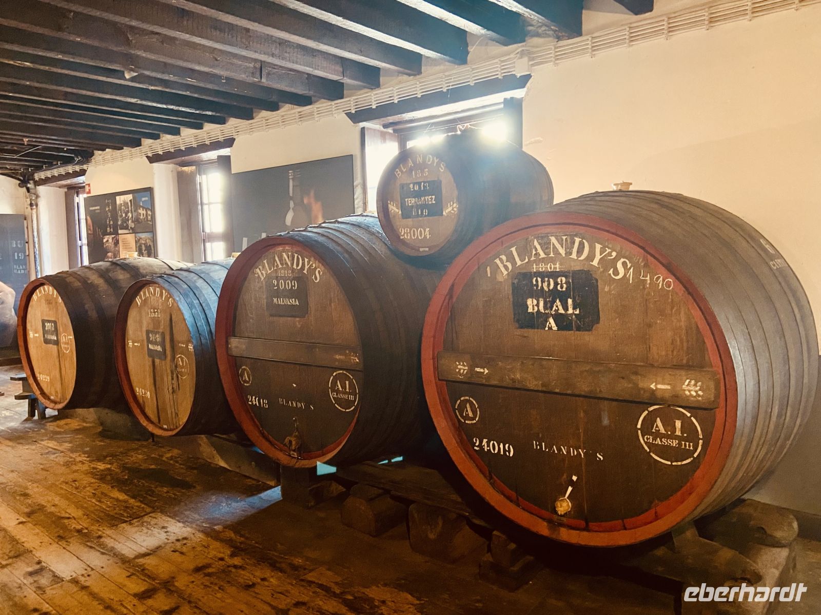 Dann geht die Fahrt weiter zu den Weinkellern der bekannten Marke "Blandy's", die hier seit Jahrhunderten gekeltert wird. Wir sehen die schweren alten Fässer - und natürlich dürfen wir auch von dem leckeren Likörwein probieren.
