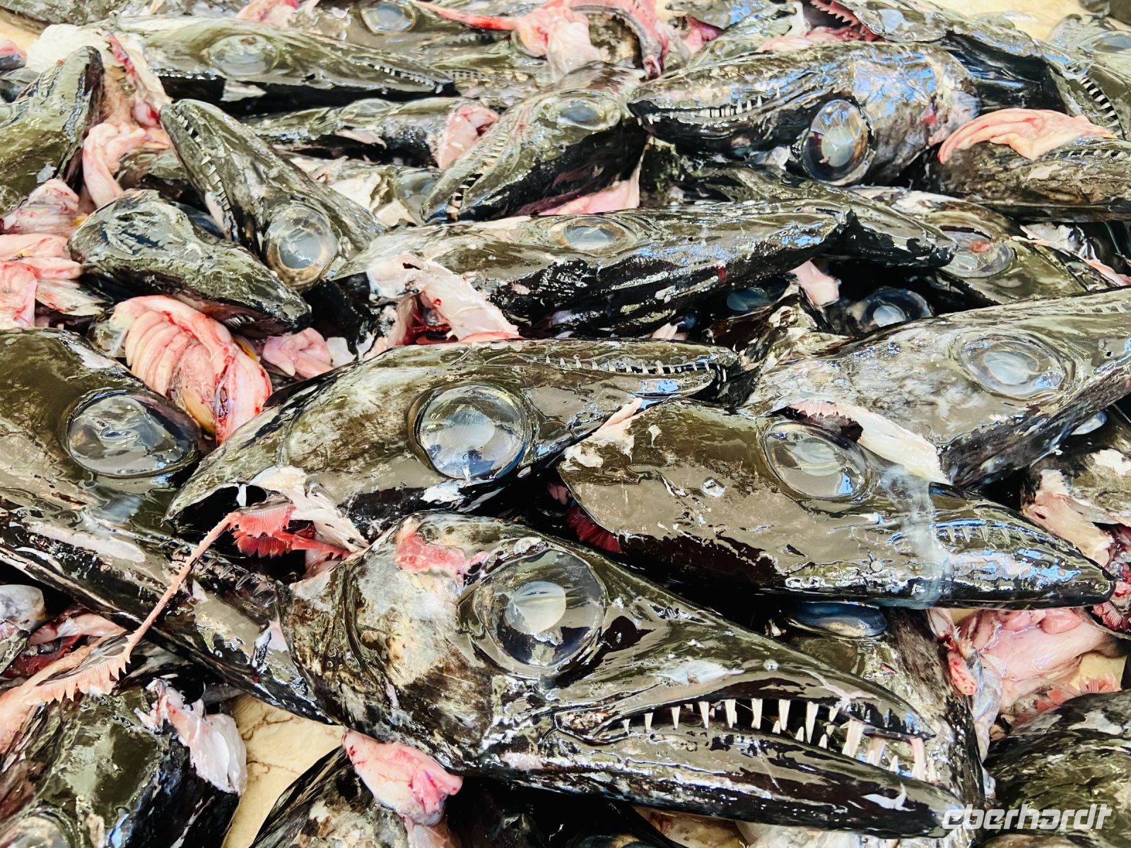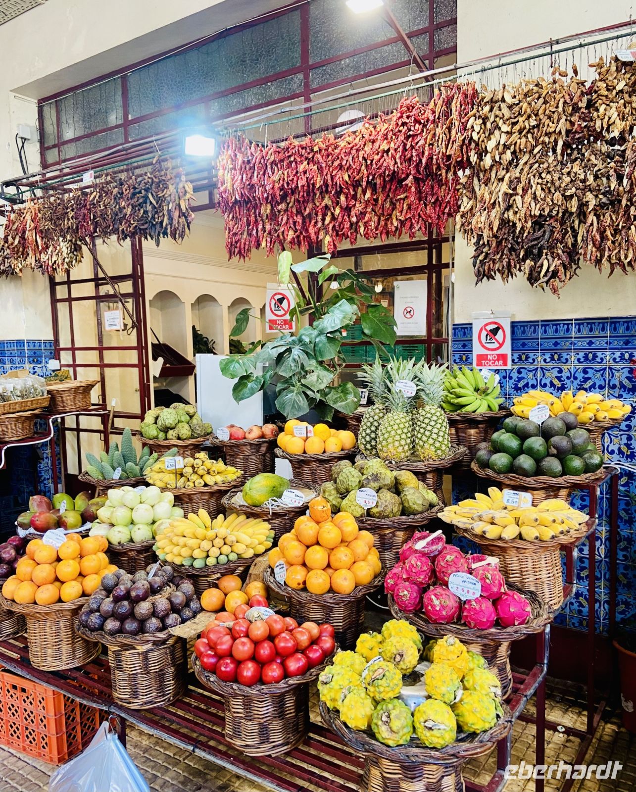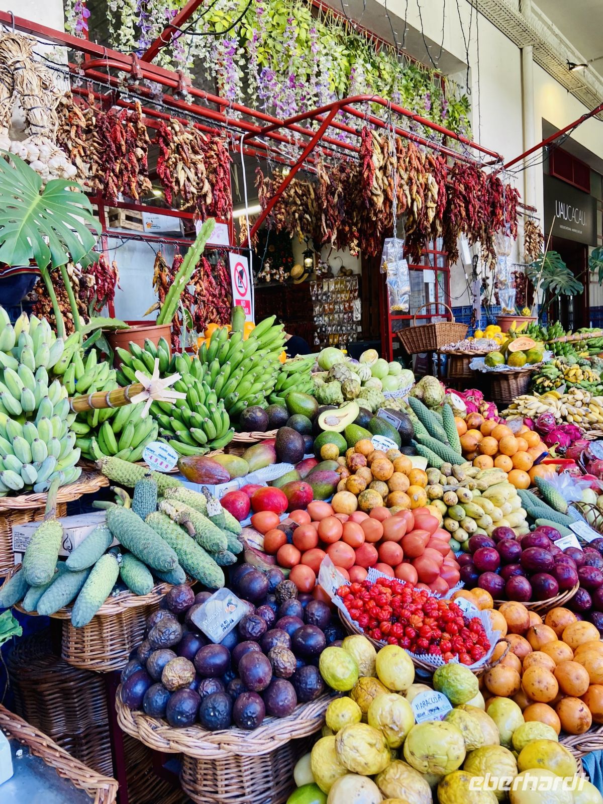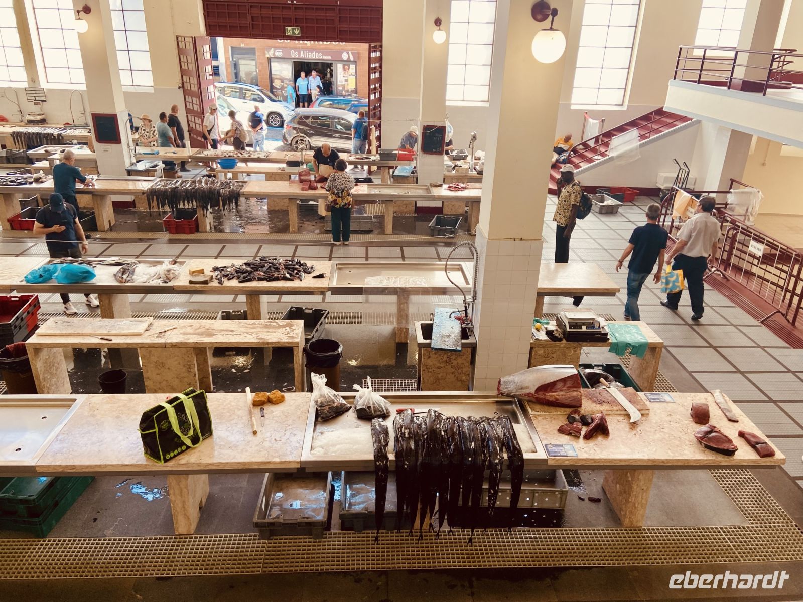 Nun sind wir gestärkt für den Besuch der quirligen Markthalle in der Stadtmitte. Auch, wenn man gar nichts kaufen will – allein der Anblick der unzähligen exotischen Früchte und der üppigen Blütenpracht ist ein Augenschmaus. Weniger attraktiv, dafür um so gruseliger ist es, die schwarzen Degenfische einmal aus der Nähe anzuschauen. Gut, dass wir sie am Vorabend schon probiert hatten.