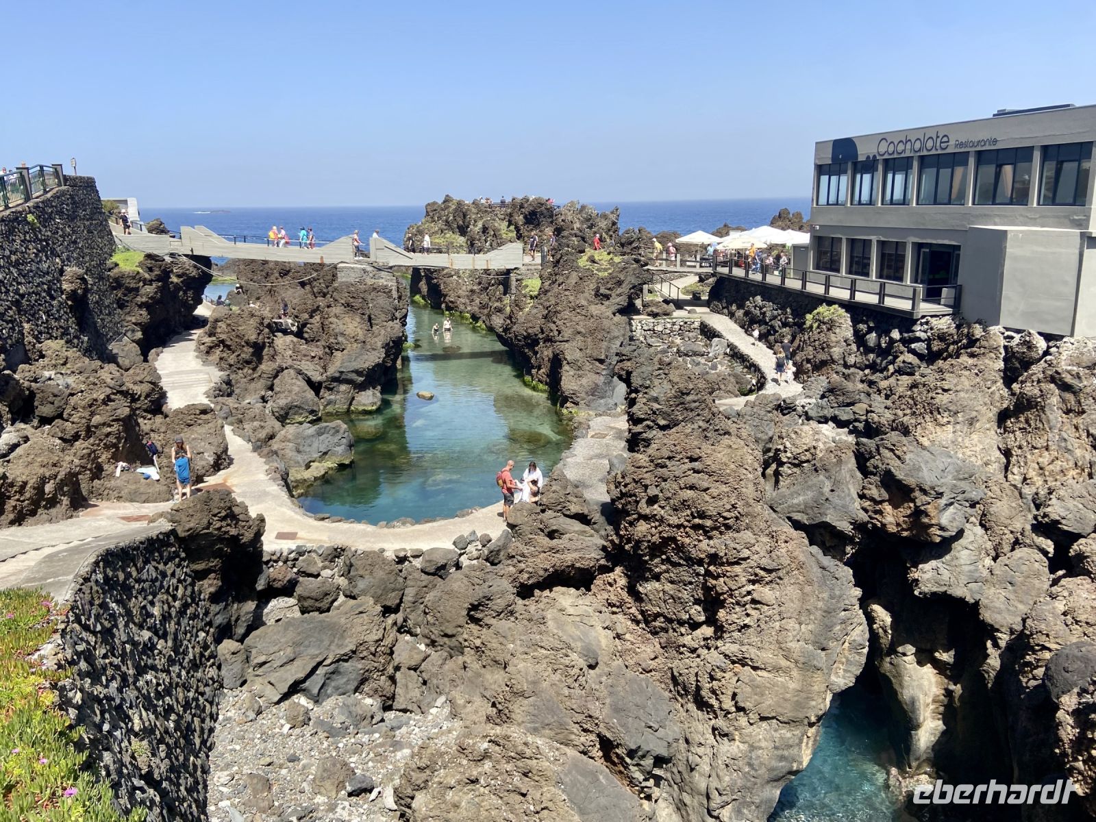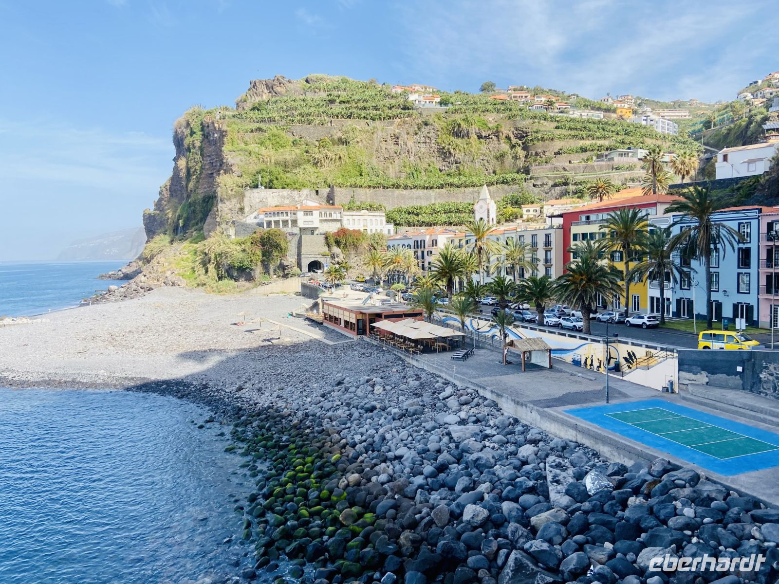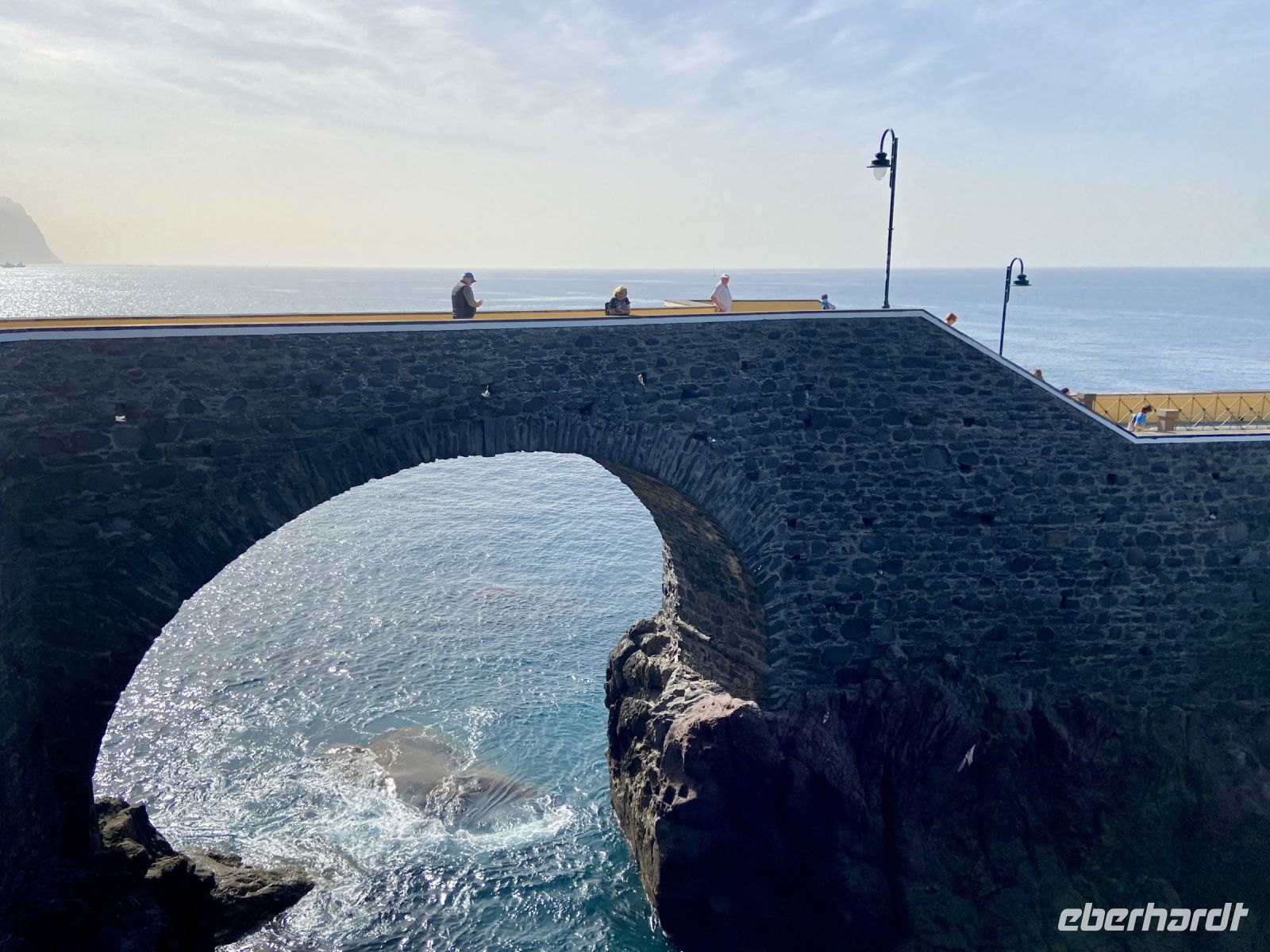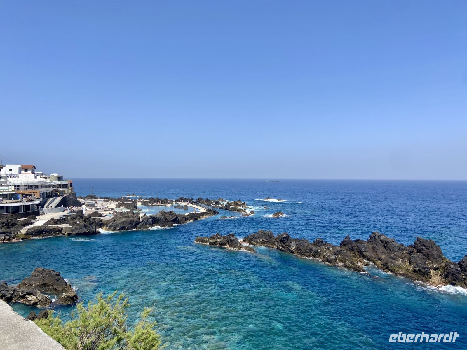 Ein neuer Tag, ein neuer Ausflug! Wir erkunden den wilden Nordwesten der Insel.?Circa 45 Minuten dauert die Fahrt nach Ribeira Brava, wo wir einen kleinen Stadtbummel bis zum Felsen an der Strandpromenade machen. Dann schlängelt sich die Straße über steile Serpentinen hinauf zur Hochebene Ebene "Paul da Serra". Geheimnisvoll anmutende dichte Wälder umgeben uns auf der Strecke und Fotomotive beglücken in Hülle und Fülle. Es geht hinab gewundenen Haarnadelkurven. Bald öffnet sich der Blick auf die Nordküste, wir halten kurz in Ribeira da Janela und genießen die Aussicht. Das lebhafte Hafenstädtchen Porto Moniz erwartet uns dann mit seinen großzügig angelegten Badebecken aus Vulkansteinen, den Lava Pools. Es gibt eine größere Anlage, die eine ist eine richtige Badeanstalt mit Eintritt, Umkleidekabinen, Terrassen zum Verweilen und die andere ist kleiner, verwinkelt, ganz natürlich und kostet keinen Eintritt. Das Wetter ist hervorragend, beide Anlagen sind geöffnet und es herrscht fröhlicher Badebetrieb. Wir machen eine längere Pause in Porto Moniz, sodass sich auch Zeit für einen Mittagsimbiss bietet.