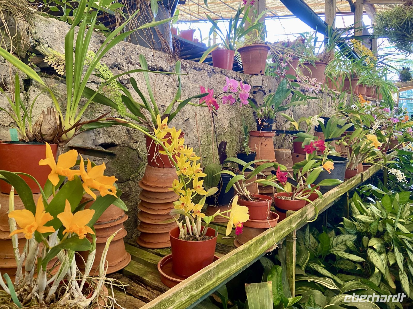 Und wieder erinnern wir uns an das Synonym Madeiras als „schwimmender Garten Europas“ zurück. Einen kompletten Vormittag widmen wir zwei traumhaften Gartenanlagen. Wir beginnen in dem Orchideen-Paradies "Quinta da Boa Vista Orchidea", das wir auf einer atemberaubend steilen und engen alten Straße, die sich durch ein beschauliches Wohnviertel windet, erreichen. Der Engländer Patrick hat die Plantage gegründet und man merkt schnell, dass die Pflanzen seine ganze Leidenschaft sind und er sie voller Stolz und mit unendlichem Fachwissen gerne den staunenden Besuchern vorstellt. Die Gewächshäuser sind erfüllt von süßem Blütenduft und die Farbenpracht scheint geradewegs zu explodieren. In sympathischem gebrochenen Deutsch erzählt Patrick uns viel Wissenswertes über das Wachstum und die Entwicklung der Pflanzen, über ihre Bestäubung durch Insekten und zeigt uns auch fleischfressende Exemplare. Nachdem wir alle unzählige Fotos gemacht hatten - denn jede Blüte scheint schöner als die andere und immer wieder entdecken wir neue Farben und Formen - geht es zum Landsitz der Familie Blandy, der "Quinta do Palheiro", malerisch auf einer Anhöhe hoch über Funchal gelegen. Die englische Familie erwarb das Anwesen 1885 und entwickelt es nun in der fünften Generation kontinuierlich weiter. Mit all seiner Pflanzenvielfalt auf über 12 Hektar gilt es mittlerweile als Pilgerstätte für Botanikliebhaber aus aller Welt. Neben den üppig angelegten Gartenanlagen zieht auch das prächtige Herrenhaus aus dem 18. Jahrhundert, die kleine Kapelle sowie das feudale Golfhotel die Blicke das Besucher auf sich. Unsere Reiseleiterin Paula führt uns über die Anlage und kann zu jeder Pflanze eine Geschichte erzählen, macht uns aufmerksam auf unscheinbare Details und entführt uns in die Welt der exotischen Gewächse.