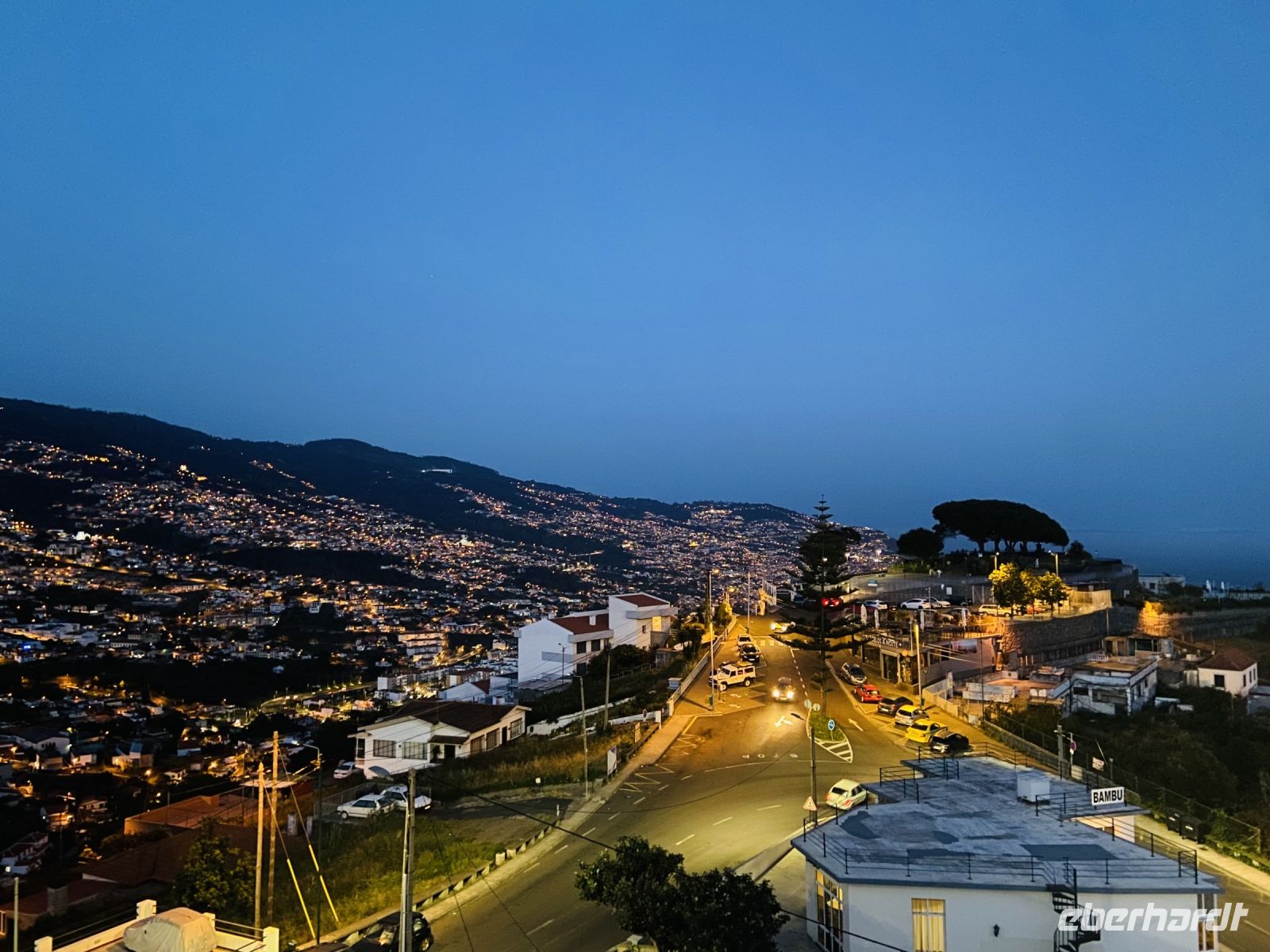 Um 18.30 Uhr treffen wir uns alle wieder in der Halle und fahren mit unserer Busfahrerin Angela zur Espetata, dem berühmten Fleischspiess Madeiras im Restaurant „Quinta Estacao" nahe am Aussichtspunkt "Pico dos Barcelos". Die Dachterrasse des Restaurants bietet einen hervorragenden Blick auf das Lichtermeer Funchals und der Kirche des "Heiligen Martin". Wir genießen das leckere, die Weine und die schöne Atmosphäre des Restaurants und gehen zum Abschluss auf die Dachterrasse, um das Lichtermeer Funchals, welches sich die Hänge hinaufzieht, zu bewundern.