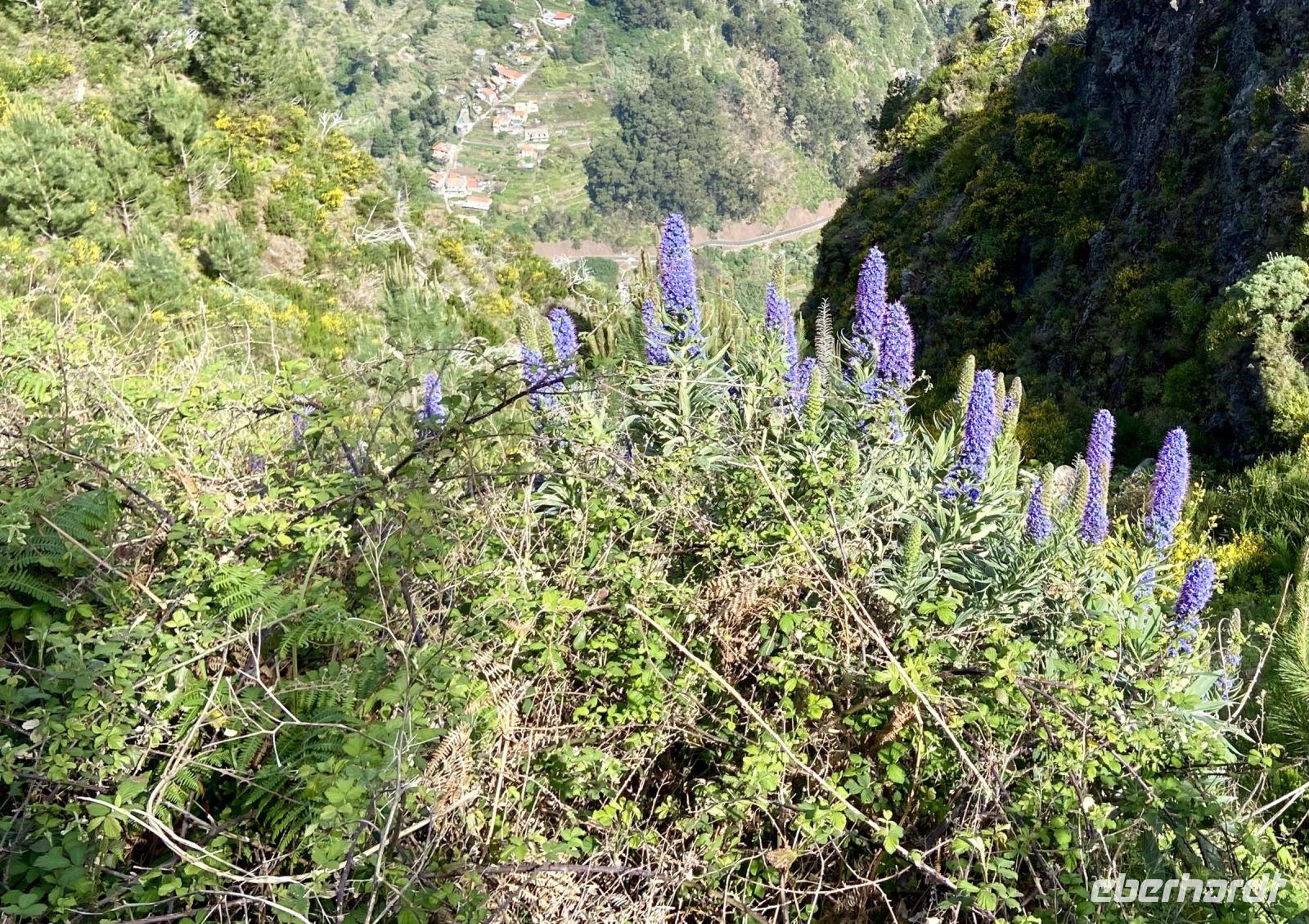 Und es steht noch mehr „Wasser“ auf dem Programm, die Weiterfahrt führt uns zum Brautschleier-Wasserfall, der ein wenig an norwegische Fjorde erinnert und zum Fotografieren einlädt.Vorher machen wir noch einen Fotostopp hoch über dem malerischen Ort Sao Vicente. Der Blick fällt auf die die Pfarrkirche "Igresia de Sao Vicente" aus dem 18. Jahrhundert und den angrenzenden alten Friedhof mit seinen alten Grabtafeln.