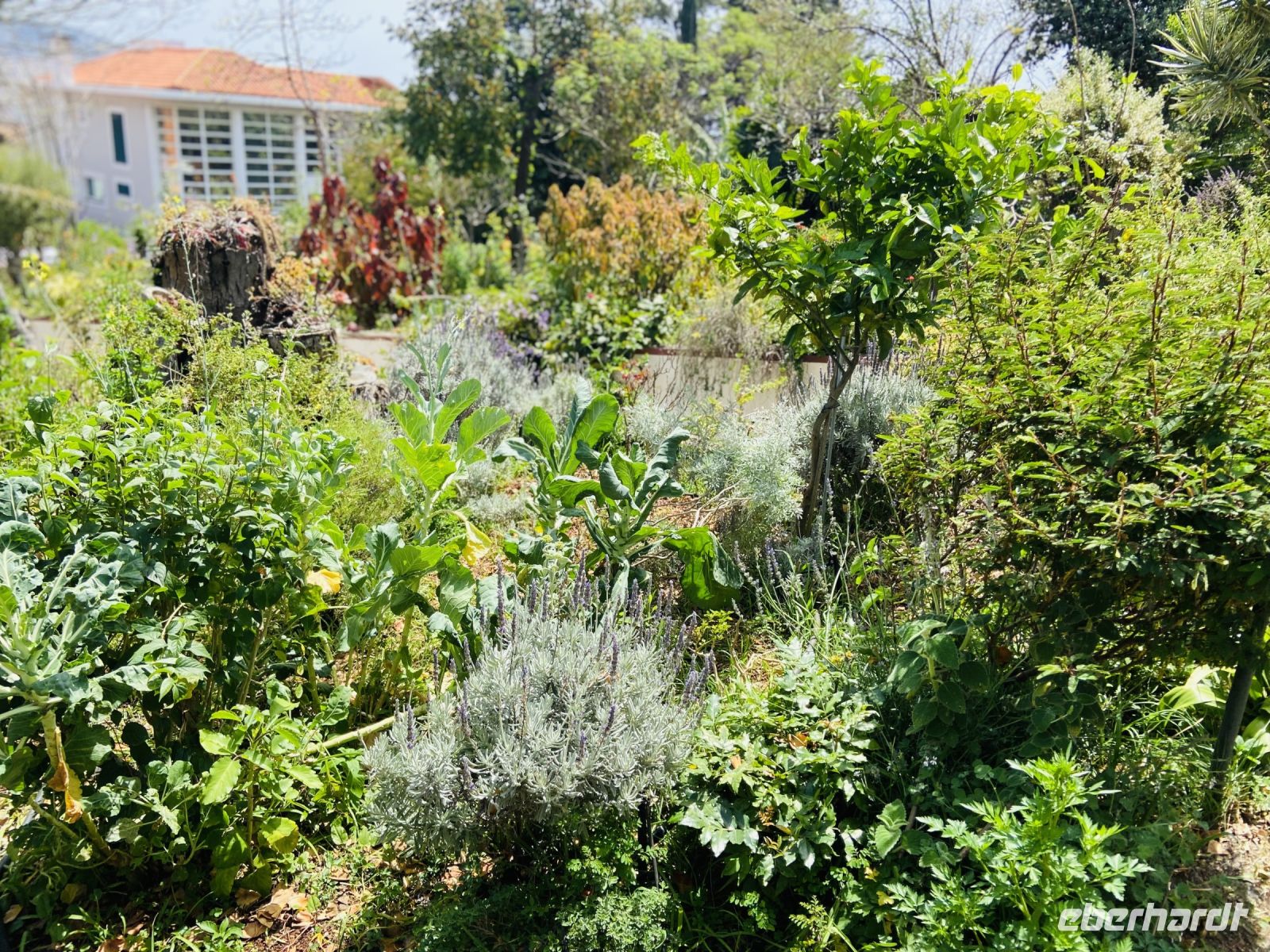 Über dieselbe atemberaubende Strecke fahren wir zurück nach Funchal, letzte Station heute ist der Kräutergarten von Esmeralda. Wir staunen nicht schlecht, als wir den liebevoll vorbereiteten Imbiss aus selbstgemachtem Süßkartoffelbrot mit Apfel-Chiligelee, Thymiankuchen, Ingwertee und Maracujalimonade sehen. Frisch gestärkt folgen wir Esmeralda bei der Führung durch ihr Kräuterparadies und sie erzählt uns viele Geschichten aus der Welt der Heilpflanzen.