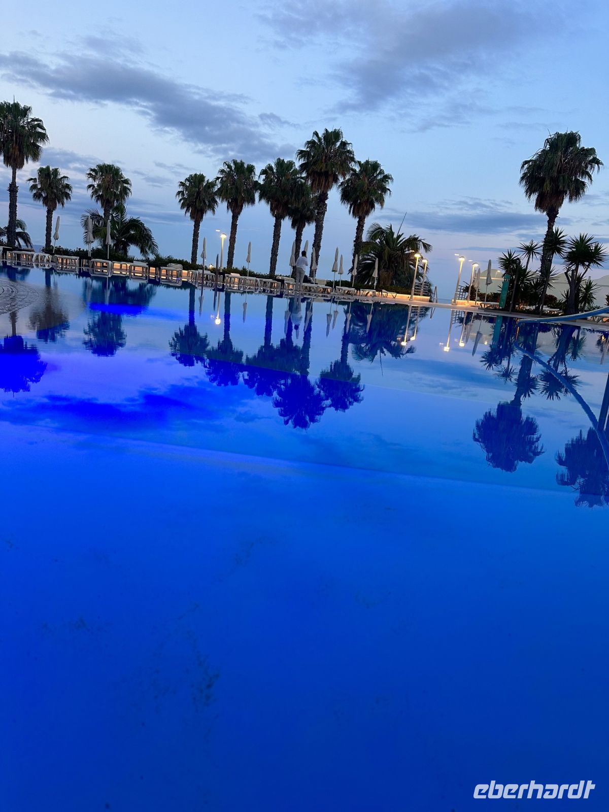 Zurück im Hotel nutzen manche Reisegäste gleich die Gelegenheit im großen Pool zu schwimmen, denn wir haben uns schon wieder in der Gruppe zum Abendessen verabredet. Nachdem wir heute schon viel gelaufen sind, entscheiden wir uns für ein Restaurant an der Meerespromenade nicht weit entfernt vom Hotel.