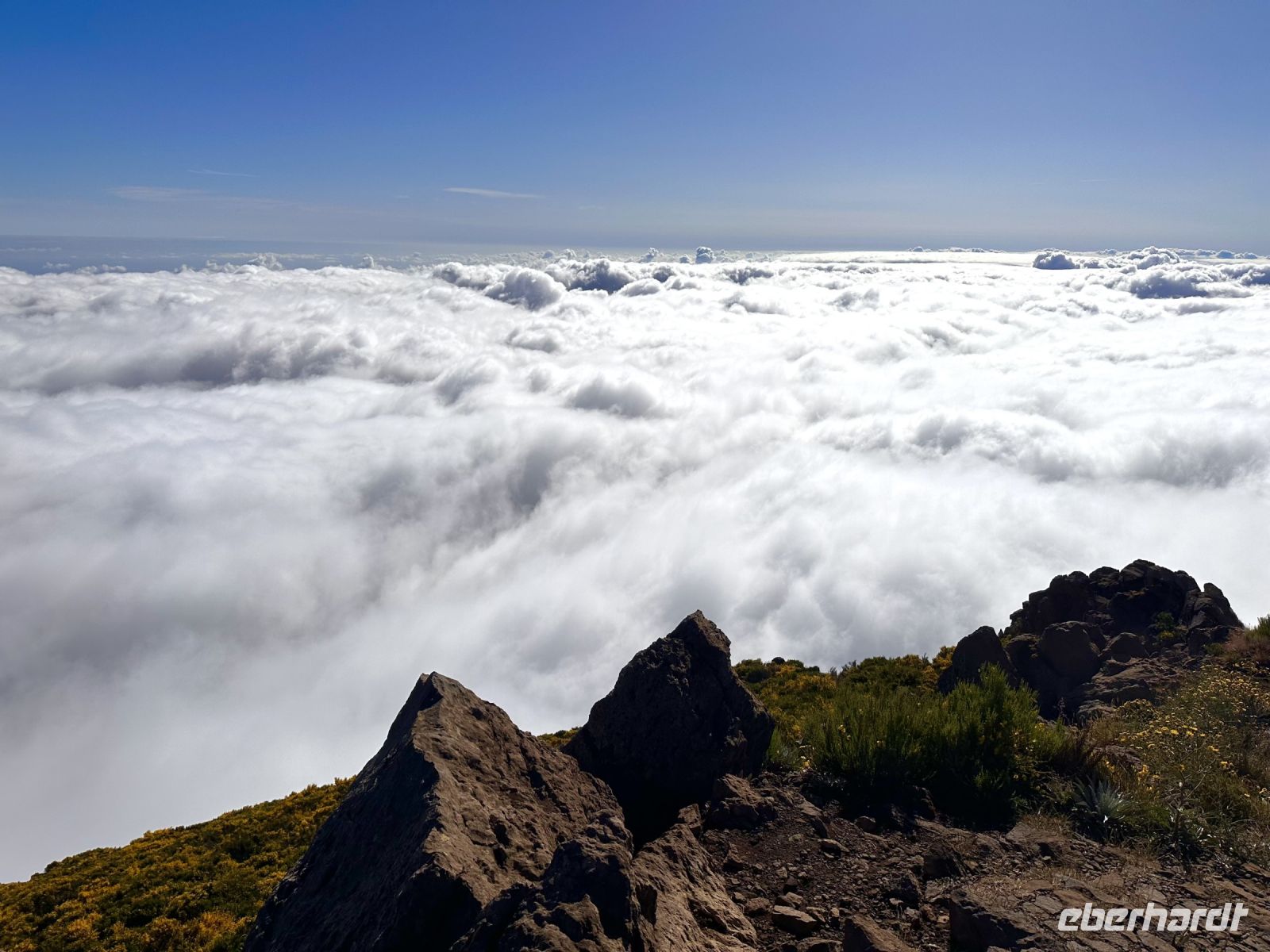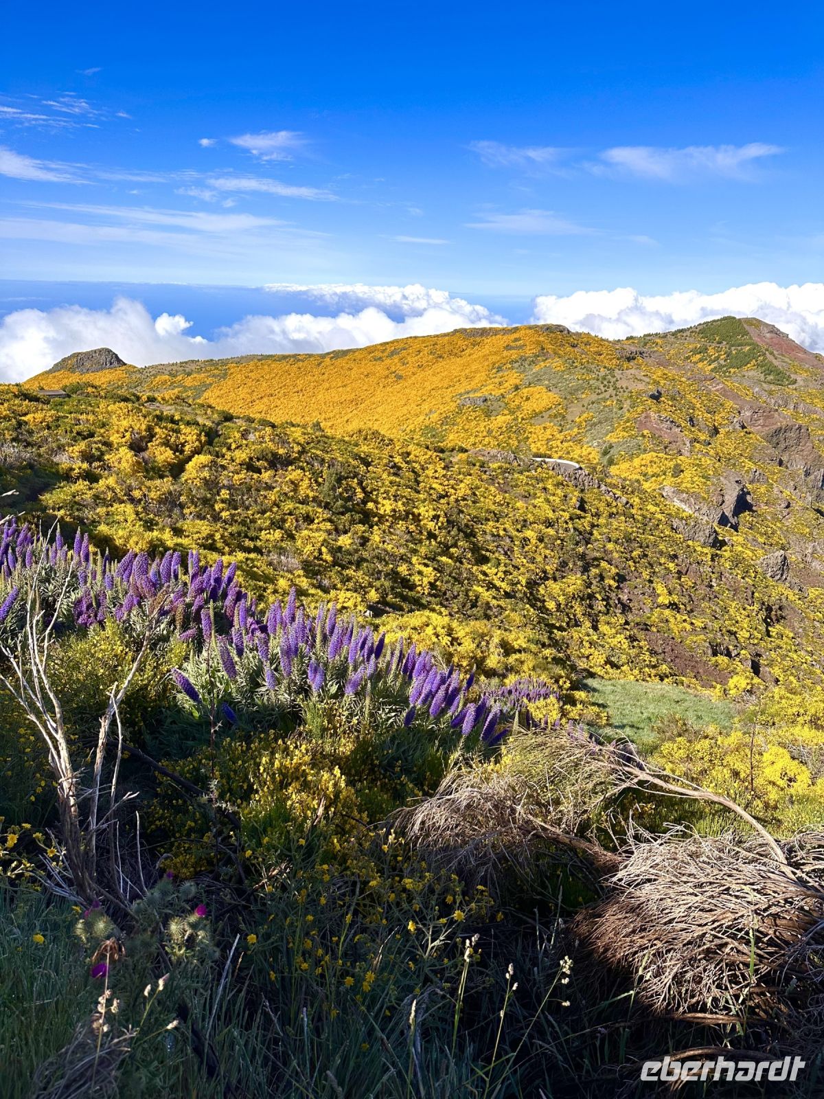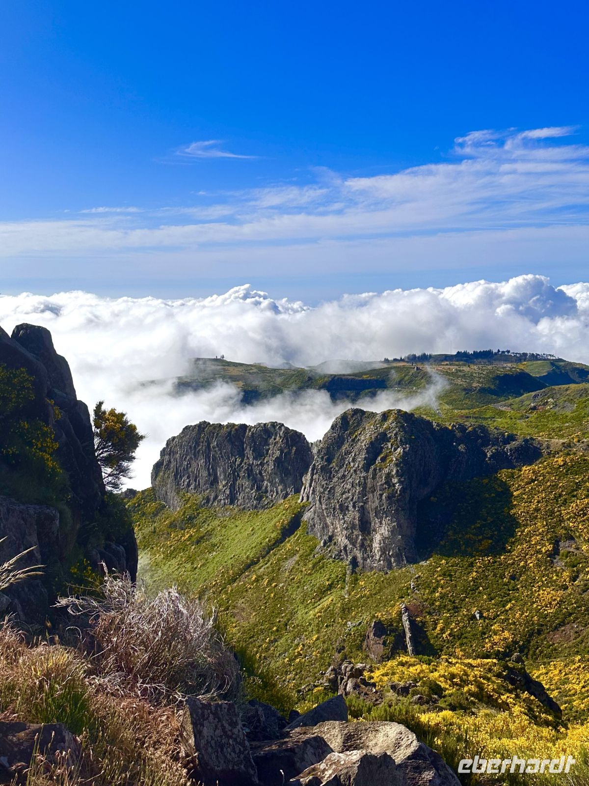 Wir starten wieder gestärkt in den Tag und fahren direkt auf Pico do Areiro. Auf dem Weg dahin sehen wir riesige Berge bedenkt mit leuchtend gelb blühendem Ginster. Es ist einfach ein herrlicher Anblick. Angekommen auf dem Pico erwartet und strahlendes Wetter und strömen in alle Richtungen aus da wir die ganze Bergspitze von allen Seiten bewundern wollen. Teilweise sind wir über den Wolken, mitten im morgendlichen Sonnenschein. Dieser Ausflug hat die ganze Gruppe sehr begeistert.
