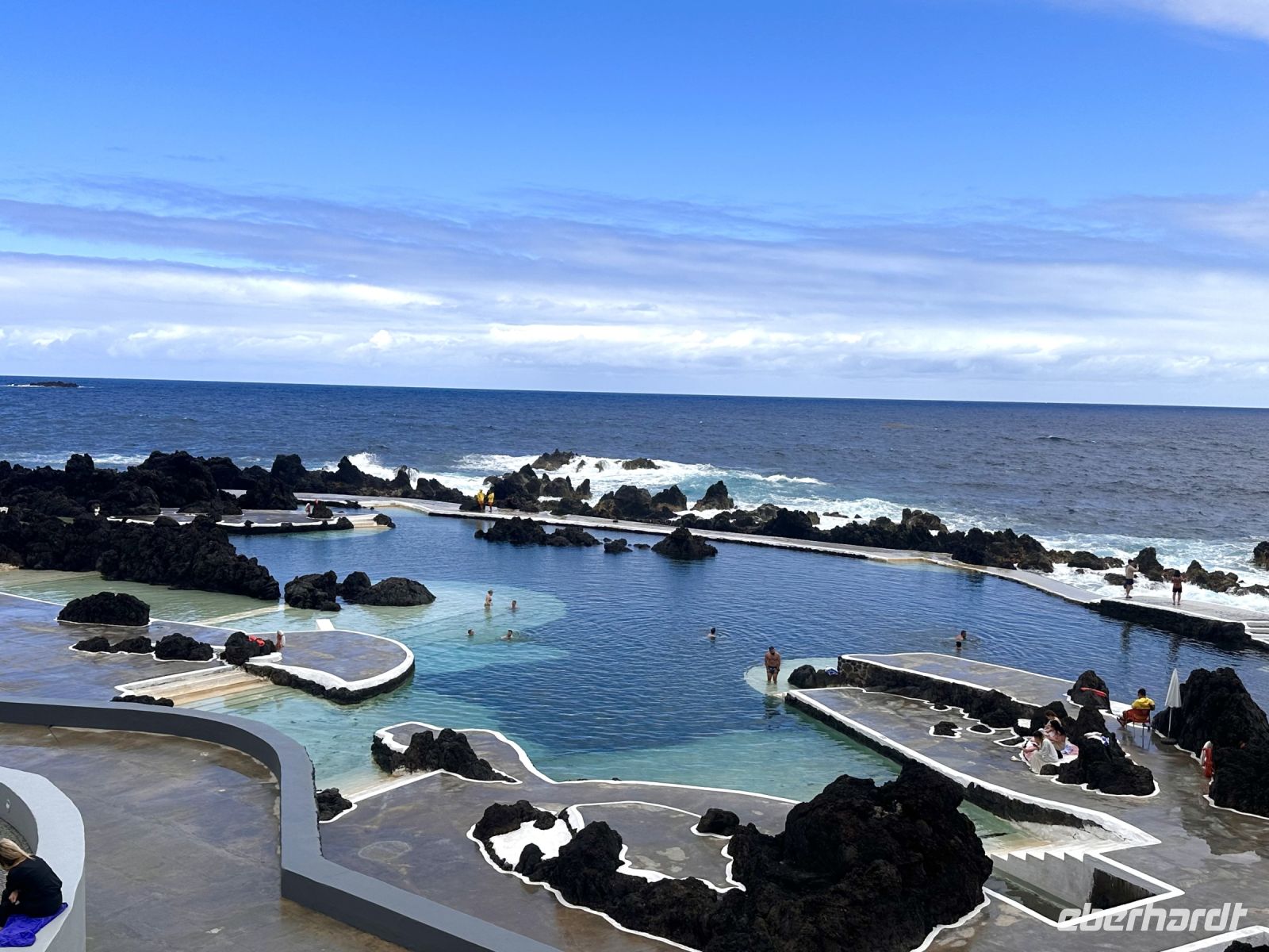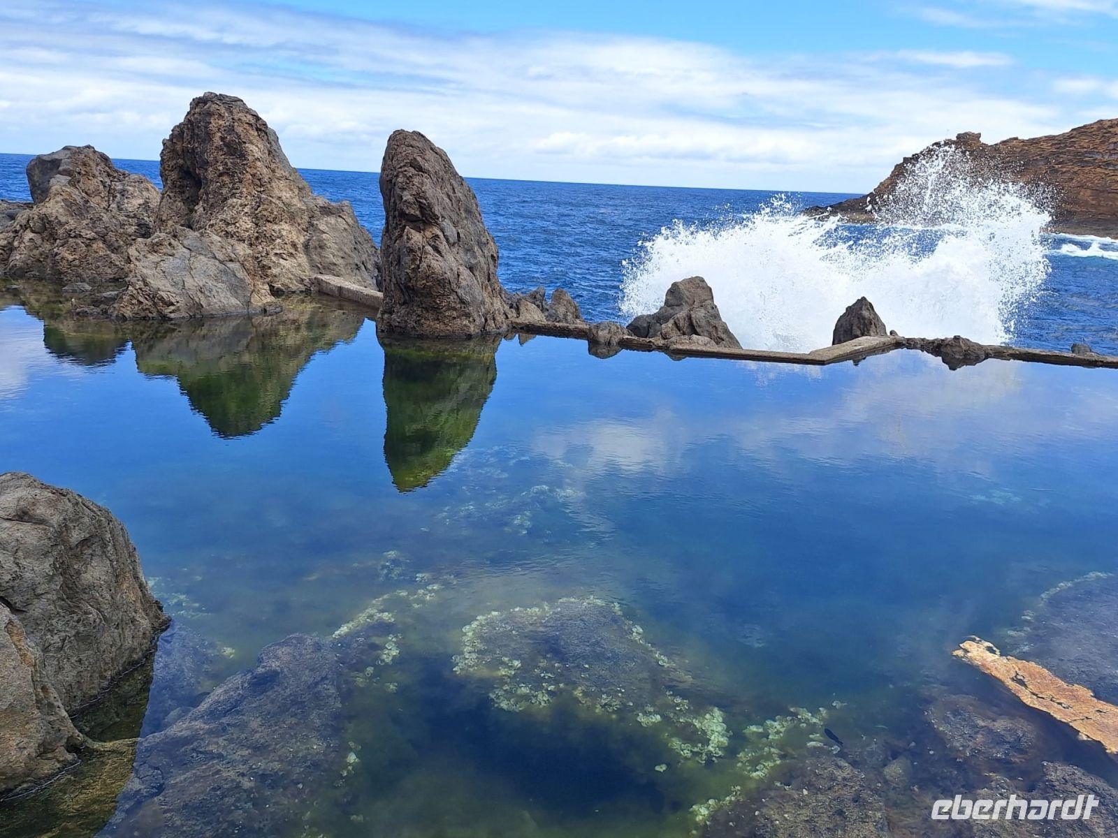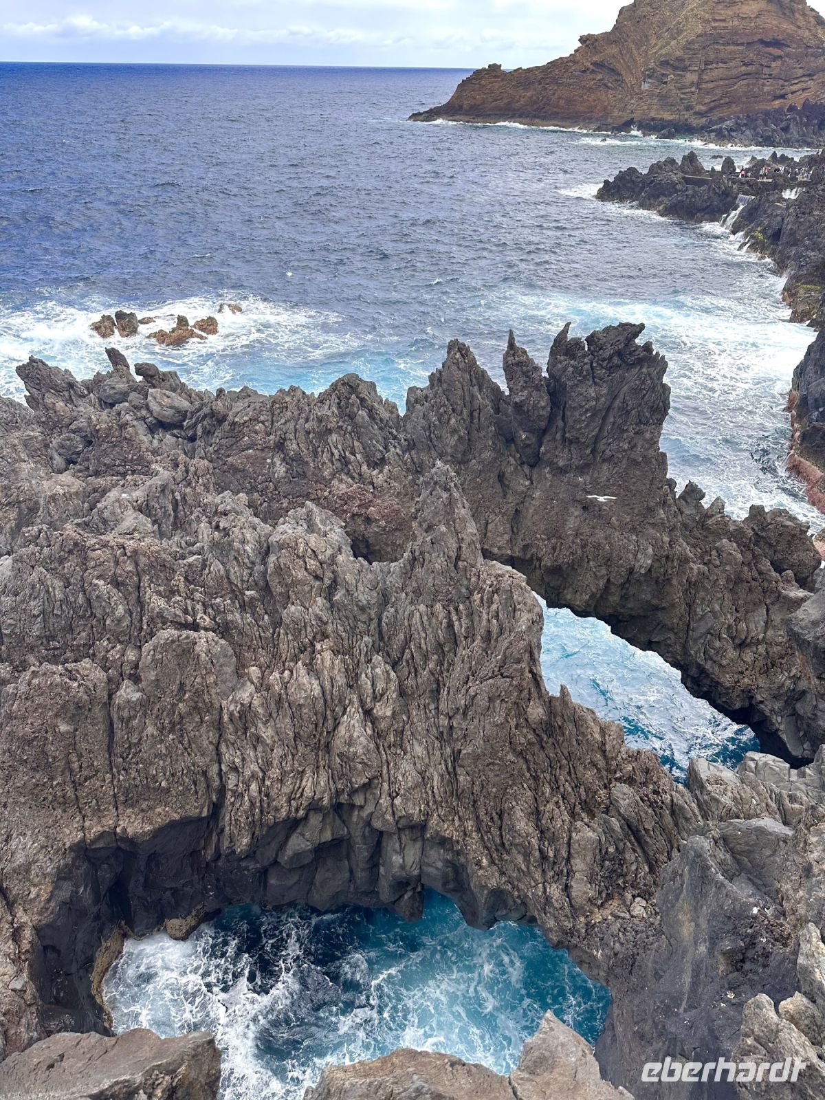 In Porto Moniz angekommen ist es noch bedeckt und leicht frisch, aber so wie wir Sonnenkinder aus dem Bus steigen schlägt das Wetter um in herrlichen Sonnenschein und wir verbringen eine tolle Zeit an der Promenade, erkunden die spektakulären Naturschwimmbecken und nutzen die tolle Kulisse für viele schöne Fotos und Videos.