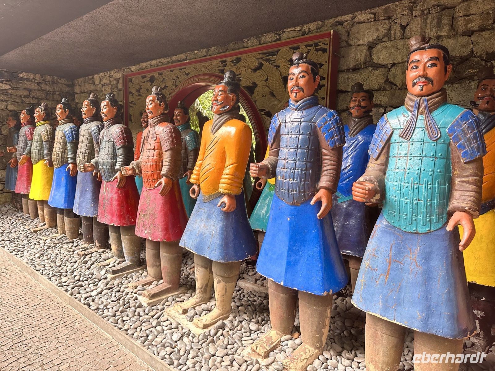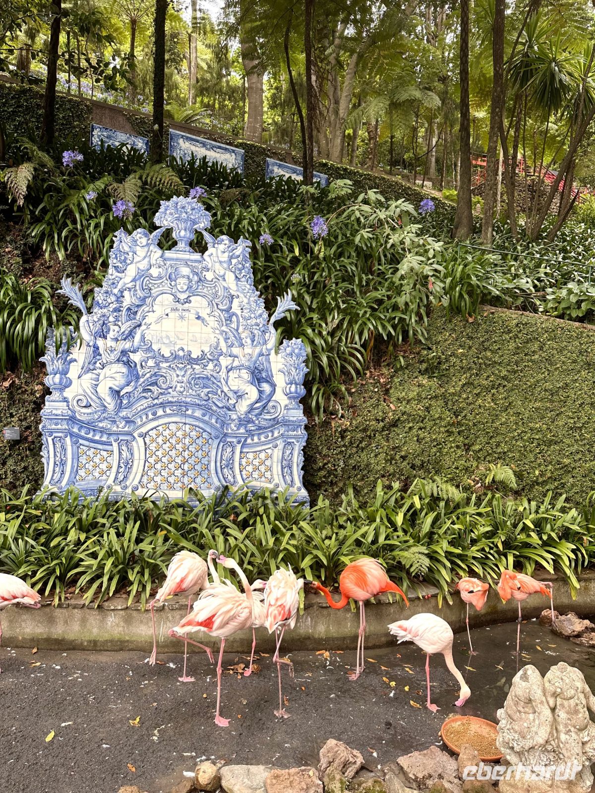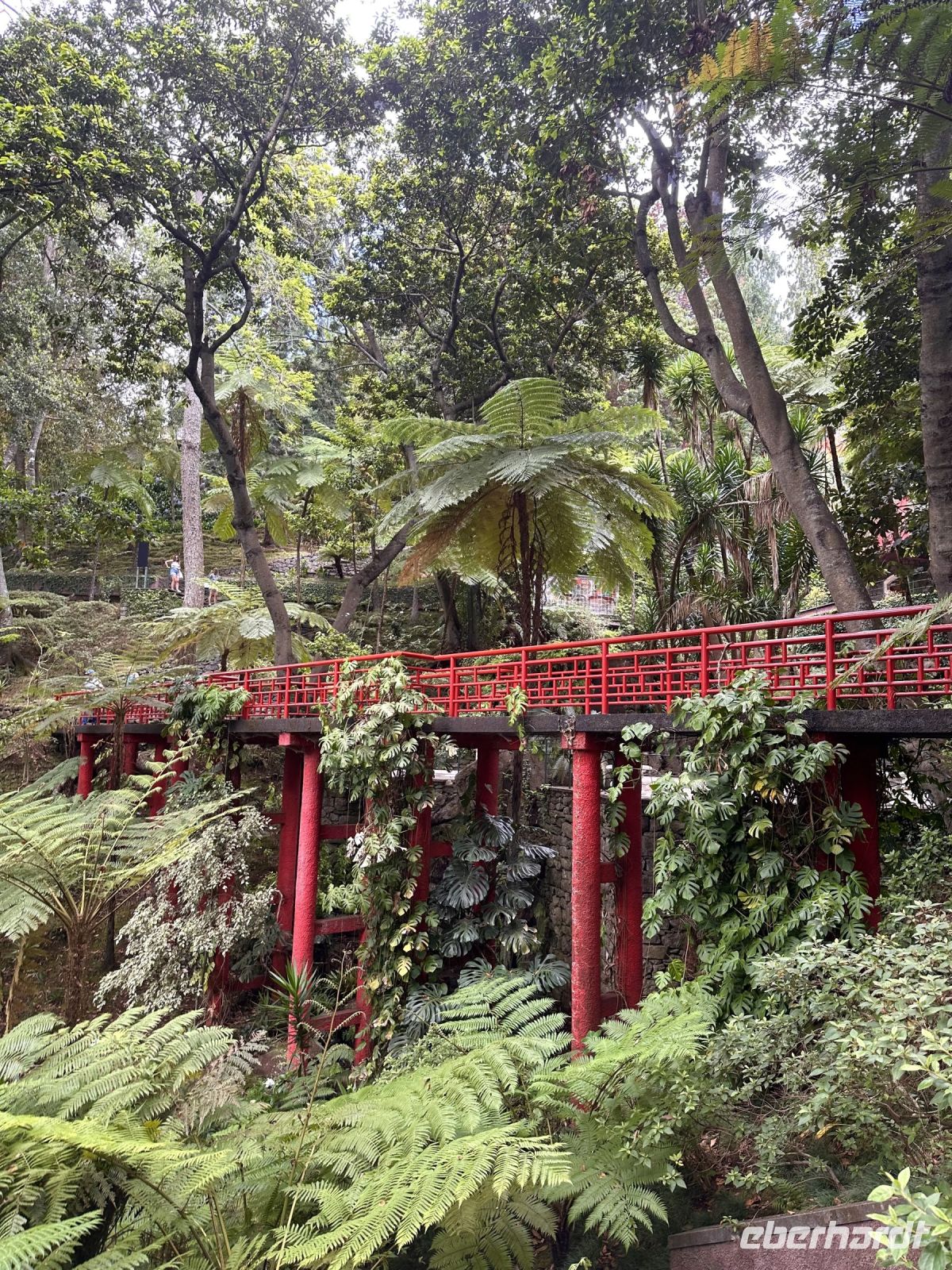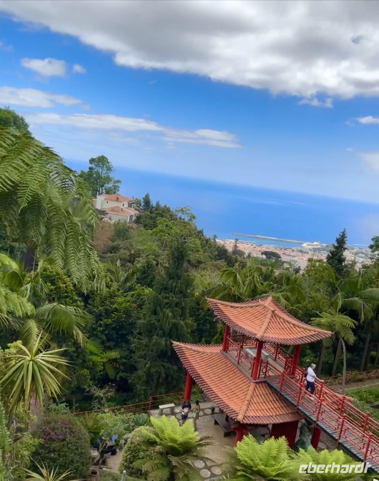 Anschließend treffen wir uns mit dem Rest der Reisegruppe in Funchal am Hafen. Denn wir wollen gemeinsam mit der Seilbahn hoch nach Monte fahren. Wir genießen den tollen Ausblick über den Dächern der Stadt und freuen uns bereits auf den Besuch des Monte Palace Tropical Garden oben an der Spitze. In dem Park sind viele chinesische und japanische Elemente mit eingebaut sind ein sehr schönes Gesamtbild ergeben.