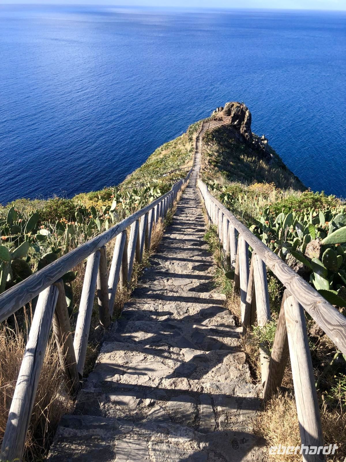 Gestärkt und erholt sind wir nun auch mutig genug, die 580 Meter hohen Steilklippen zu erkunden. Bei dieser Höhe entscheiden wir uns natürlich für den Bus nach ganz oben. Dieser fährt uns bis zur Spitze. Nun heißt es Freundschaft schließen mit der Höhenangst. Die Aussichtsplattform besteht teilweise aus einem gläsernen Boden 580 Meter über dem Mehrspiegel – da werden die Knie schon etwas weich.