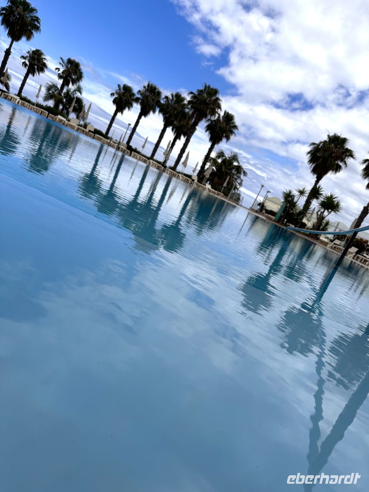 Zurück im Hotel bleibt uns gar nicht so viel Zeit, denn wir haben heute noch mehr vor. Manche hüpfen noch in den Pool und ziehen fix ihre Bahnen – denn der schöne Pool ist auch sehr einladend.