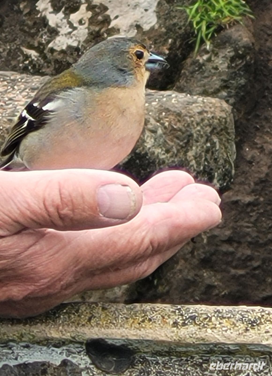 dem Boden und einer für die Naturschönheiten" ein. Am Aussichtspunkt erwartete uns eine muntere handzahme Schar Buchfinken, die sich von den Besuchern füttern ließen.