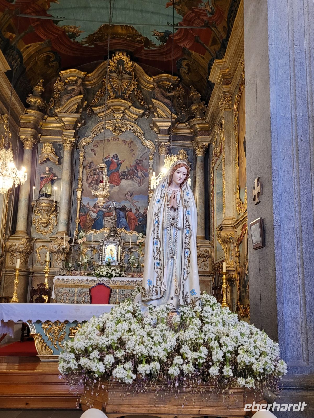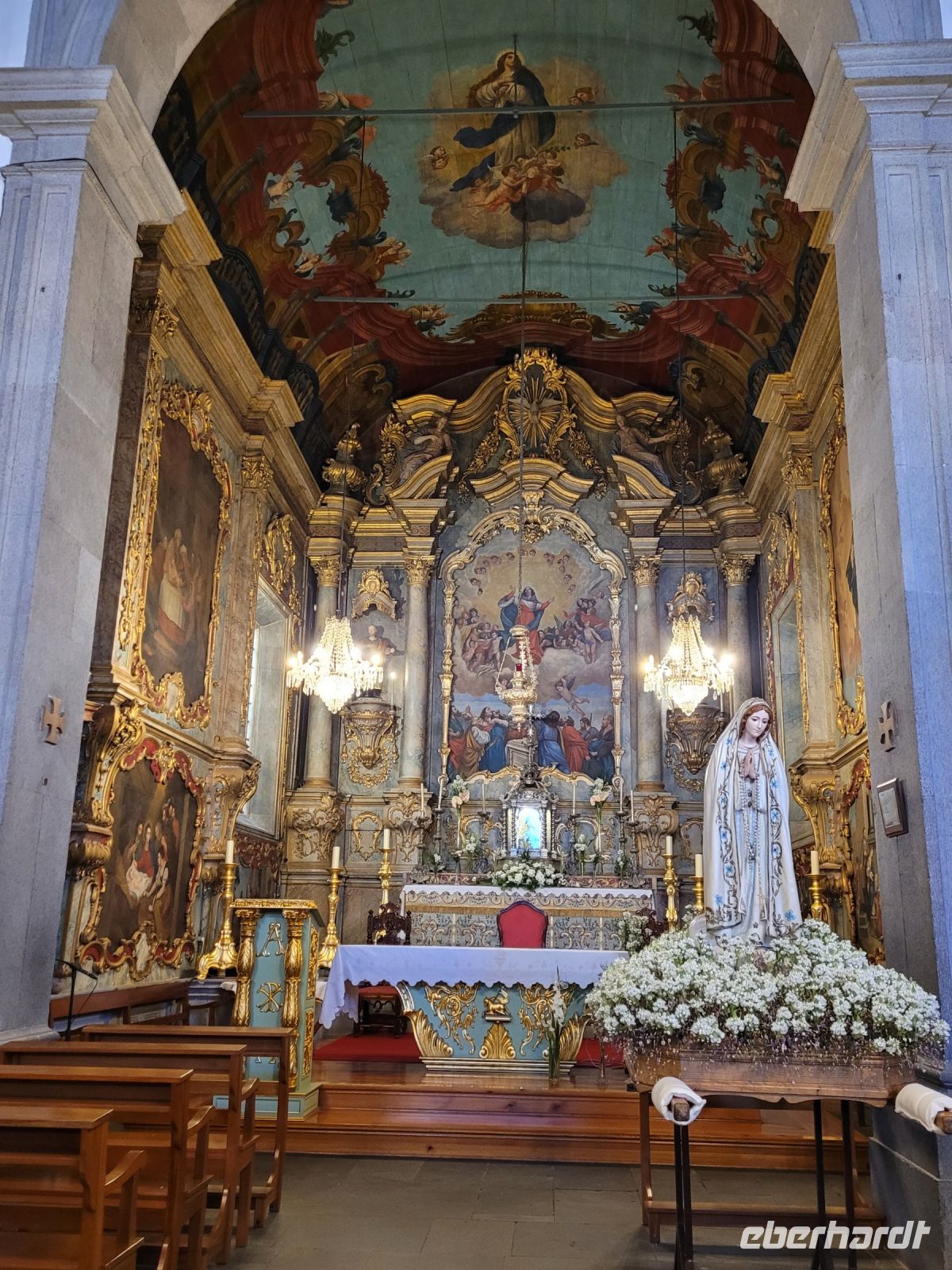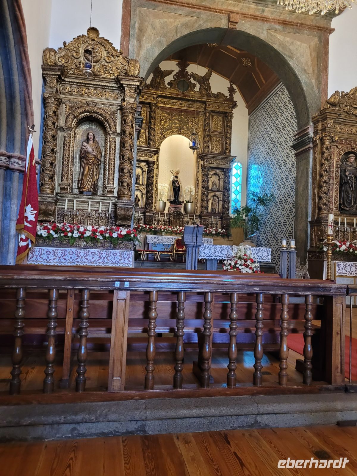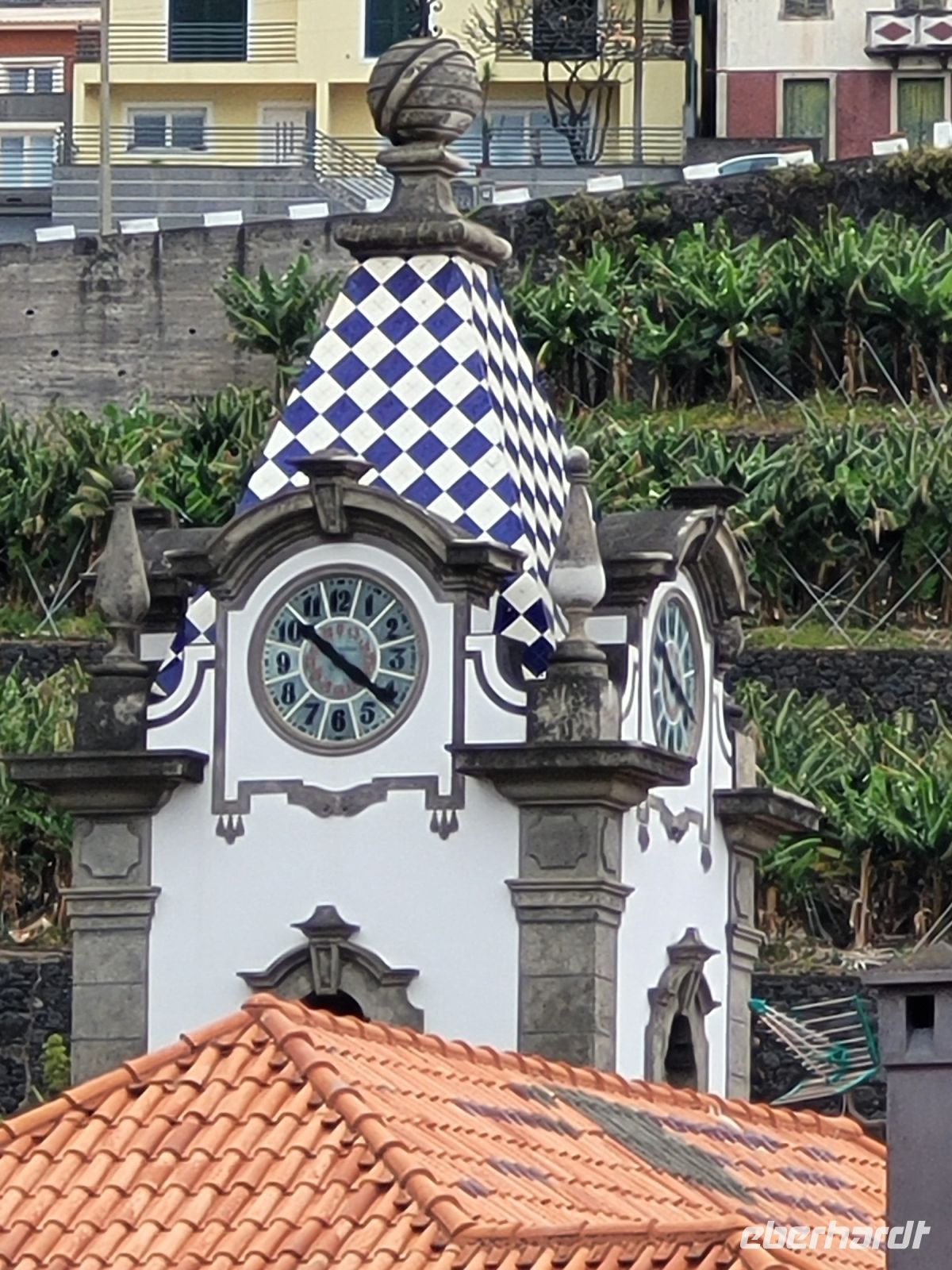 hinterlassen. Sie gründete die Stickereimanufaktur auf der Insel. Eine der ältesten Kirchen Madeiras Igreja Matriz de São Bento steht am öffentlichen zentralen Platz, der wunderschön mit Mosaiken gepflastert ist. Hier befindet sich dort eine Gedenktafel, die an ein Ereignis in den 1940 erinnert, als der Pfarrer der Gemeinde bei einem schweren Sturm ein Kreuz ins Meer warf, um die Stadt vor Unheil und Überschwemmungen zu bewahren. Seitdem haben sich dort keine größeren Unglücke oder Katastrophen ereignet. Daraufhin begann man mit dem Bau der Kirche im gotischen Stil. Der Patron der Kirche wurde der Heilige Bernhard. Der Kirchturm ist mit blauen Fliesen verziert und zeigt eine Armillarsphäre, das Herrschaftszeichen König Dom Manuels I. von Portugal.