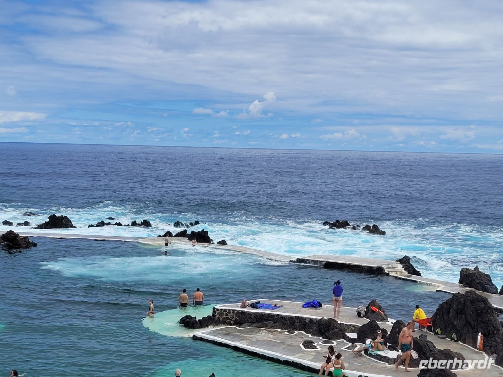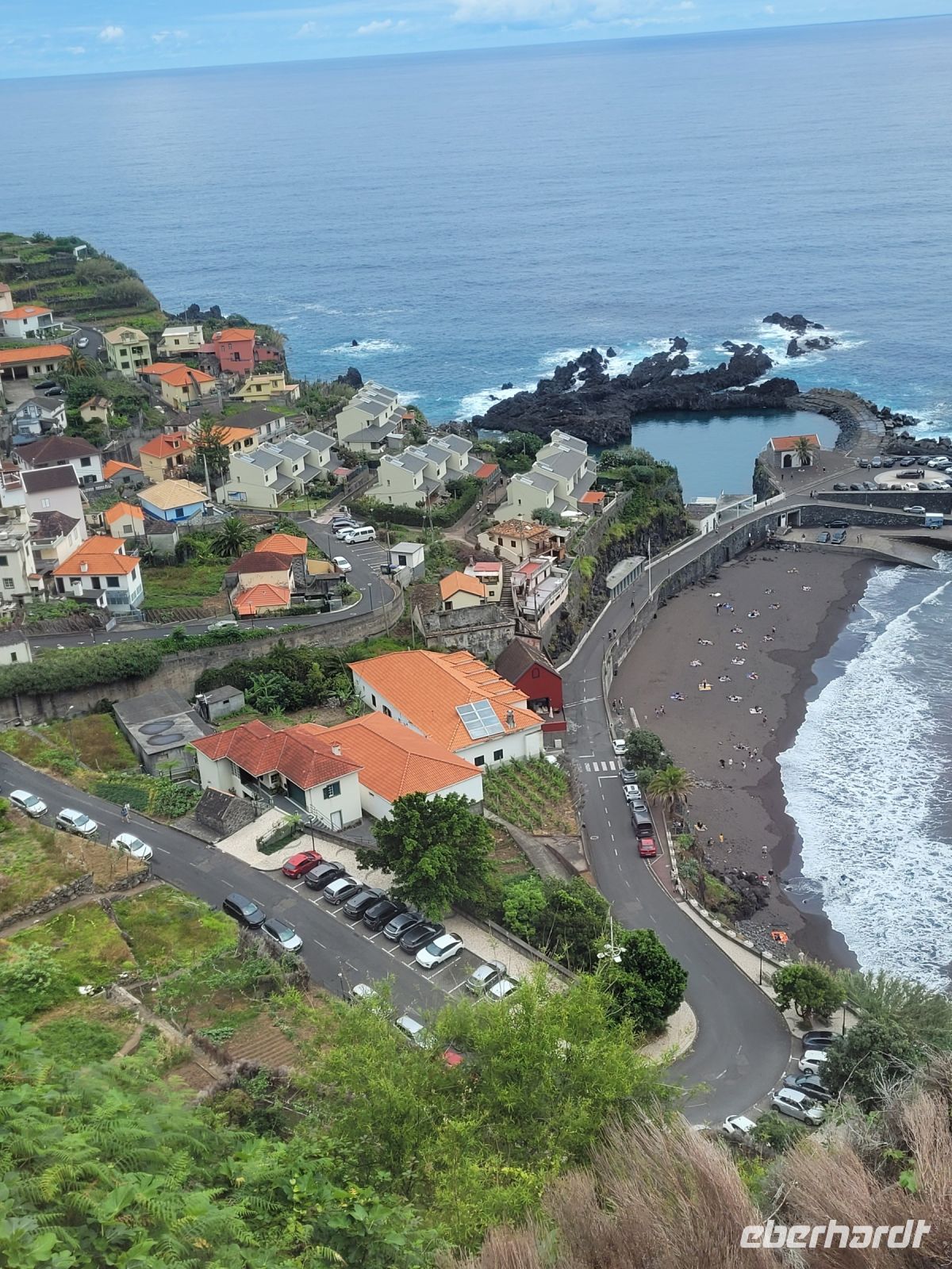 Über den Encumeada-Pass gelangten wir auf die Hochebene Paúl da Serra (1.400 m) bei klarer Sicht nach Porto Moniz den Norden der Insel. Den Aufenthalt nutzten wir für Mittagessen, Spaziergang und ein Bad im natürlichen Meeresschwimmbecken