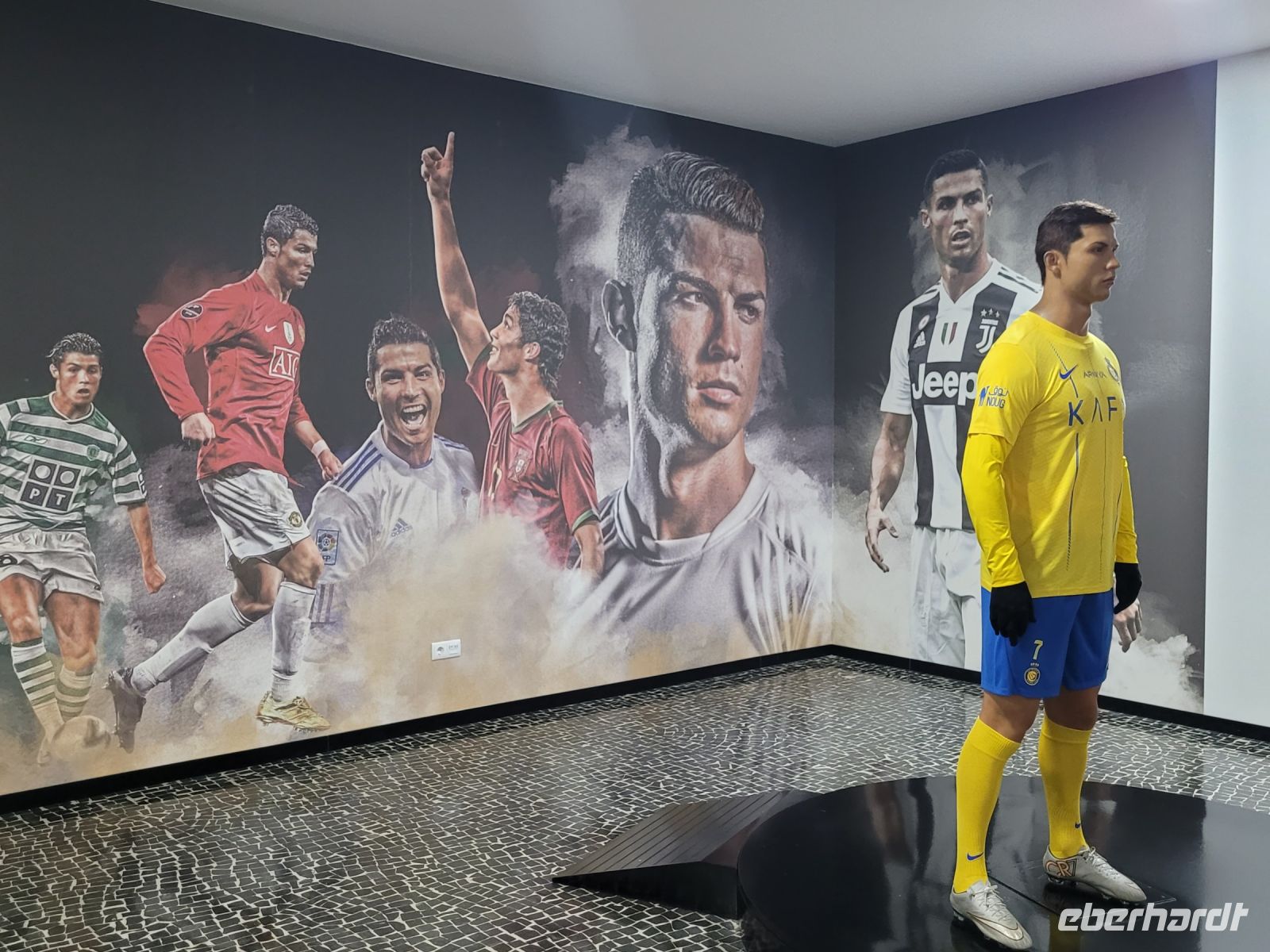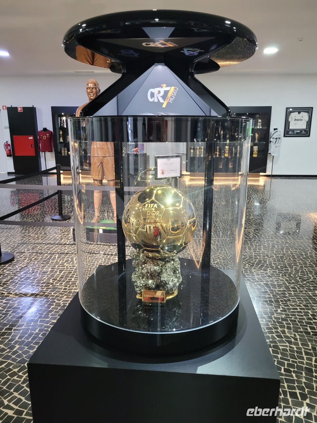 Um den letzten Urlaubsstunden auf der Insel zu genießen, hatte unsere RBG Steffi den Hotelshuttel in die Landeshauptstadt gebucht. Ausstieg und Treff für die Rückfahrt zum Hotel war der Hafen von Funchal. Ob man sich einfach von der Menschenmenge treiben lies oder noch einmal die Markthalle besuchte oder das weltbekannte Museum R7 oder die Stadt oder, oder, oder… Wir wählten das Museum des wohl bekanntesten Fußballspielers. Die ersten Seiten von Cristiano Ronaldos Geschichte, wurden in den Straßen von Madeira geschrieben. Deshalb wählte der Fußballstar seine Heimatstadt Funchal, um dort das CR7 Museum einzurichten: ein Ort, an dem seine Karriere dargestellt wird. Die am 15. Dezember 2013 eröffnete Ausstellungsfläche beträgt 400 m². Dort kann man einige der berühmtesten Trophäen aus der Karriere des Fußballers bewundern. Das gilt für seine vier Goldenen Schuhe (2007/08, 2010/11, 2013/14 und 2014/15) und natürlich für die fünf Goldenen Bälle, die er bereits gewonnen hat (2008, 2013, 2014, 2016 und 2017). Das CR7 Museum bietet die Möglichkeit, sich anhand von Fotos, Videos, interaktiven Inhalten und mehr als hundert individuellen und kollektiven Trophäen, die er im Dienste der Nationalmannschaft und der Vereine Andorinha (Madeira), Nacional (Madeira), Sporting (Lissabon), Manchester United (Vereinigtes Königreich), Real Madrid (Spanien) und Juventus (Italien) gewonnen hat. Vor dem CR7 Museum gibt es auch eine Wachsstatue von dem Star und wir nutzten die Gelegenheit zu einem Foto. Mit dem öffentlichen Linienbus ging es zurück zum Four View Oasis, wo unsere Koffer im Gepäckraum warteten. Ein Transfer brachte uns zum Flughafen und mit der Condor DE1579 FNC=>LEJ zurück in die Heimat. „adeus- Blumeninsel im Atlantic"