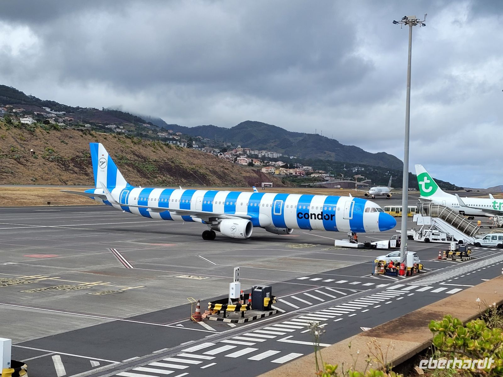 Die Condor DE1578 LEJ=> FNC startete pünktlich und 17.10 Ortszeit (1h Uhren zurückstellen) landeten wir auf einer der zehn spektakulärsten Landebahnen der Welt.