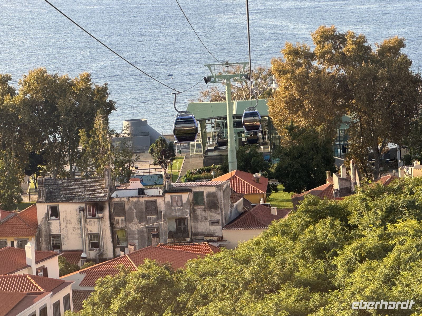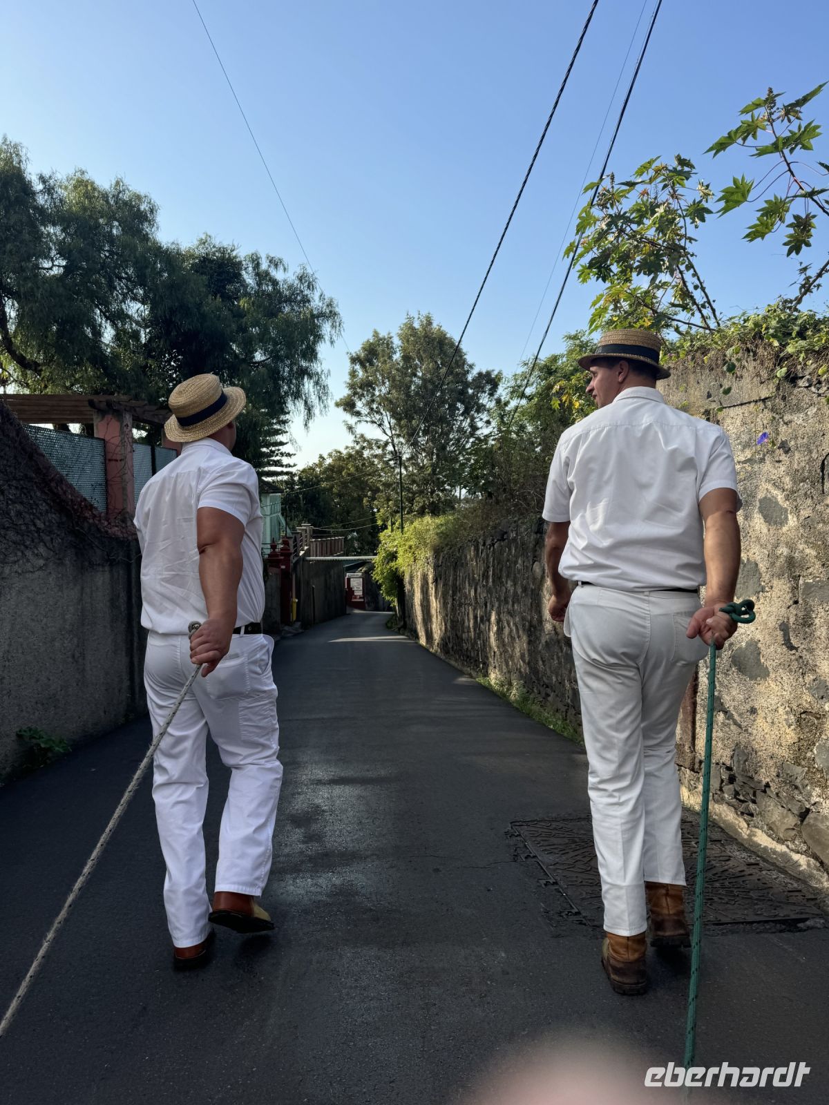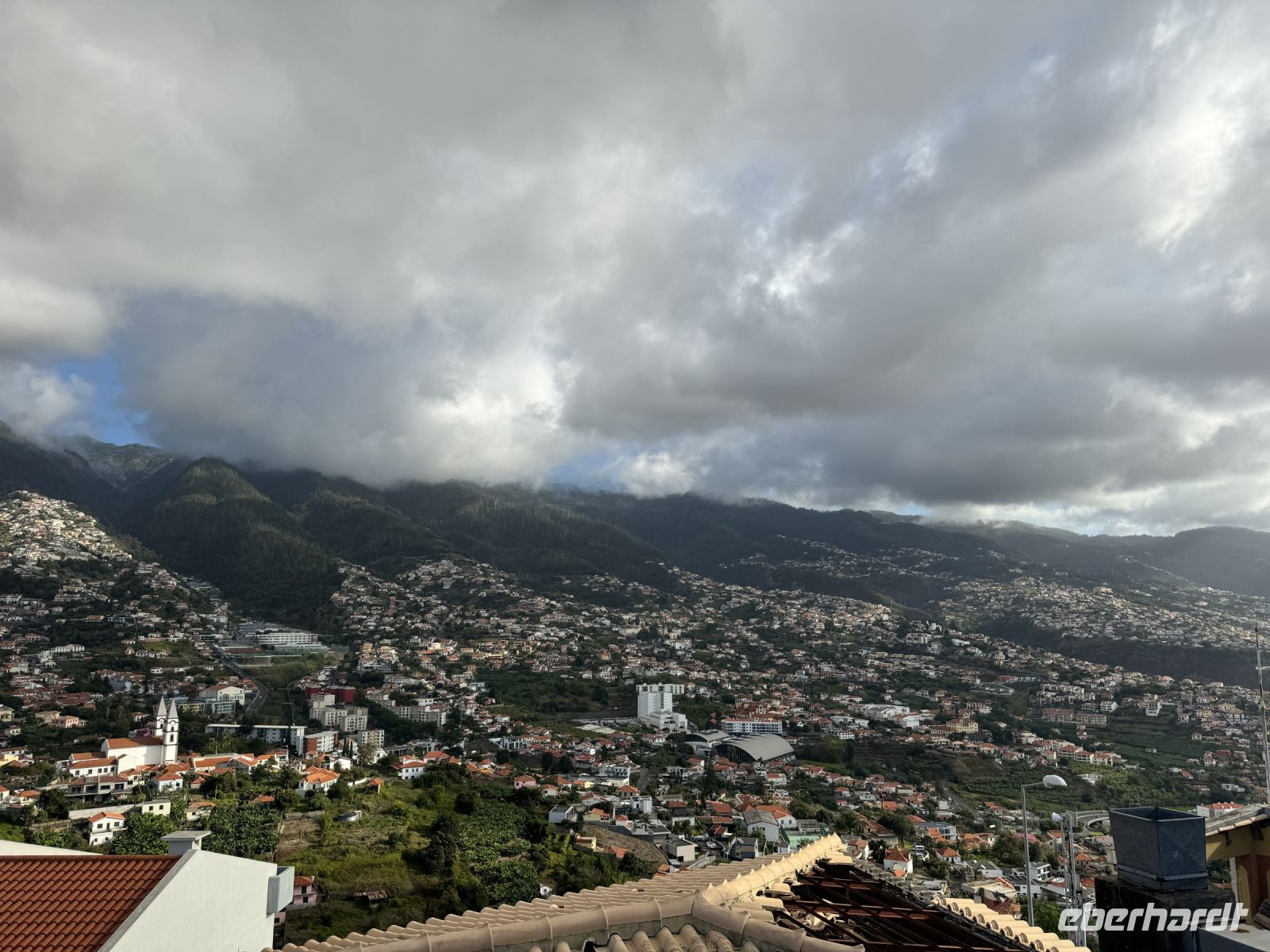 Weiter geht es mit einer abenteuerlichen Schlittenfahrt talabwärts. Aufgrund des steilen Geländes können wir auf dem Rückweg mit einem Korbschlitten, dem Carro de cesto genannten Kufenschlitten, den asphaltierten Weg Caminho do Monte bis an den oberen Stadtrand von Funchal herunterrutschen. Die ursprünglich vier Kilometer lange Strecke wurde auf zwei Kilometer verkürzt. Die Korbschlitten, die über keinerlei Lenkung oder Bremsen verfügen, werden von zwei in der traditionellen weißen Tracht gekleideten Schlittenlenkern gesteuert und durch Zurückhalten oder Querstellen gebremst. Die Anschieber, die die Korbschlitten begleiten, tragen Schuhe mit Gummisohlen, die sie als Bremsen auf den steilen Straßen benutzen. Auf der Straße herrscht auch Autoverkehr, heute sind aber kaum Autos unterwegs und die Autofahrer respektieren die Korbschlitten. Die Geschichte dieser Monte-Korbschlittenfahrten geht auf das Jahr 1890 zurück. Damals war es die einzige Möglichkeit, den Berg hinunterzukommen, außer man ging zu Fuß. Seitdem ist dieses Verkehrsmittel zu einer unverzichtbaren Touristenattraktion auf der Insel Madeira geworden. Die Korbschlittenfahrt endet etwa auf halbem Weg nach Funchal, in Livramento, von wo uns Paolo wieder mit dem Bus abholt und wir unsere Exkursion zum Nonnental über den Pico dos Barcelos fortsetzen. Er befindet sich in der Gemeinde Santo António, der Heimat des Fußballvereins „Andorinha“, der die Karriere von Cristiano Ronaldo begründete. Mit seinen 355 Metern über dem Meeresspiegel bietet uns dieser Aussichtspunkt die Möglichkeit, in aller Ruhe auf die Stadt Funchal zu blicken, insbesondere auf ihre Bucht. Bei klarer Sicht können wir von hier aus sogar die Ilhas Desertas sehen, eine Gruppe von drei kleinen Vulkaninseln: Ilhéu Chão, Deserta Grande und Bugio. Wir erleben hierbei einen herrlichen und unvergesslichen Panoramablick.