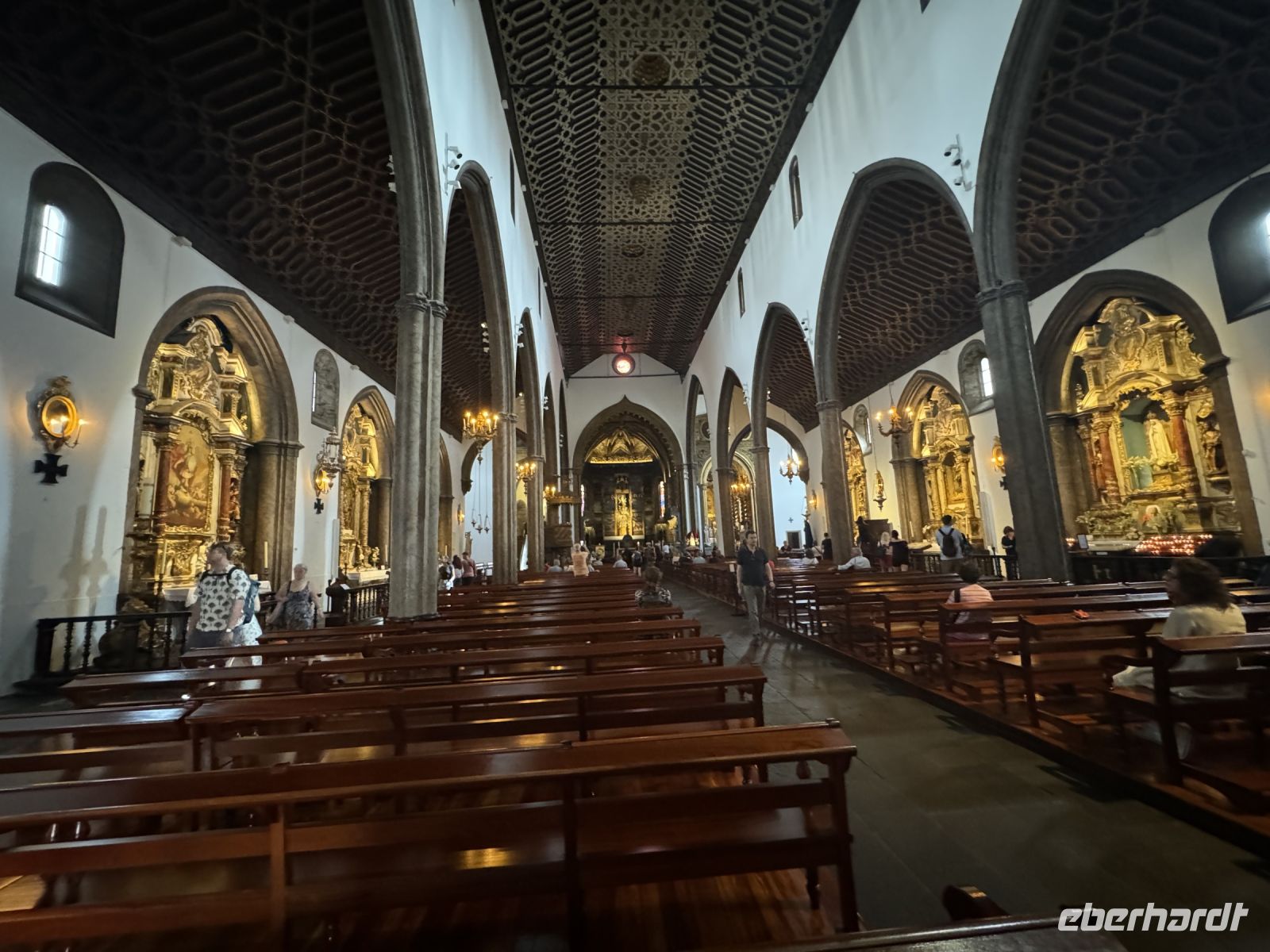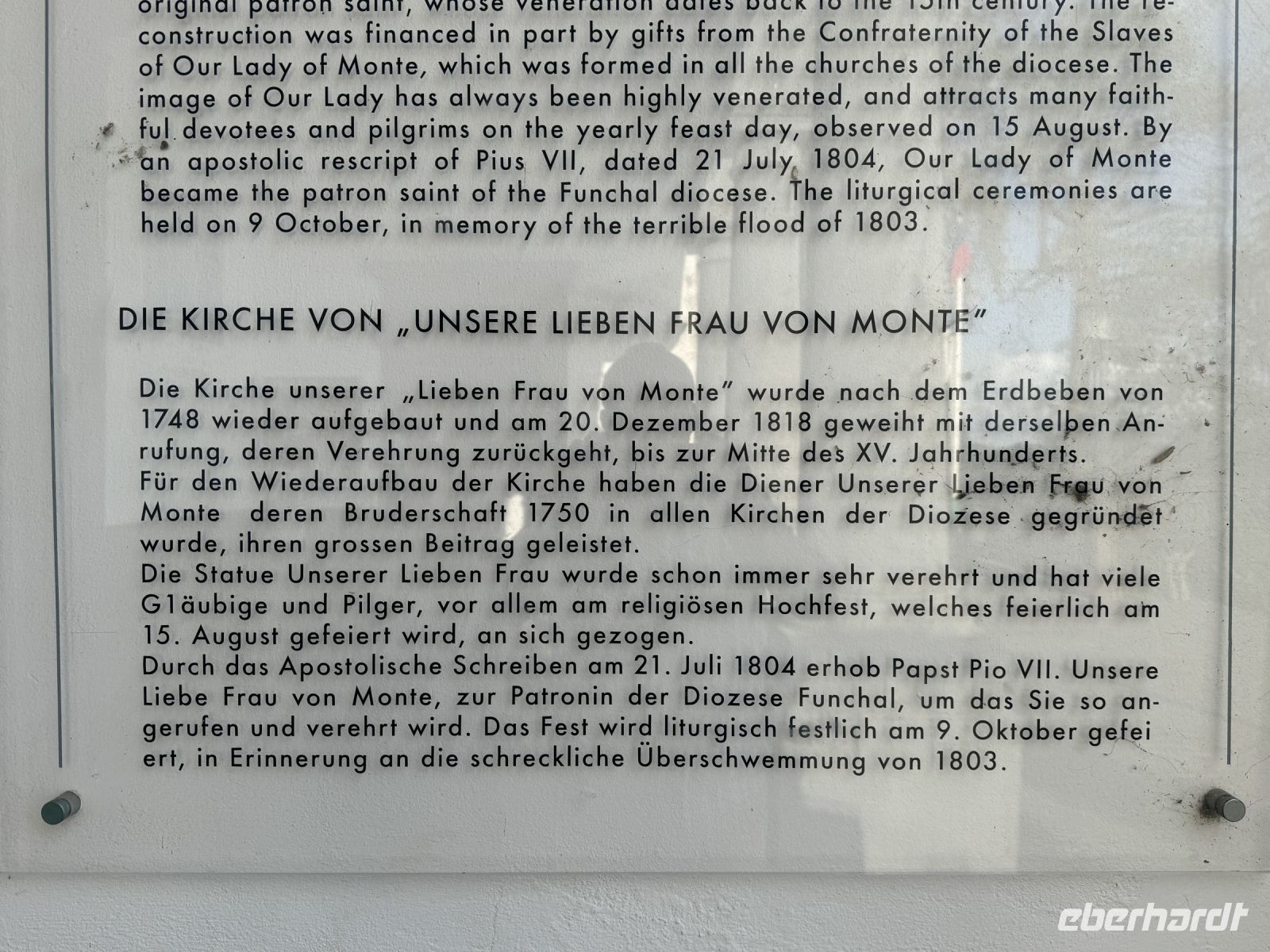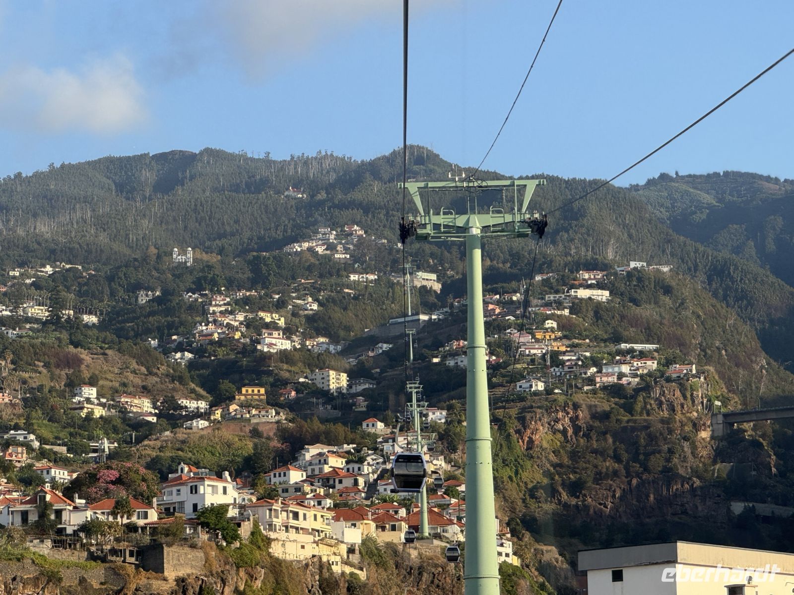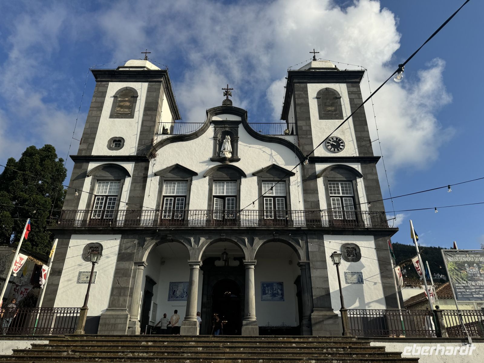 Silvia gegrüßt uns am Morgen des heutigen Tages in der Lobby des Hotels und wir beginnen den heutigen Ausflug in das Nonnental. Zuerst fahren wir wieder nach Funchal. Die meisten der Reisegäste nutzen die Seilbahn um von der Altstadt Funchals nach Monte – auf den Hausberg Funchals- zu fahren. Während der knapp viertelstündigen Fahrt in die Höhe genießen wir die herrliche Aussicht auf den Ort. Oben angekommen besuchen wir die Kirche Nossa Senhora do Monte, eine katholische Wallfahrtskirche. Sie wurde ab 1741 erbaut. Da ein Erdbeben den fertiggestellten Neubau 1748 zerstörte, konnte sie erst am 20. Dezember 1818 eingeweiht werden. In der Kirche ist der 2004 seliggesprochene Kaiser und König Karl von Österreich-Ungarn bestattet. Eine Freitreppe führt uns zu drei Bogengängen, die zum Eingangsportal führen. Das Hauptschiff wird flankiert von zwei Glockentürmen. Die Kanten und Fenster der Kirche zeigen noch den nichtverputzten dunklen Tuffstein. Im Hochaltar sehen wir ein Bild der heiligen Jungfrau. Links und rechts des Hochaltars befinden sich Nebenaltäre. Auf der linken Seite des Hauptschiffes befindet sich die Seitenkapelle Capela do Imaculado Coração de Maria, auf der rechten Seite des Hauptschiffes die Seitenkapelle Capela do Santíssimo Sacramento.