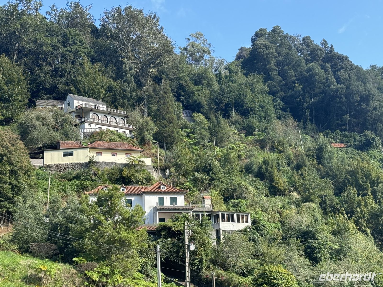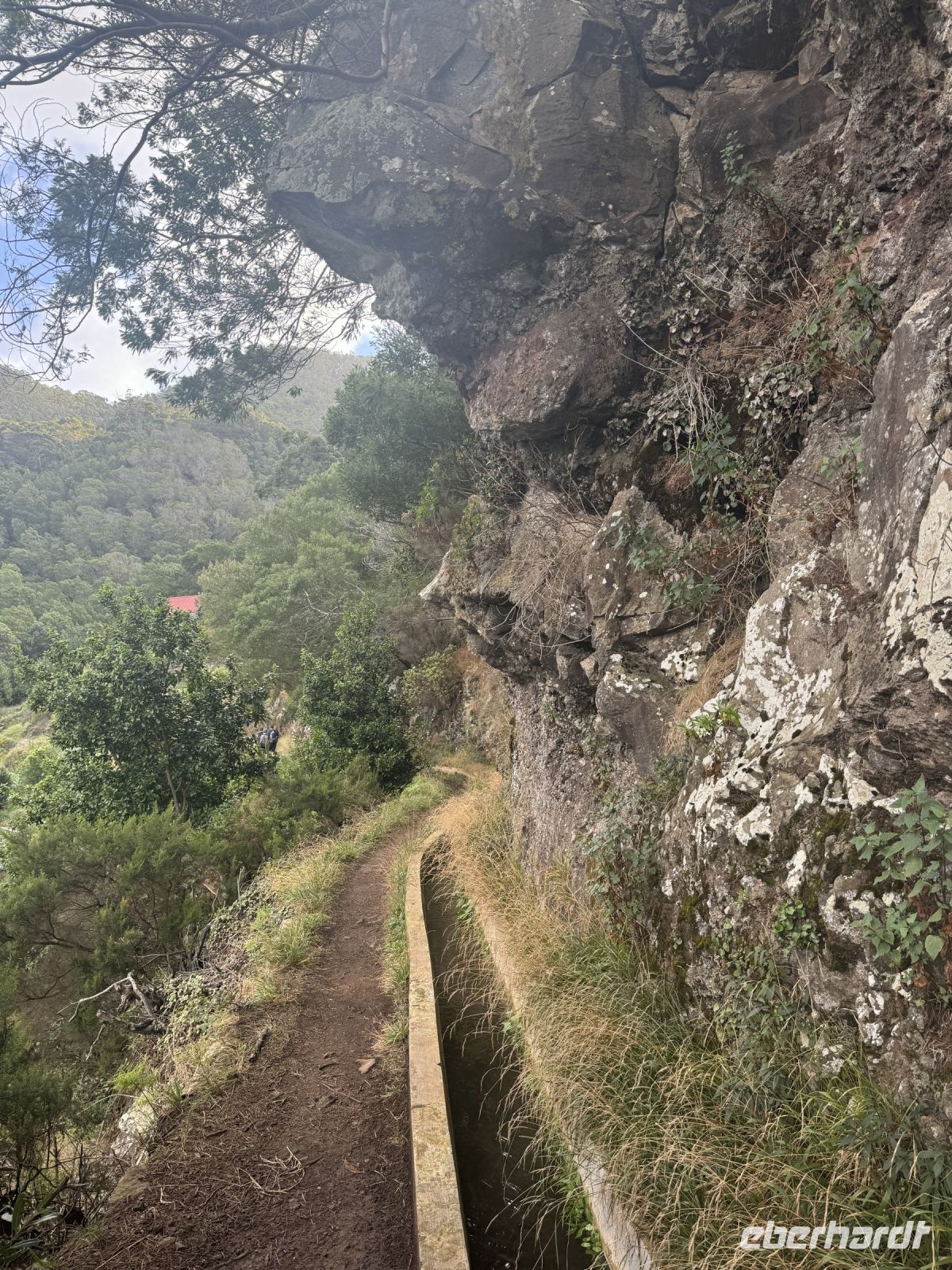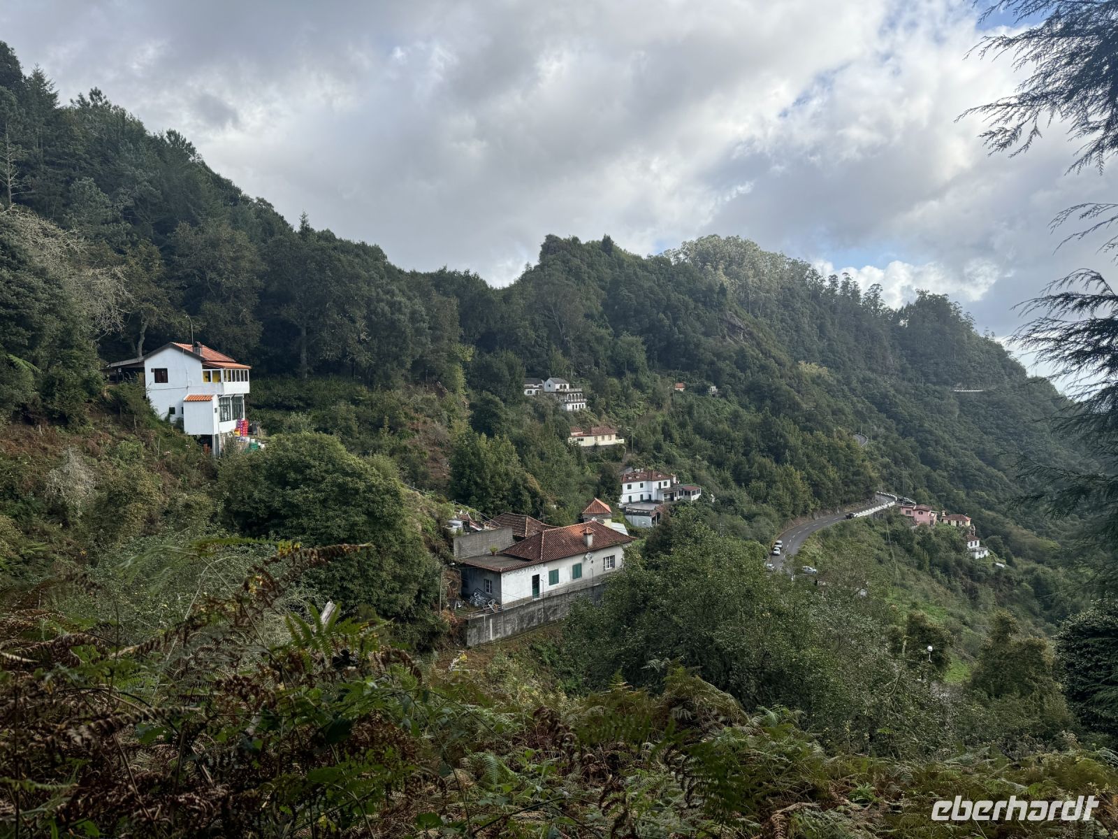 Weiter geht unsere Fahrt nach Ribeiro Frio, Der Ort liegt im auf 860 Metern über dem Meer Die kleine Siedlung gehört zur Gemeinde São Roque do Faial im Kreis Santana und liegt etwa 15 km von Funchal entfernt. Die Lage mitten im Lorbeerwald macht den nur aus wenigen Häusern bestehenden Ort zu einem viel besuchten Ziel von Ausflüglern und Wanderern. An der Durchgangsstraße haben sich mehrere kleine Tourismusbetriebe angesiedelt. Von hier aus unternehmen wir eine kurze Wanderung entlang der Levada do Furado, einer der bekanntesten Levadawege Madeiras, auf der mitten durch den Lorbeerwald nach Portela gewandert werden kann. Die Levada wird von dem Wildbach Ribeiro Frio gespeist, der dem Ort seinen Namen gab. Berühmt ist der Spaziergang zum Aussichtsbalkon Miradouro dos Balcões, von dem wir einen spektakulären Ausblick auf die zentrale Gebirgskette der Insel haben.